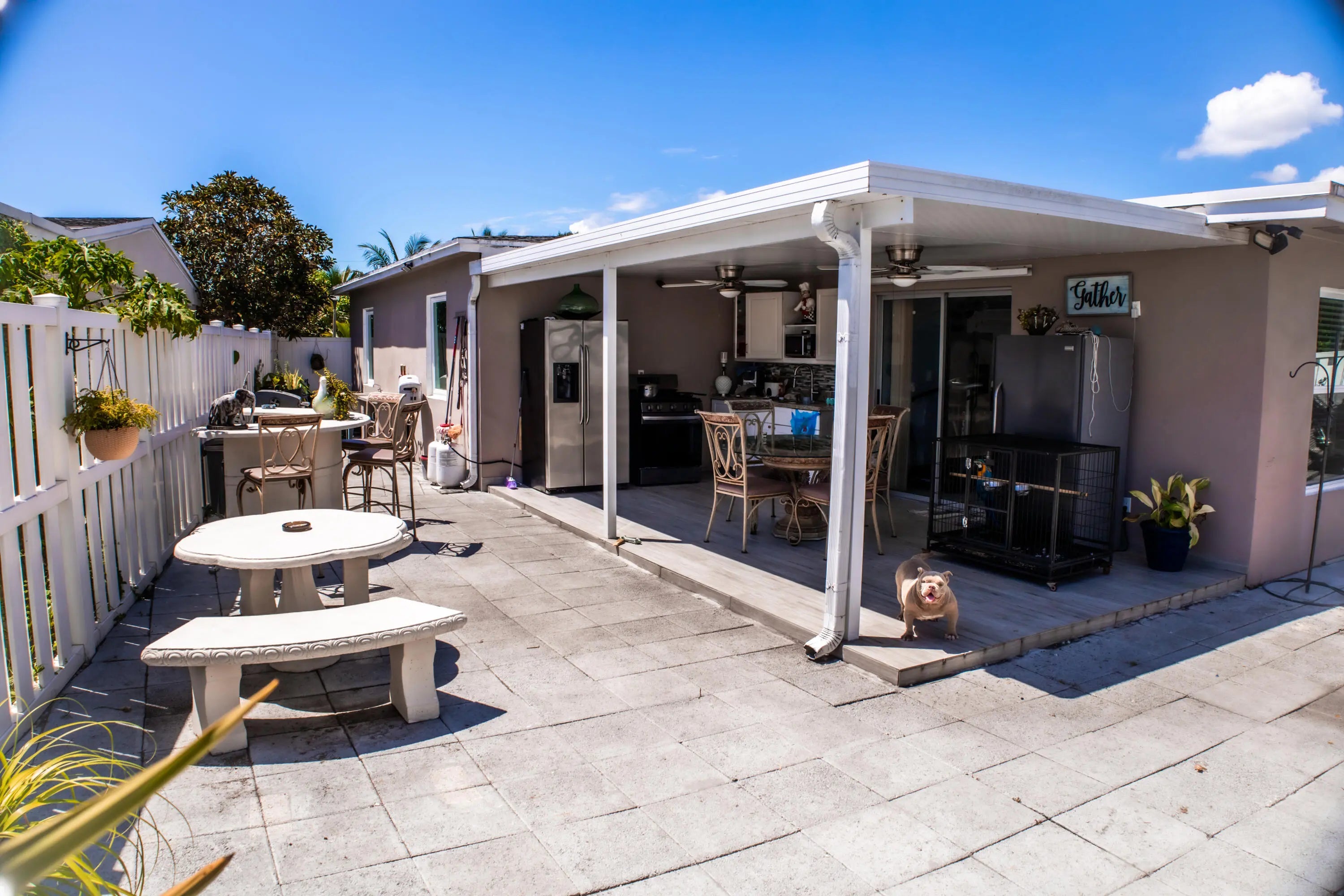 Welcome to this beautifully renovated 3-bedroom, 1 and 1/2-bath single-family home in West Palm Beach. Step inside to find modern ceramic tile flooring throughout, a completely updated kitchen with brand-new appliances, and bright open living spaces designed for comfort. House also have hurricane proof windows. The outdoor area is a true highlight--enjoy a spacious roof patio with an outdoor kitchen, perfect for entertaining. The backyard is finished with pavers and enclosed by a white vinyl privacy fence, offering both style and security. With thoughtful updates inside and out, this move-in ready home combines modern living with inviting outdoor spaces. Conveniently located near Palm Beach International Airport, The PB Outlets and PB Downtown, it's ready to welcome its next owner.