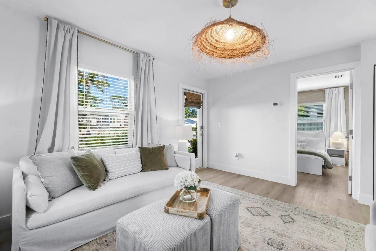 Fully Renovated single family home located 2 blocks off the intracoastal in the historic neighborhood of Northwood Harbor that is experiencing significant development growth. Main house features 2 bedrooms, 1 bath, with central a/c and utility closet. Detached studio apartment with 1 bath, full kitchen and mini split. Both units are fully permitted with brand new plumbing, electrical, stucco; impact windows and doors. Featuring recessed lighting, quartz countertops, stainless steel appliances, professionally landscaped grounds with new sod and underground sprinkler system. Fenced backyard with space for a pool. Some of the planned and approved developments just minutes away include: Alba, Olara, The Ritz Carlton. Beautiful rental property with flexible terms.