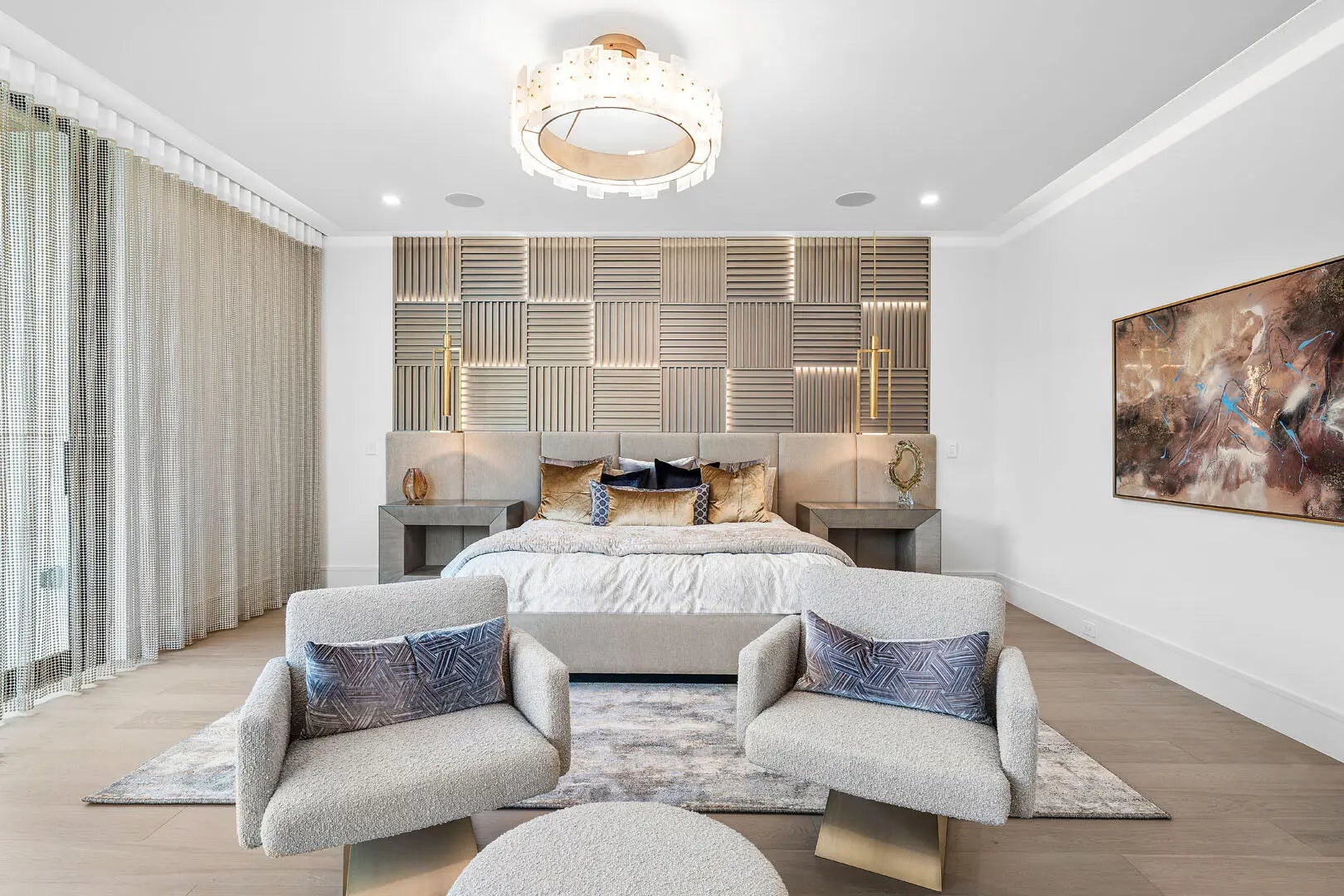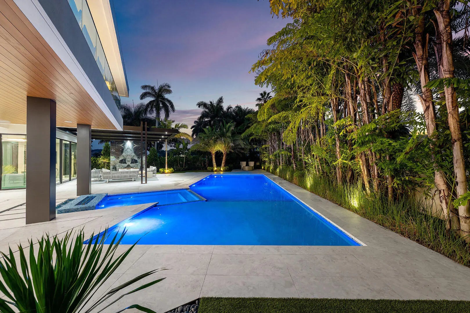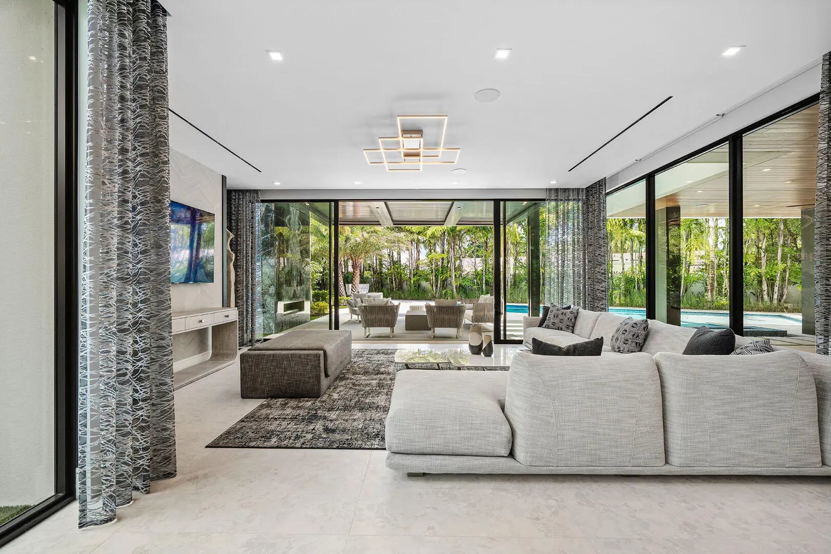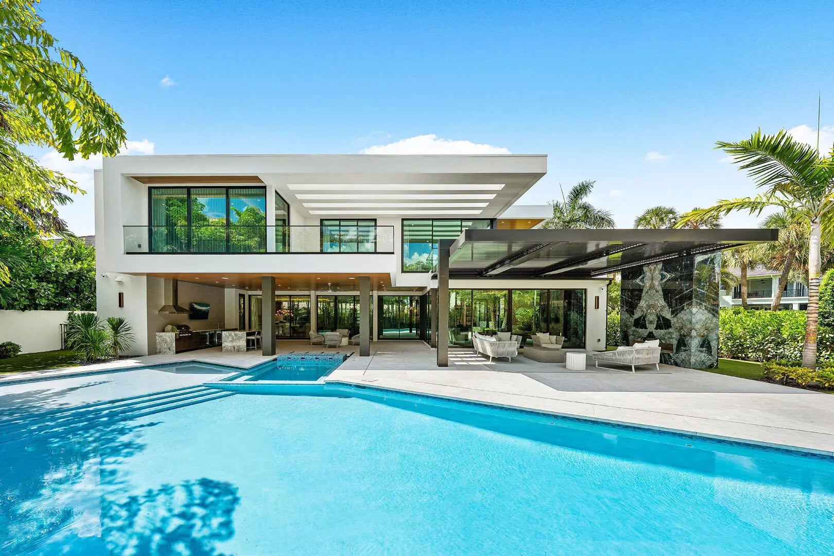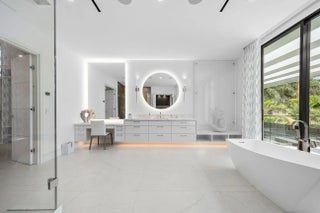 This brand-new contemporary estate overlooks the Jack Nicklaus Signature Golf Course and offers over 8,400 SF of designer living. Built by Albanese & Sons with interiors by Zelman Style Interiors, the furnished residence features six bedrooms, seven full and two half baths. Highlights include a dramatic two-story foyer, great room with custom wine wall and marble fireplace, chef's kitchen with Wolf appliances, glass-wrapped office, theater, and club room with full bar. and covered pavilion. Additional features include a 4-car + golf cart garage, Control4 automation, elevator, and full-house generator. The buyer is responsible for documentary stamp taxes on the deed and title insurance.