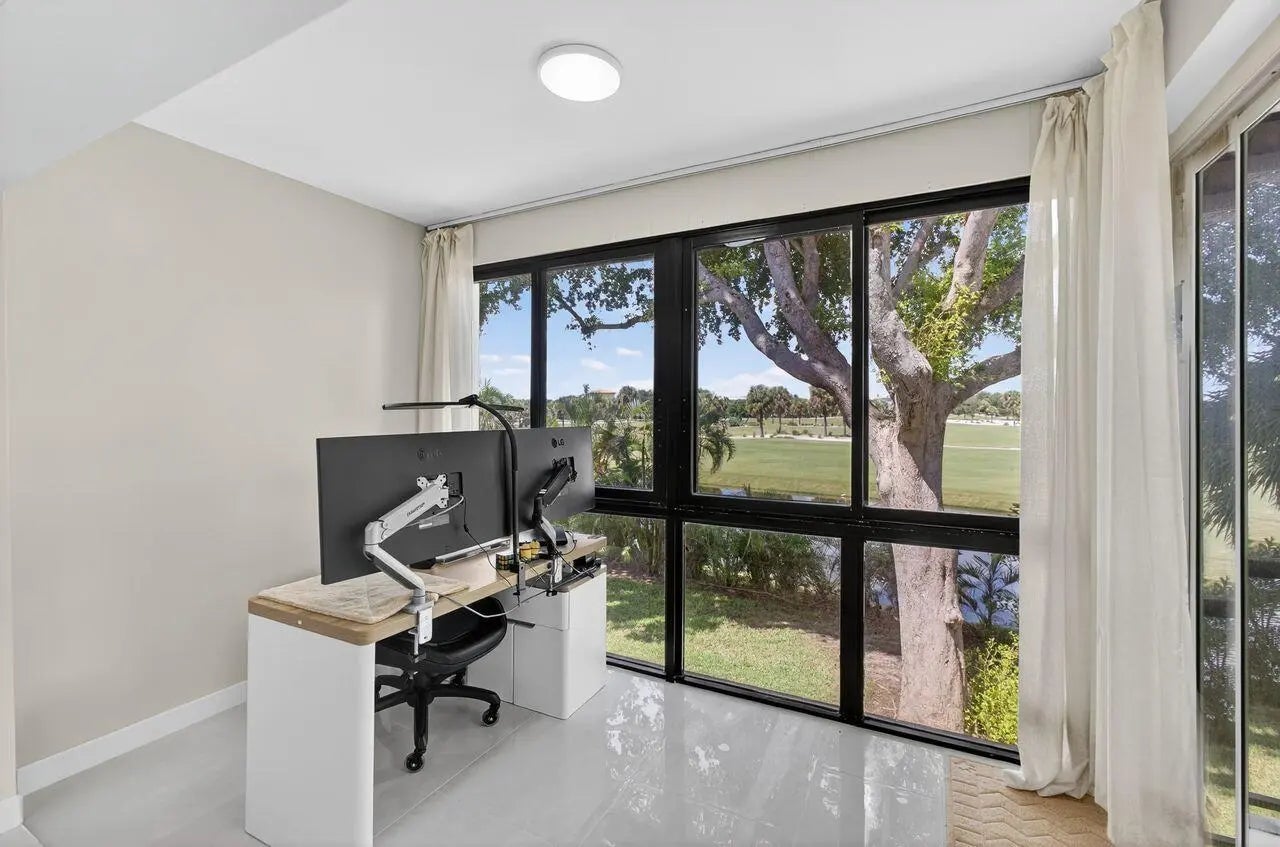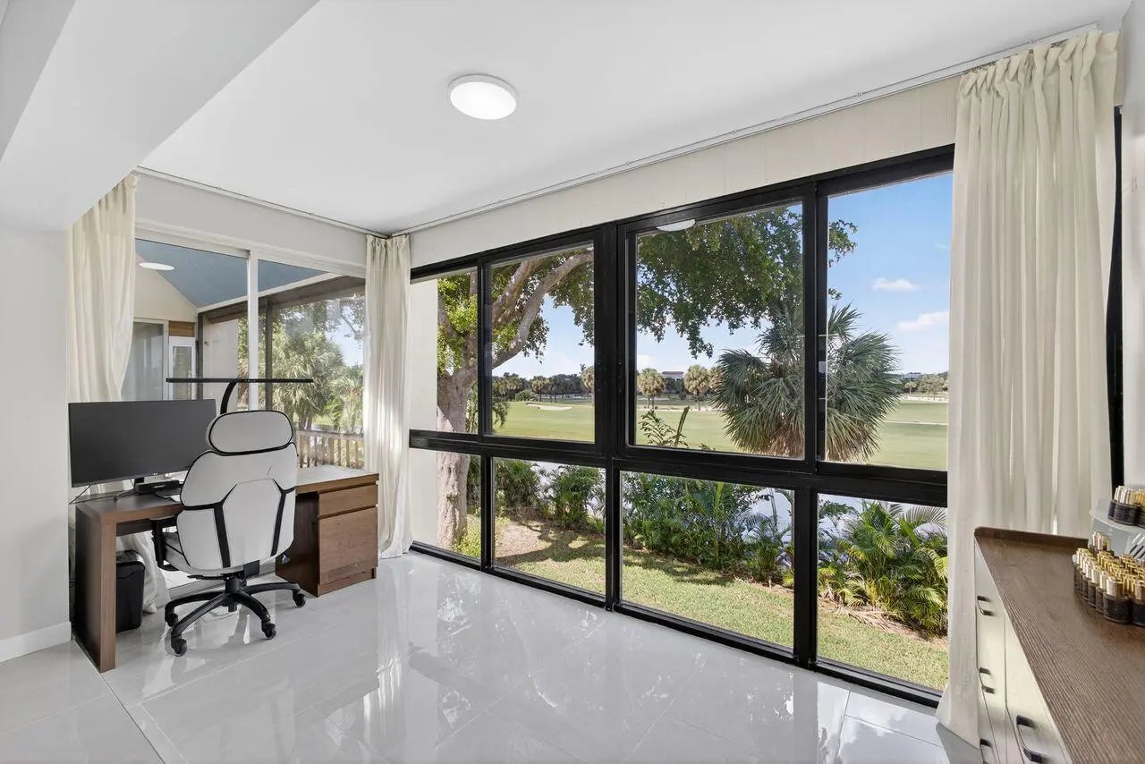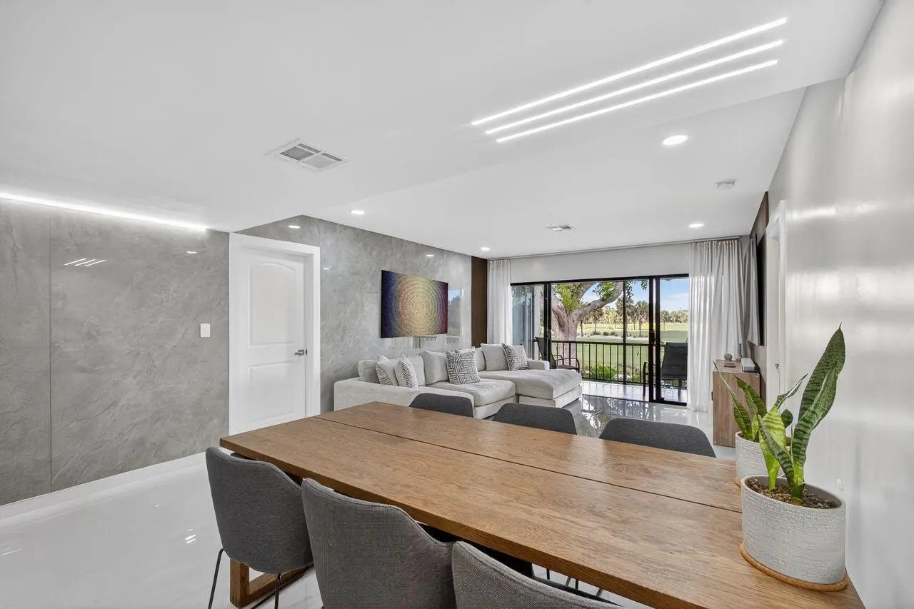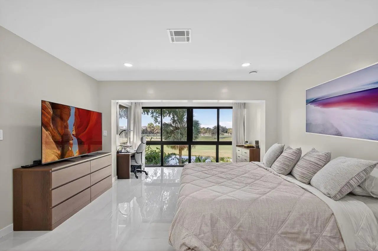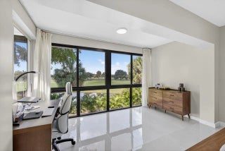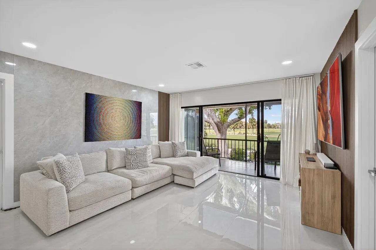 Step into this stunning two bedroom, two bath condo in a gated community just 5 minutes from downtown and 10 minutes from the beach. Enjoy breathtaking golf course views through floor-to-ceiling impact glass windows and relax on two covered patios which are perfect as sunrooms or office dens. Every inch of this home was upgraded with high-end tile flooring throughout, format accent wall tiles, wooden slat detailing and satin-finish Behr Marquee paint. The kitchen is a chef's dream with stone countertops, granite sink, full backsplash, soft-close cabinetry and smart LG appliances including a steam dishwasher and oven/air fryer combo. Smart home features include recessed LED lighting and Alexa/Google-compatible switches. See More Bathrooms boast floating vanities, rain showers with glass doors, integrated bidet toilets and luxe finishes. Both walk-in closets feature custom pull-out drawers and shelving. Additional upgrades: LG smart wash tower, new HVAC system, water heater, baseboards, door trims, mesh patio screen and flat white painted ceilings. Located steps from the community pool and close distance to Tanger Outlets, Whole Foods, Target and more. Pet-friendly with 24-hour manned security, this is the only unit with panoramic golf views and unmatched luxury.