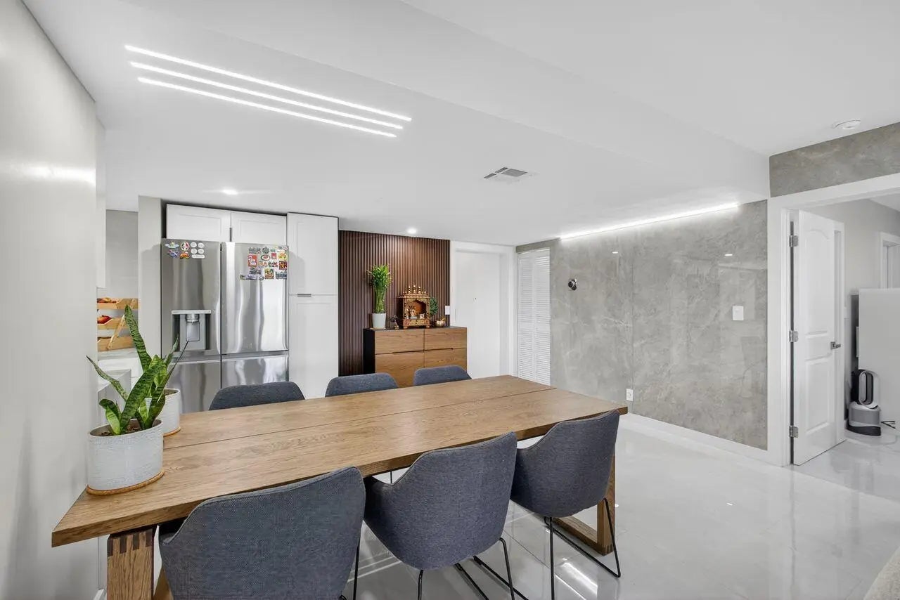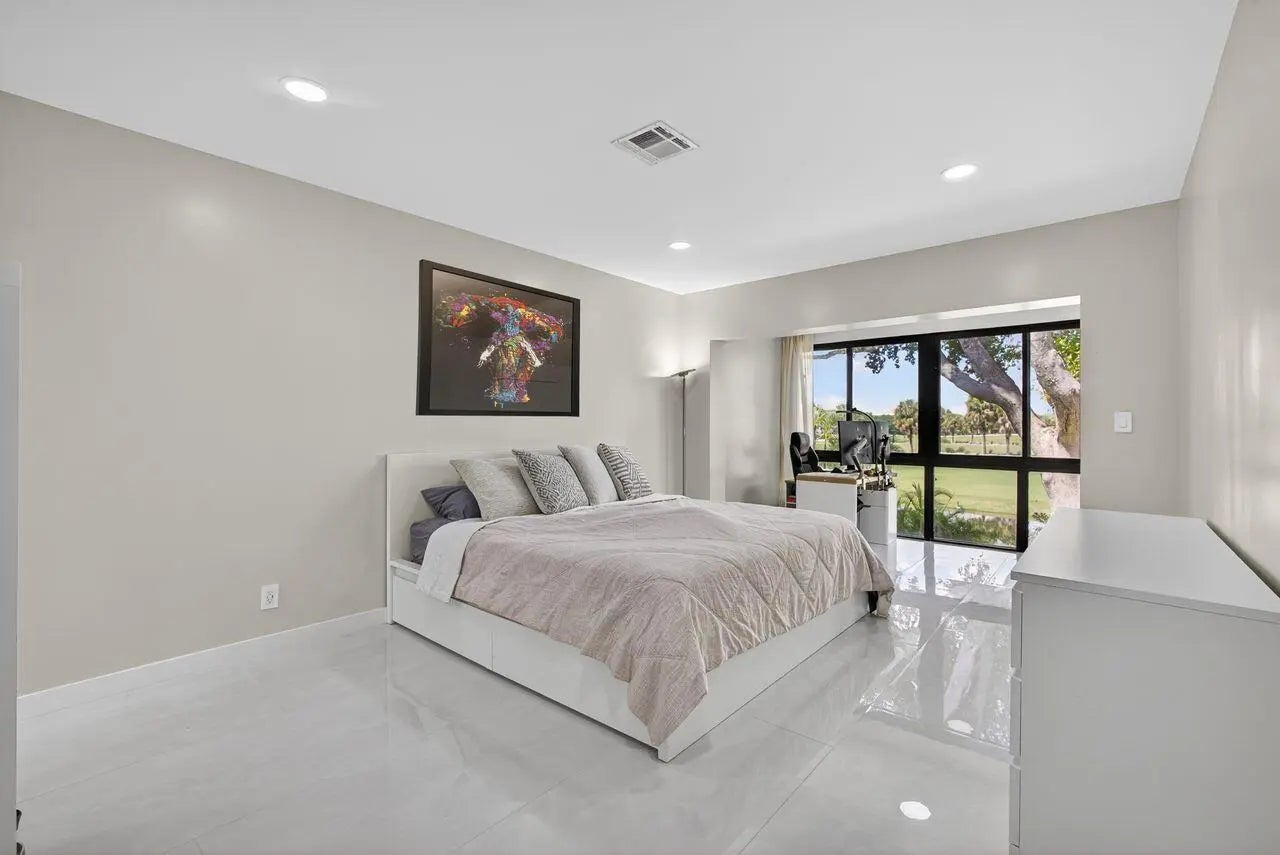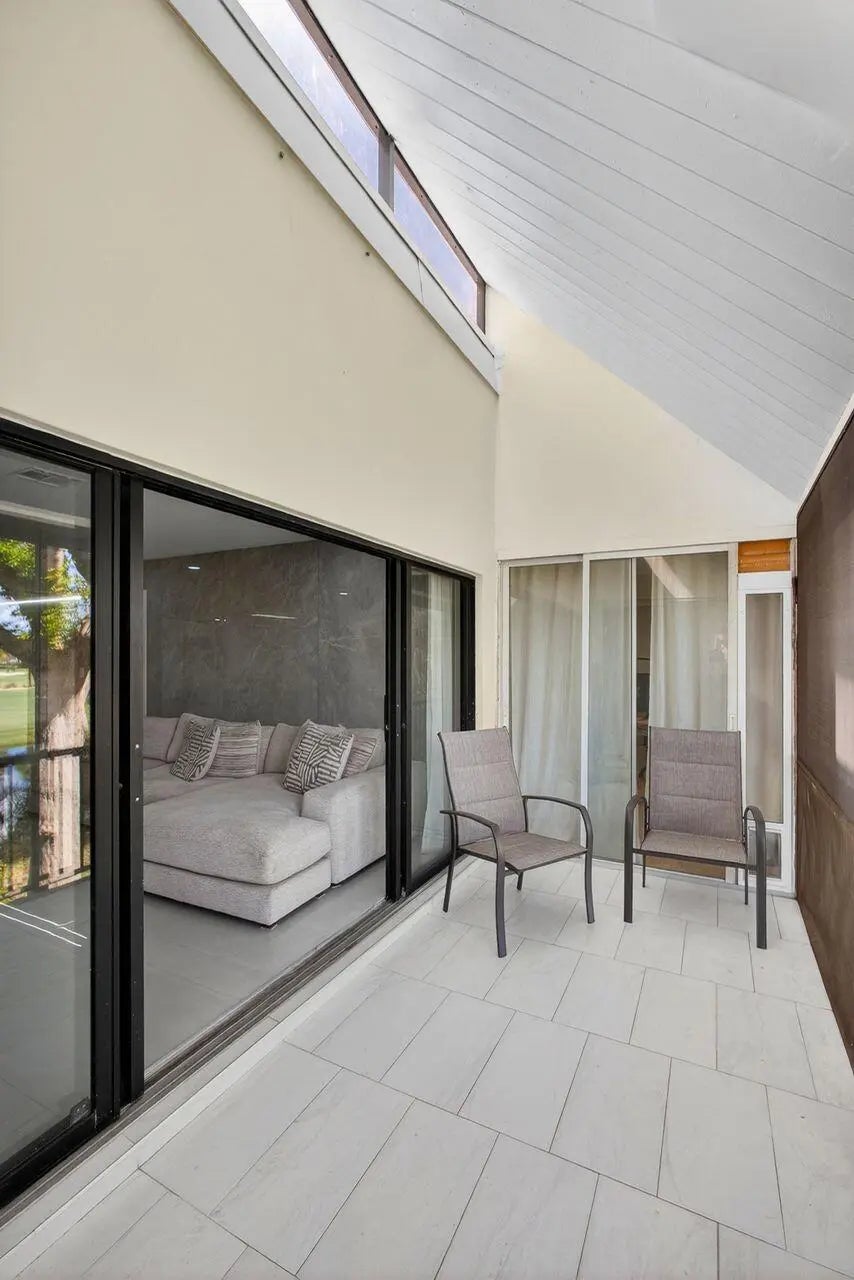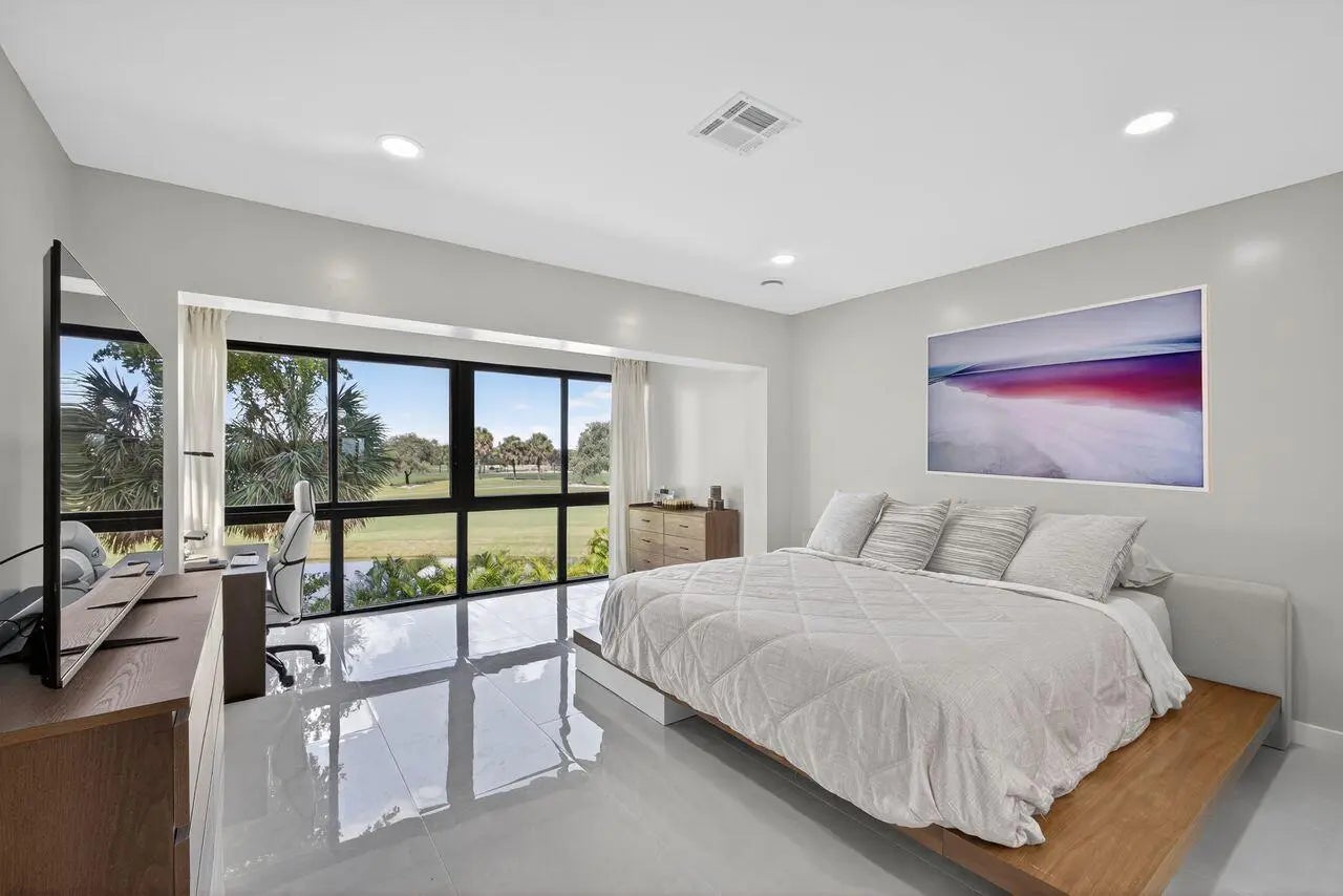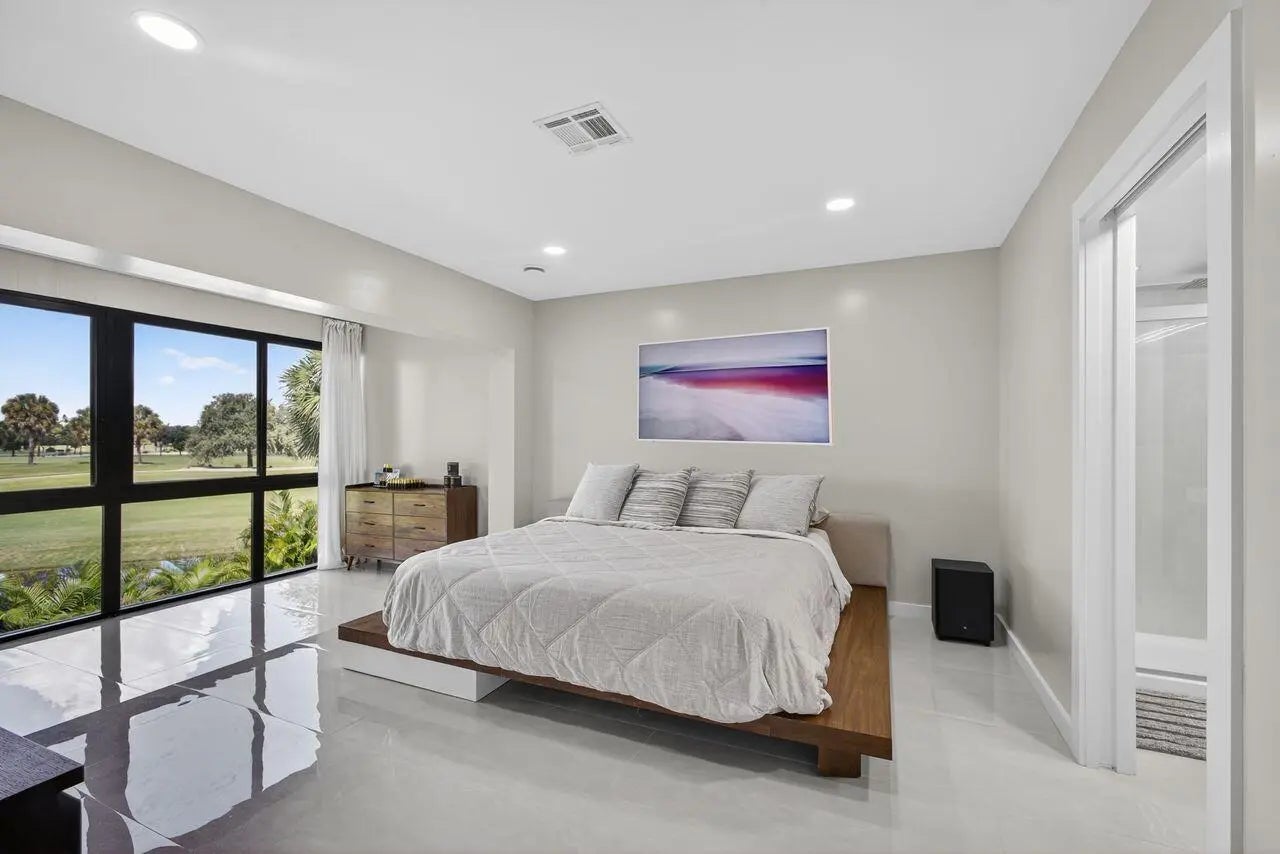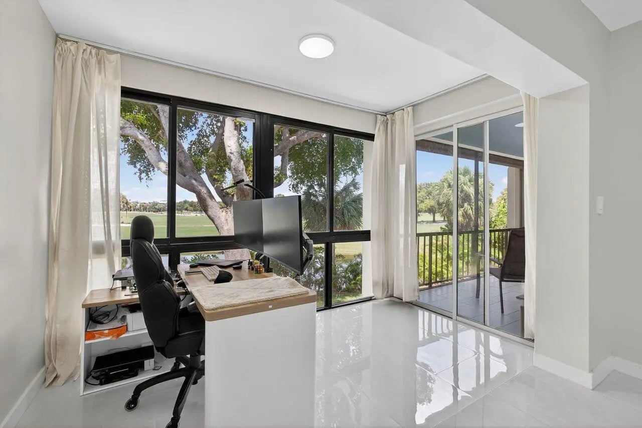 Step into this stunning two bedroom, two bath condo in a gated community just 5 minutes from downtown and 10 minutes from the beach. Enjoy breathtaking golf course views through floor-to-ceiling impact glass windows and relax on two covered patios which are perfect as sunrooms or office dens. Every inch of this home was upgraded with high-end tile flooring throughout, format accent wall tiles, wooden slat detailing and satin-finish Behr Marquee paint. The kitchen is a chef's dream with stone countertops, granite sink, full backsplash, soft-close cabinetry and smart LG appliances including a steam dishwasher and oven/air fryer combo. Smart home features include recessed LED lighting and Alexa/Google-compatible switches. See More Bathrooms boast floating vanities, rain showers with glass doors, integrated bidet toilets and luxe finishes. Both walk-in closets feature custom pull-out drawers and shelving. Additional upgrades: LG smart wash tower, new HVAC system, water heater, baseboards, door trims, mesh patio screen and flat white painted ceilings. Located steps from the community pool and close distance to Tanger Outlets, Whole Foods, Target and more. Pet-friendly with 24-hour manned security, this is the only unit with panoramic golf views and unmatched luxury.