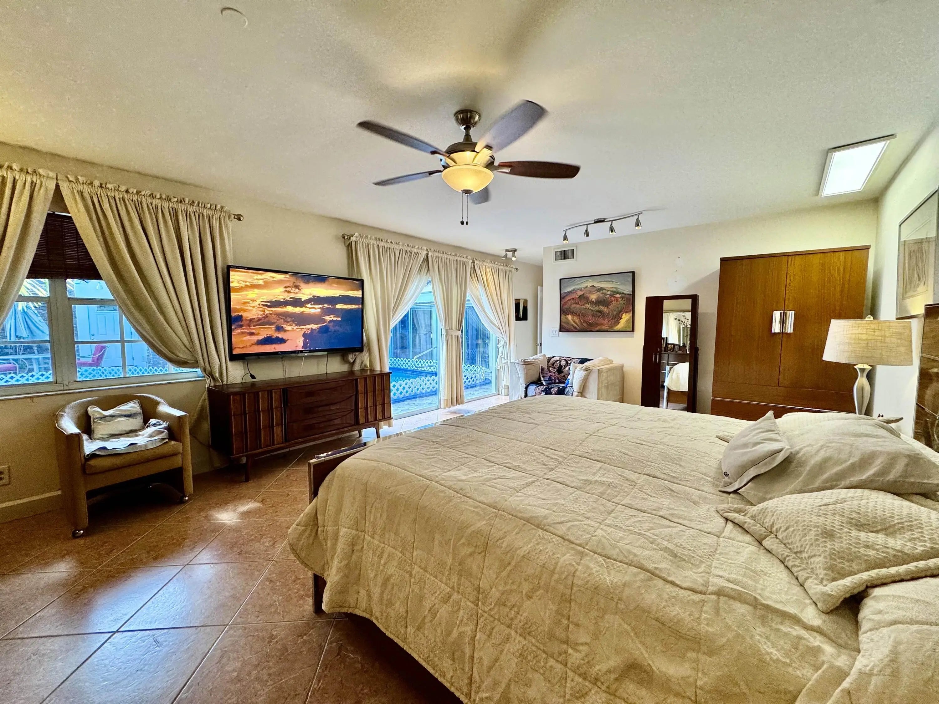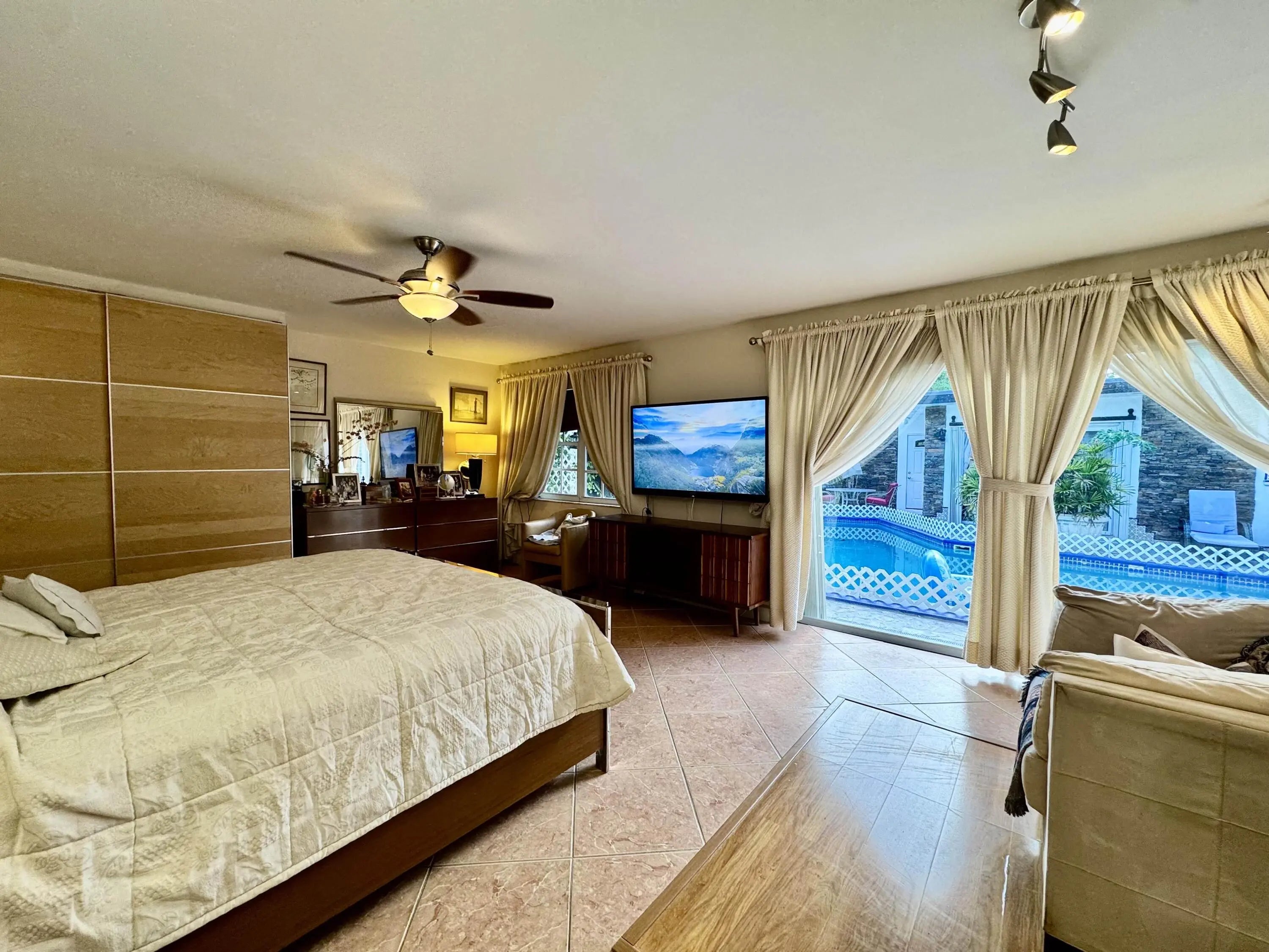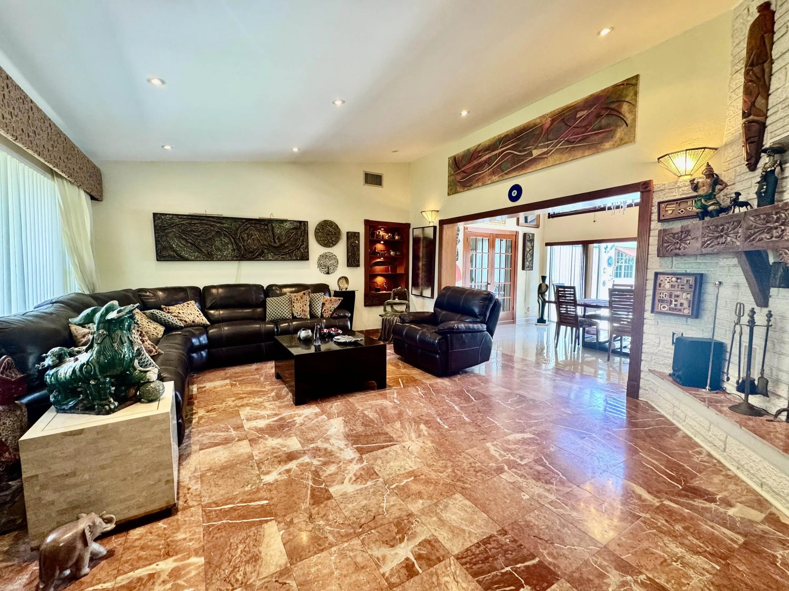 THE ORCHARD ESTATE! Welcome to your own tropical oasis in the heart of Boynton Beach! Nestled on a spacious corner lot in one of Palm Beach County's most desirable neighborhoods, this captivating pool home is truly a hidden gem. Surrounded by lush tropical foliage and an abundance of fruit-bearing trees, the property offers a serene retreat unlike any other. At the heart of the home lies a stunning courtyard pool, beautifully accented by an elegant family of handcrafted mosaic turtles, creating a tranquil setting perfect for relaxation or entertaining. From the moment you arrive, the ambiance is pure paradise! Private, peaceful, and immersed in nature's beauty, all while being just three minutes from the Shoppes at Sunshine Square, dining, and conveniences. WATCH THE VIDEO TOUR! Every corner of this home is designed with comfort and style in mind. On the opposite side of the home, a spacious foyer leads you to the north wing, where you'll find a large guest bedroom with its own beautifully updated bathroom. Heading south, pass a second bedroom and a stylishly renovated social bathroom before reaching the expansive master suite. This luxurious retreat features its own private bath and serene views of the tropical courtyard and pool. The layout is thoughtfully designed, with all main living and social areas wrapped around the central pool, enhancing the open-air, resort-style feel. Whether you're lounging by the water, hosting a sunset gathering, or simply enjoying the breeze through swaying palms, this home offers the ultimate Florida lifestyletranquil, tropical, and truly unforgettable.