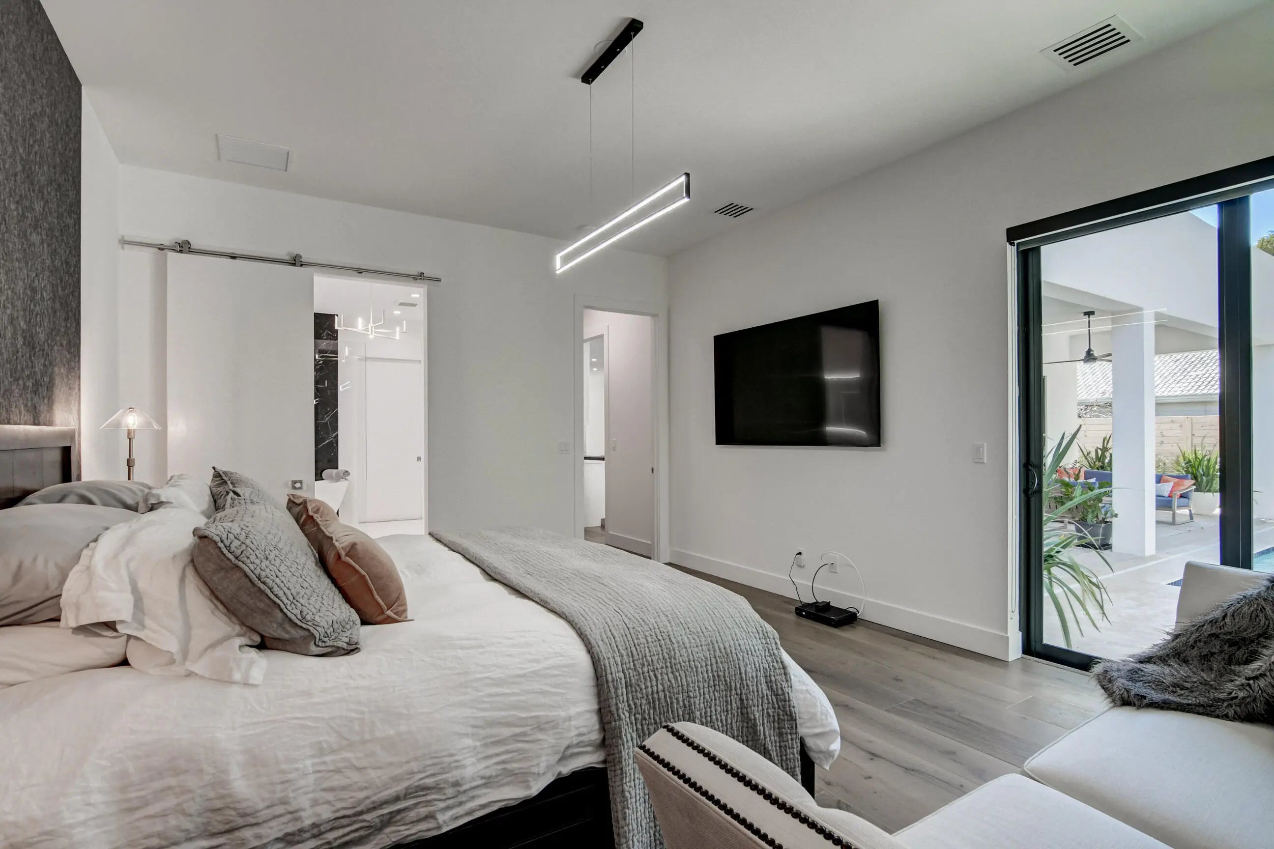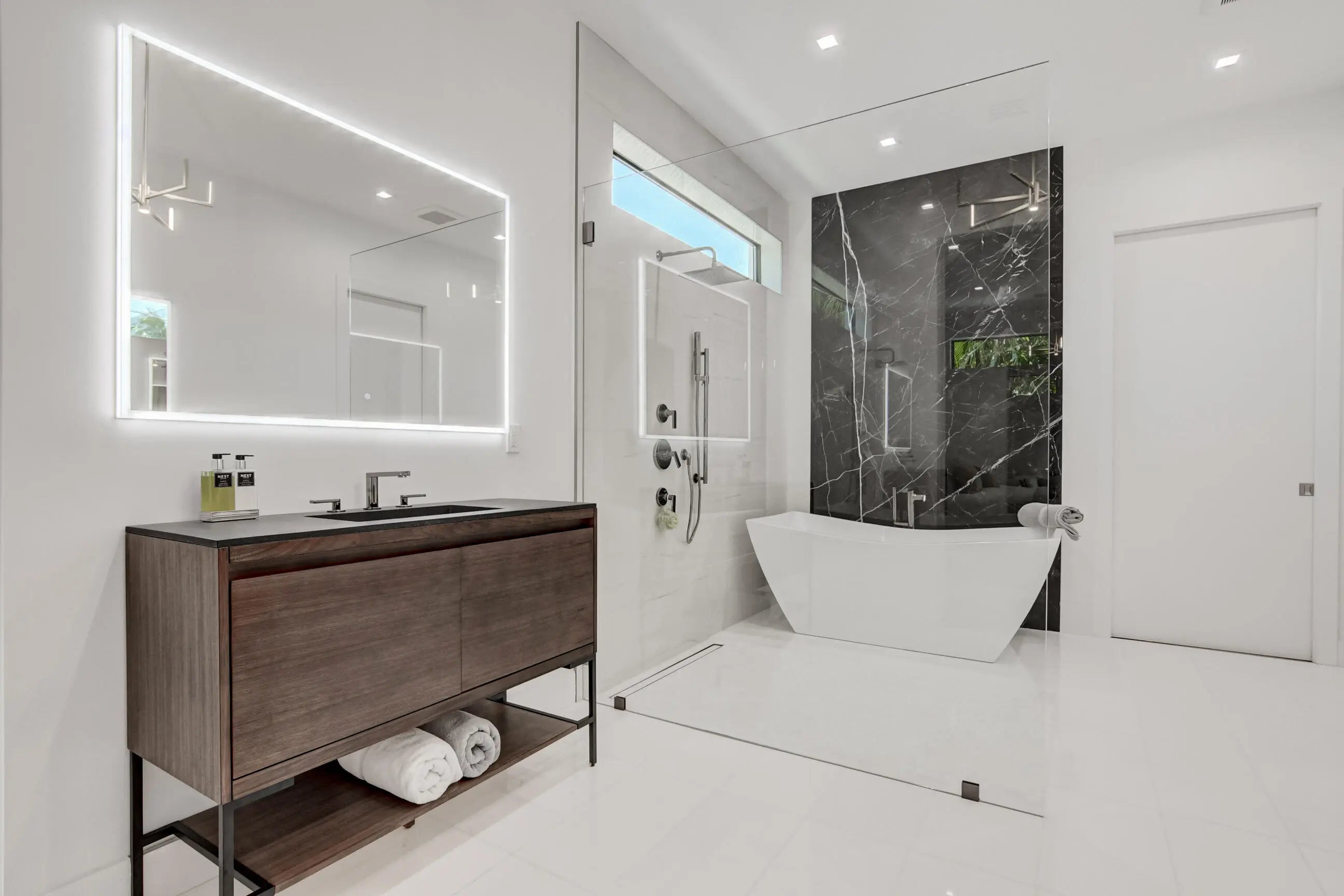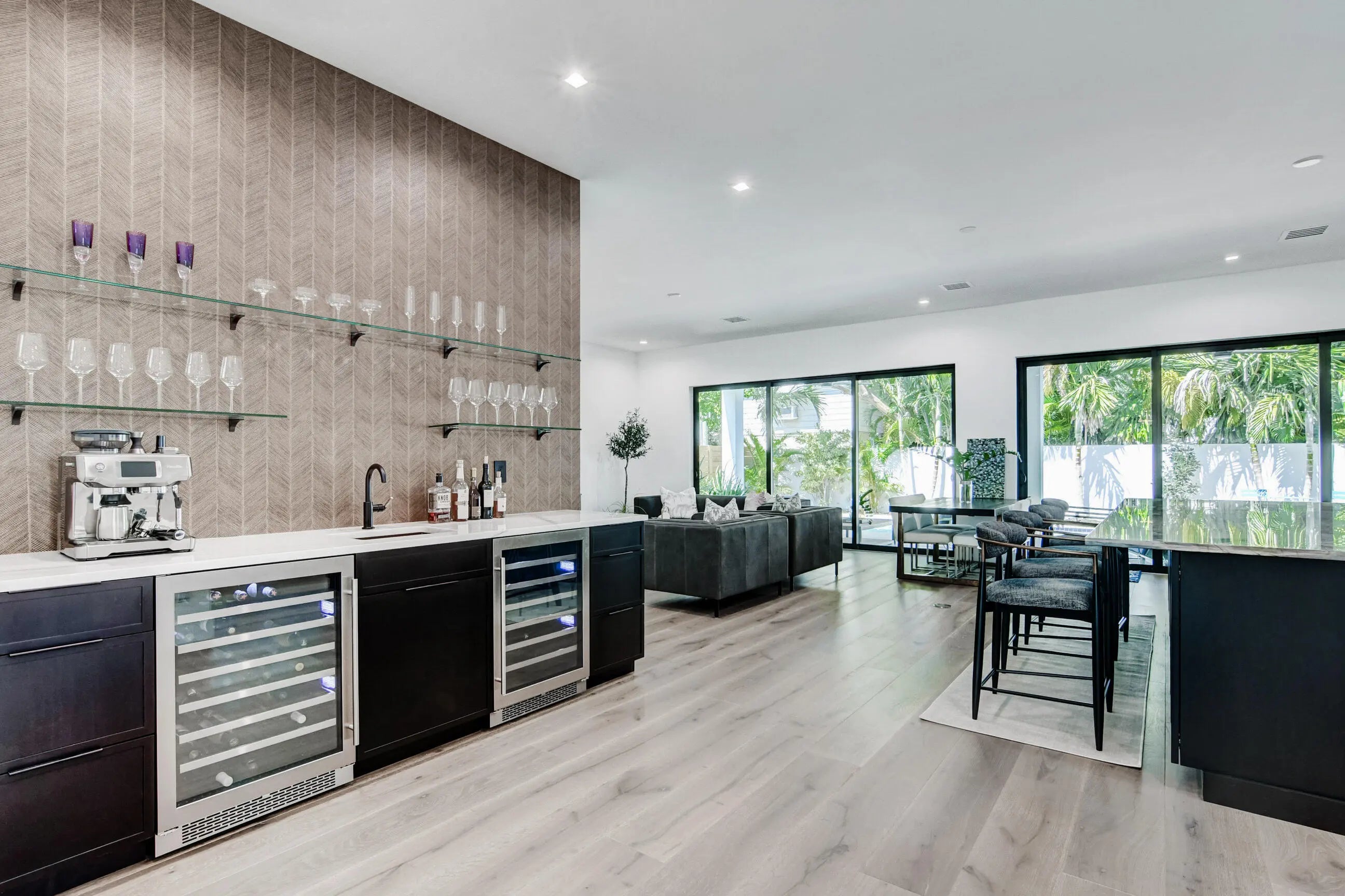 Experience Magnificence in this New Construction West Palm Beach Home (Completed 2023)Located in the highly coveted ''SOSO'' neighborhood and just two blocks from the waterway, this home was meticulously designed by one of Palm Beach's most renowned architects, with no detail overlooked. As you approach, you'll be welcomed by a custom pivot door, opening to a grand living space. The expansive, open-concept living area is bathed in natural sunlight, thanks to the glass doors that frame the pool. The Gourmet Chef's kitchen, complete with marble countertops, custom cabinetry, and top-of-the-line Thermador appliances, is perfect for gathering and entertaining. The master suite offers private access to the pool, and a luxurious en-suite bathroom featuring marble flooring.