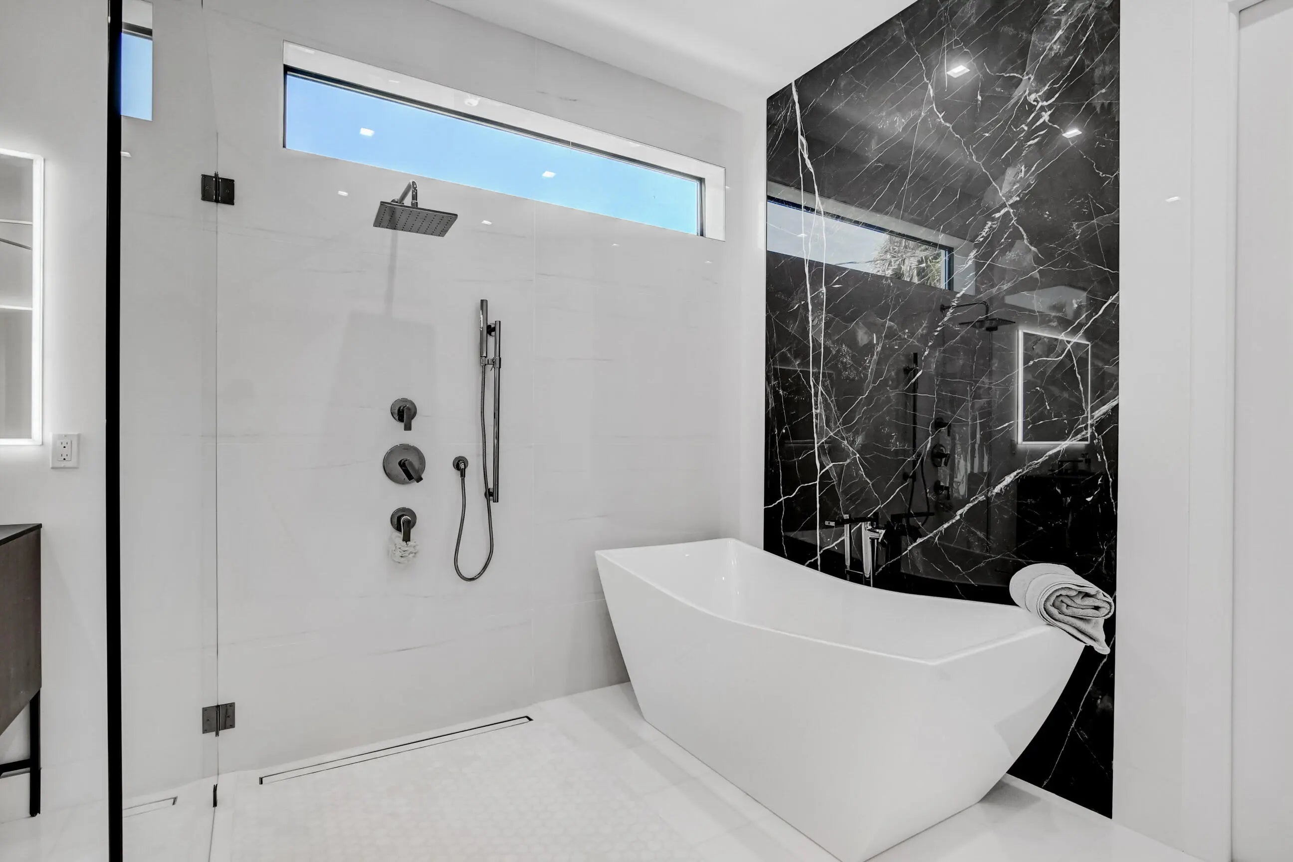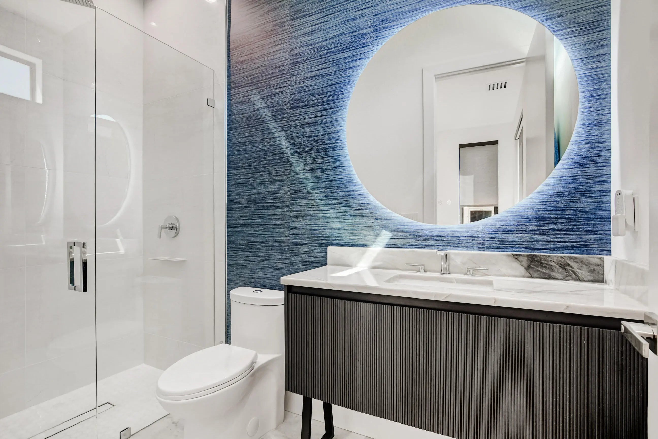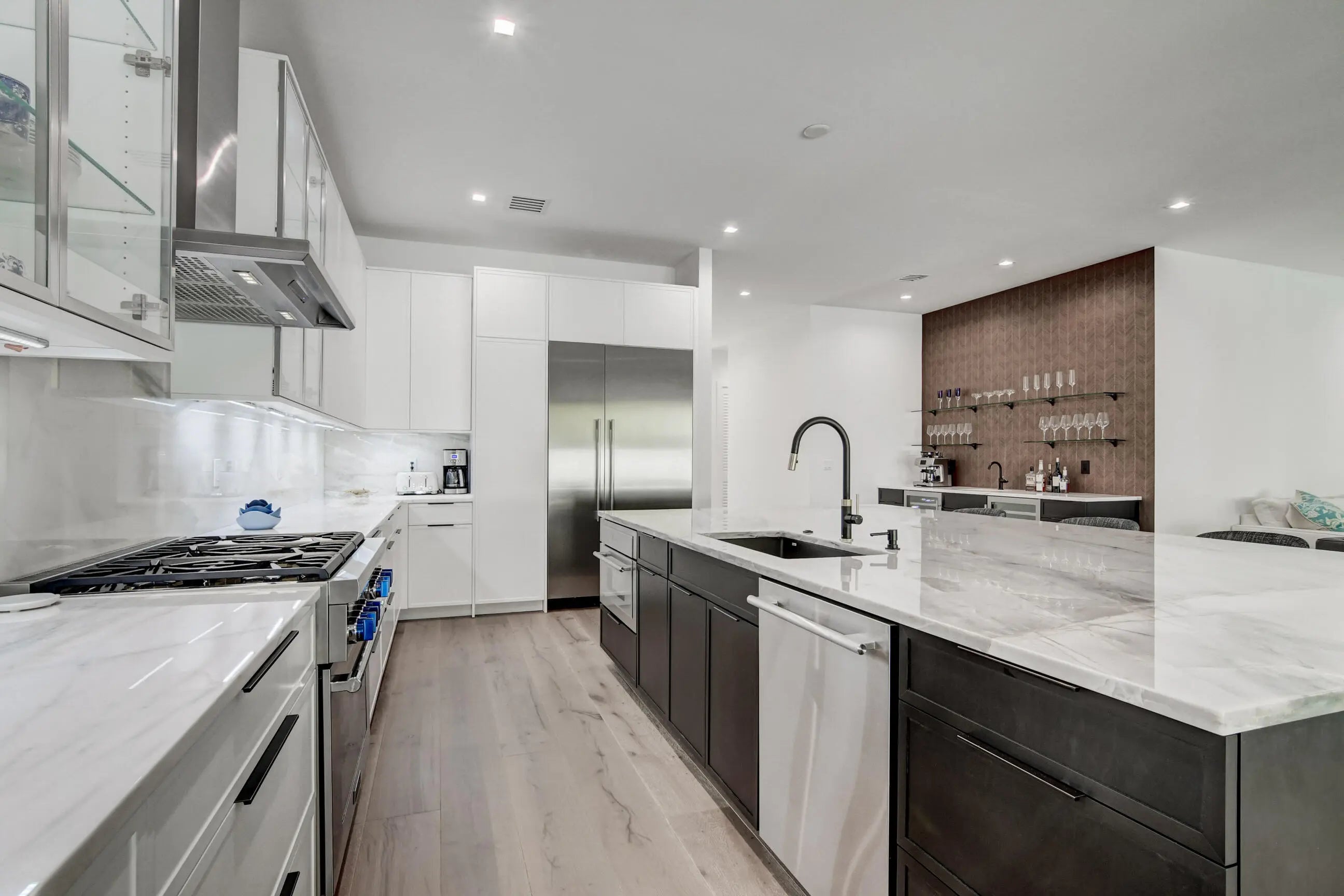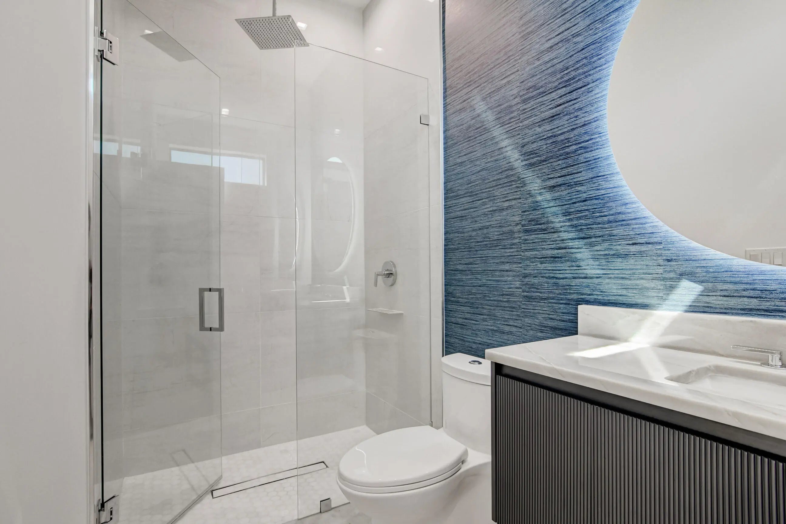 Experience Magnificence in this New Construction West Palm Beach Home (Completed 2023)Located in the highly coveted ''SOSO'' neighborhood and just two blocks from the waterway, this home was meticulously designed by one of Palm Beach's most renowned architects, with no detail overlooked. As you approach, you'll be welcomed by a custom pivot door, opening to a grand living space. The expansive, open-concept living area is bathed in natural sunlight, thanks to the glass doors that frame the pool. The Gourmet Chef's kitchen, complete with marble countertops, custom cabinetry, and top-of-the-line Thermador appliances, is perfect for gathering and entertaining. The master suite offers private access to the pool, and a luxurious en-suite bathroom featuring marble flooring.