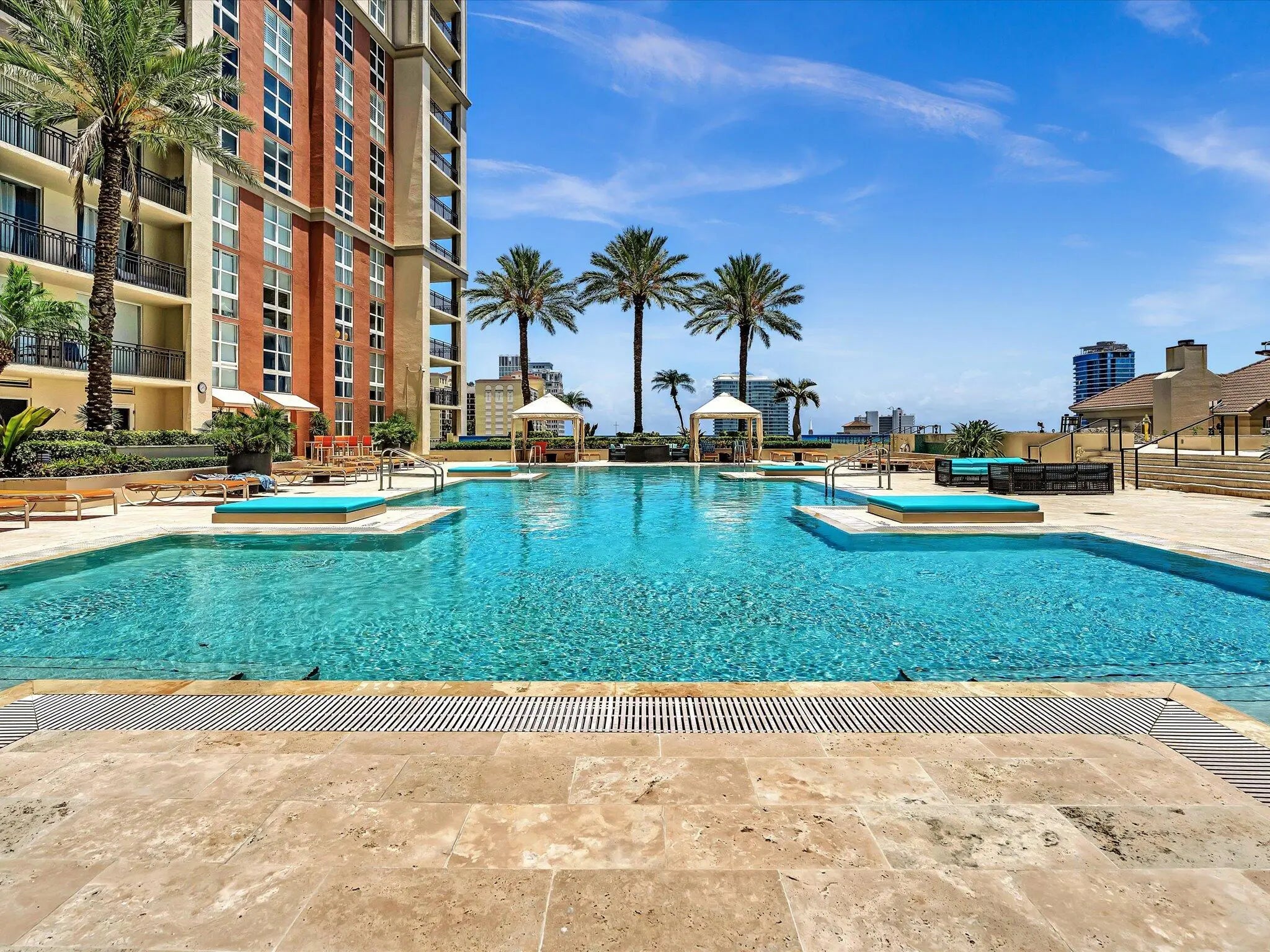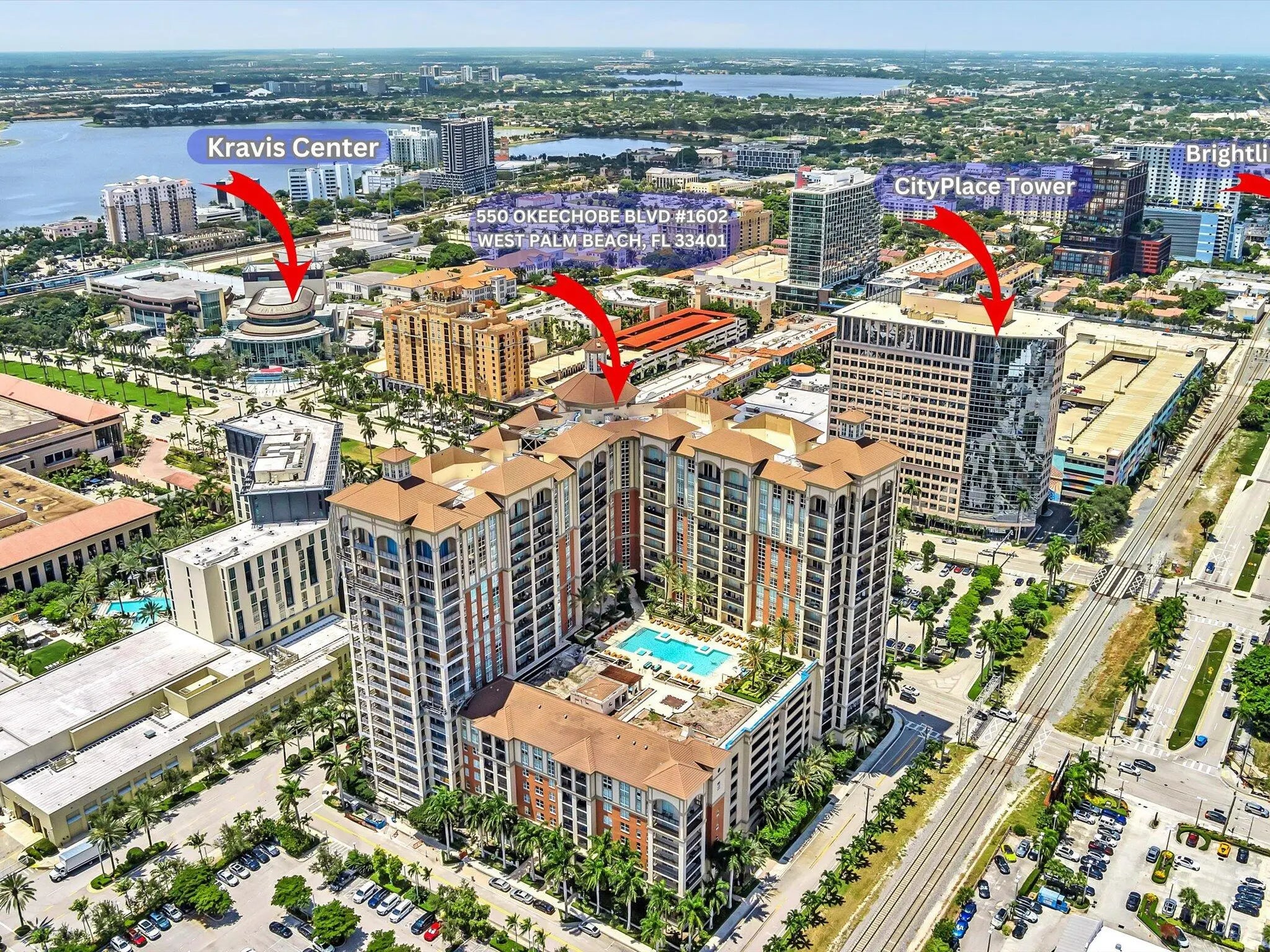 Cityplace South Tower is a luxury building located in the heart of downtown West Palm Beach. The Square, Clematis Street's nightlife and restaurants, The Kravis Center, The Norton and The Brightline are all within walking distance making this a stellar location. Palm Beach's Worth Avenue and the beach are a short ride away. This 3 bedroom, with BRAND NEW FLOORING, 2 bath unit boasts 402 sq. feet of wrap around patio offering sweeping views of the city and the water! The unit has floor to ceiling impact windows and doors. Amenities include 24/7 concierge, state of the art fitness center, resort style pool and spa area and designer club room. The remodel of the lobby, reception area and pool area are almost complete. 802 has 2 parking spaces and a storage unit. Valet parking for residents and guests.