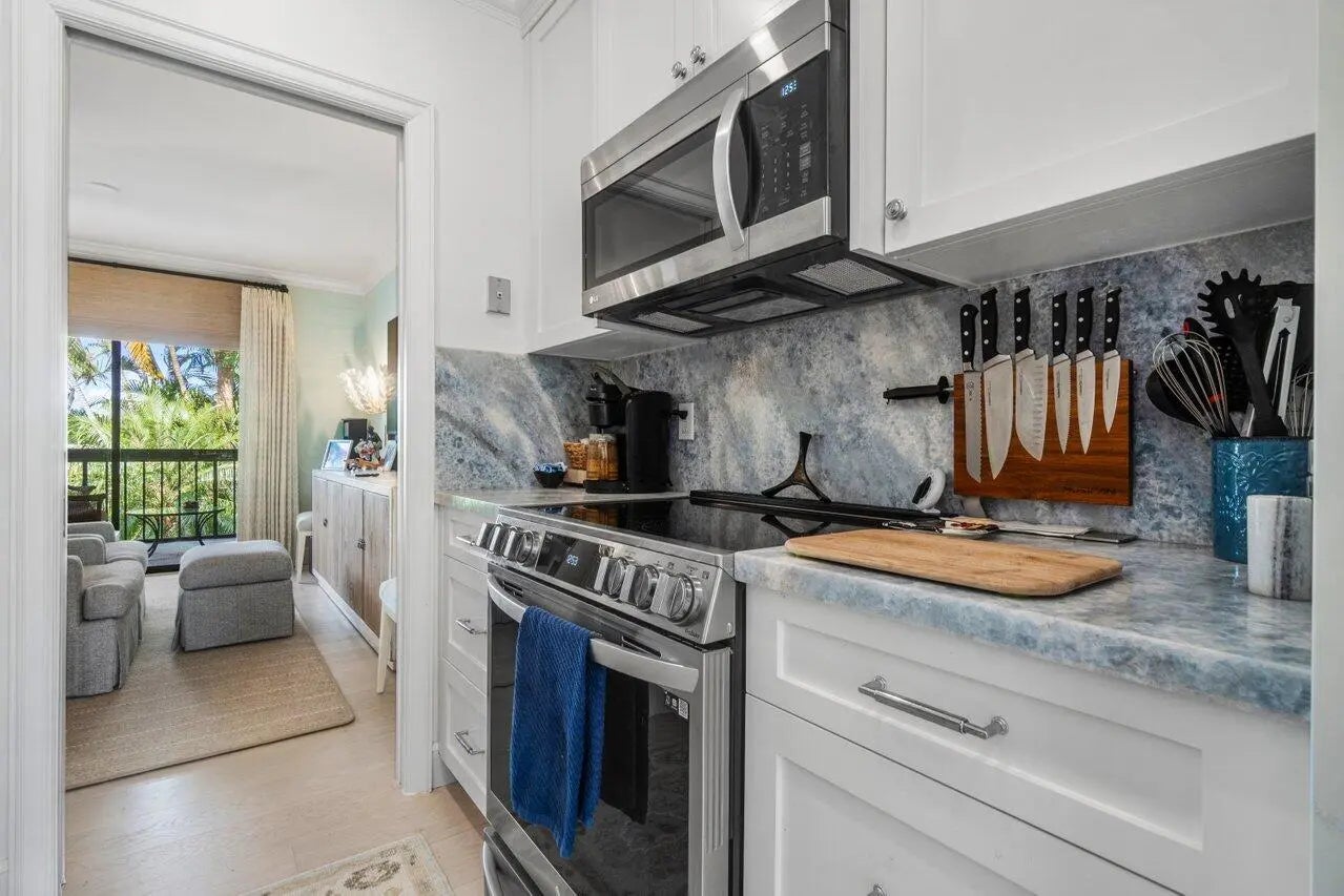 Discover the epitome of refined Florida Luxury living in this stunning, fully refurbished 3-bedroom, 3-full-bath condo nestled within the exclusive, gated Palm Beach Polo & Country Club - the heart of Wellington's world-renowned equestrian community! This modern, move-in-ready residence has been completely renovated to the highest standards, blending contemporary elegance with timeless sophistication. Step inside to find an open floor plan featuring sleek new flooring, luxury marble and stone tiling, custom wallpaper, carpet and drapery treatments by Scalamandre, Brunschwig and more. Designer lighting, a gourmet kitchen with premium appliances and custom cabinetry. Spacious living areas perfect for relaxing or entertaining.