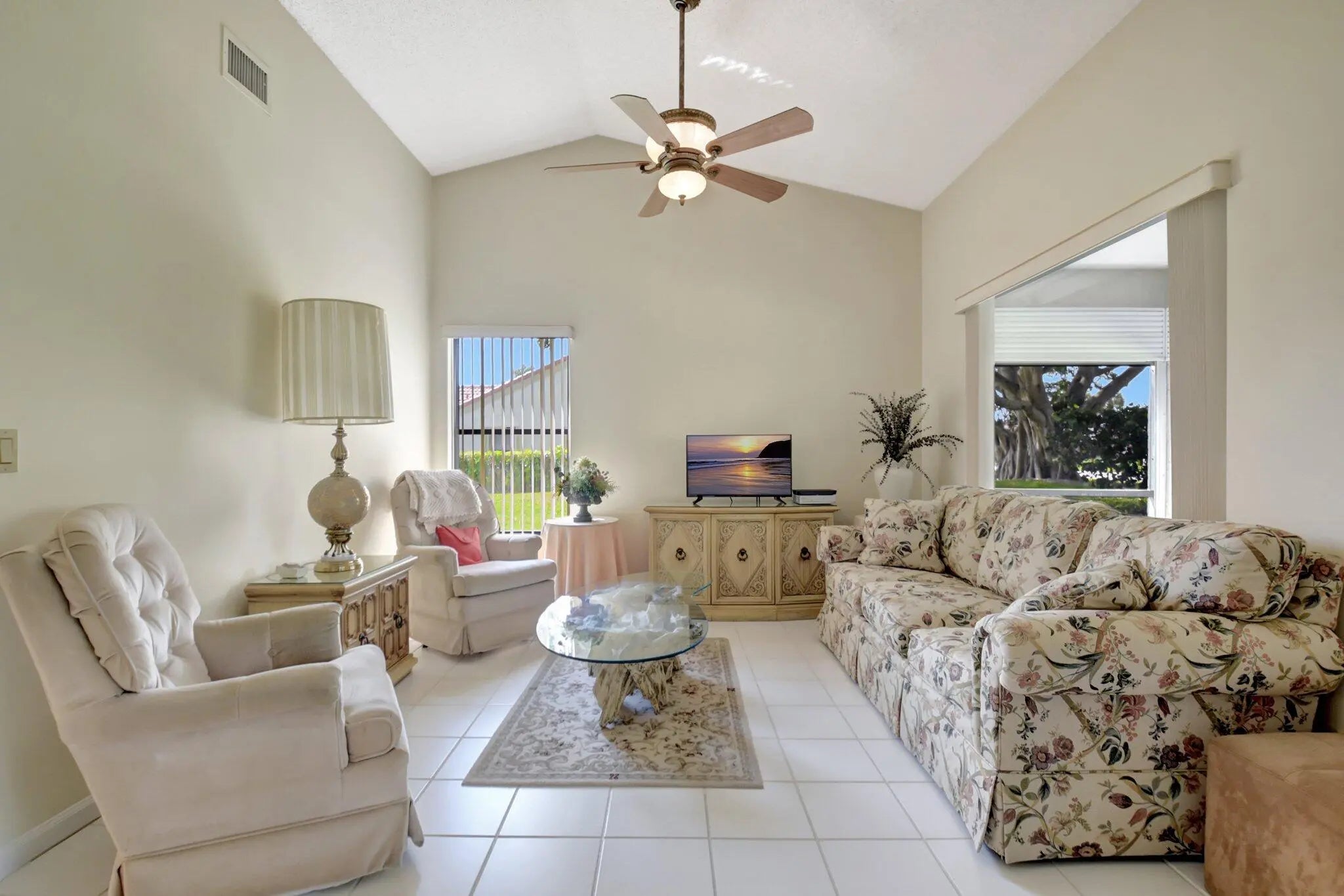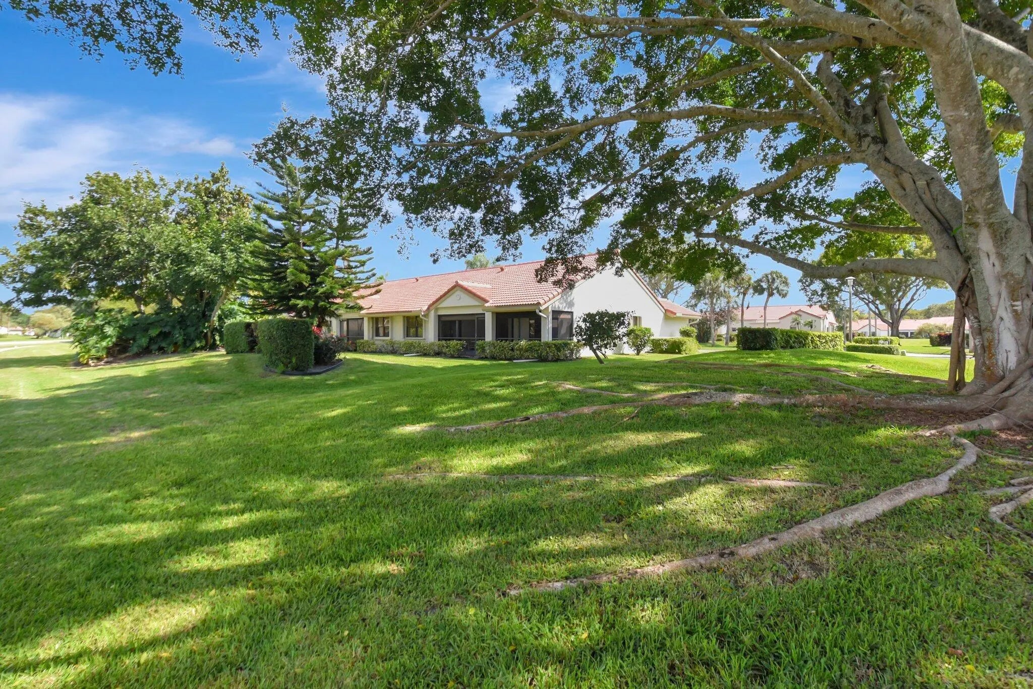 Welcome to your quiet and serene villa in Aberdeen East. Enjoy one of the best kept secrets in Boynton Beach! This end unit villa has 3 bedrooms and 2 bathrooms with a split floor plan perfect for guests and privacy. The living room and dining room are great for entertaining as well as the oversized back covered and screened patio. BRAND NEW ROOF. The very active community shares 3 Pools, Tennis & Pickleball, a gym. There is a lot of green space for nice leisurely walks around peaceful lakes. Outdoor maintenance includes landscape & pest. 55 plus Non-Equity. 2025 HOA fees: Video (TV) Only: $737.00, Triple Play (Internet, Full Cable & phone) $807.00. Buyer/buyer's broker to verify all information contained herein.