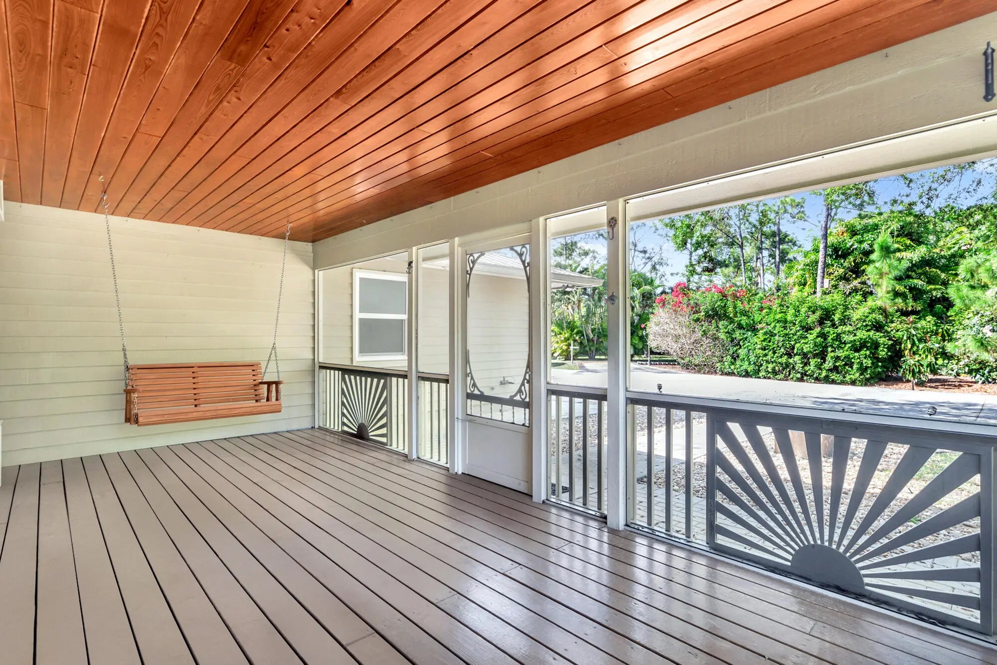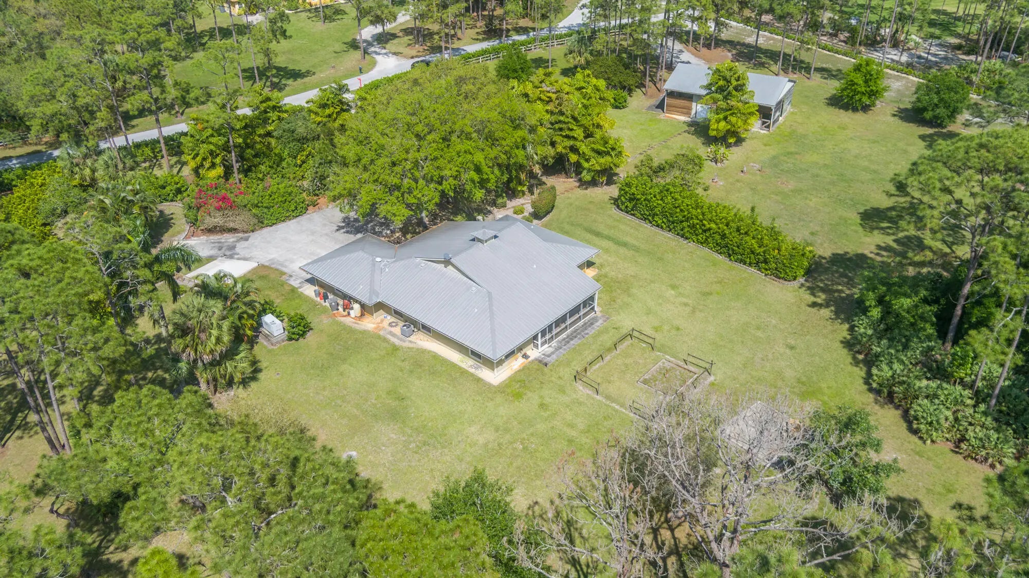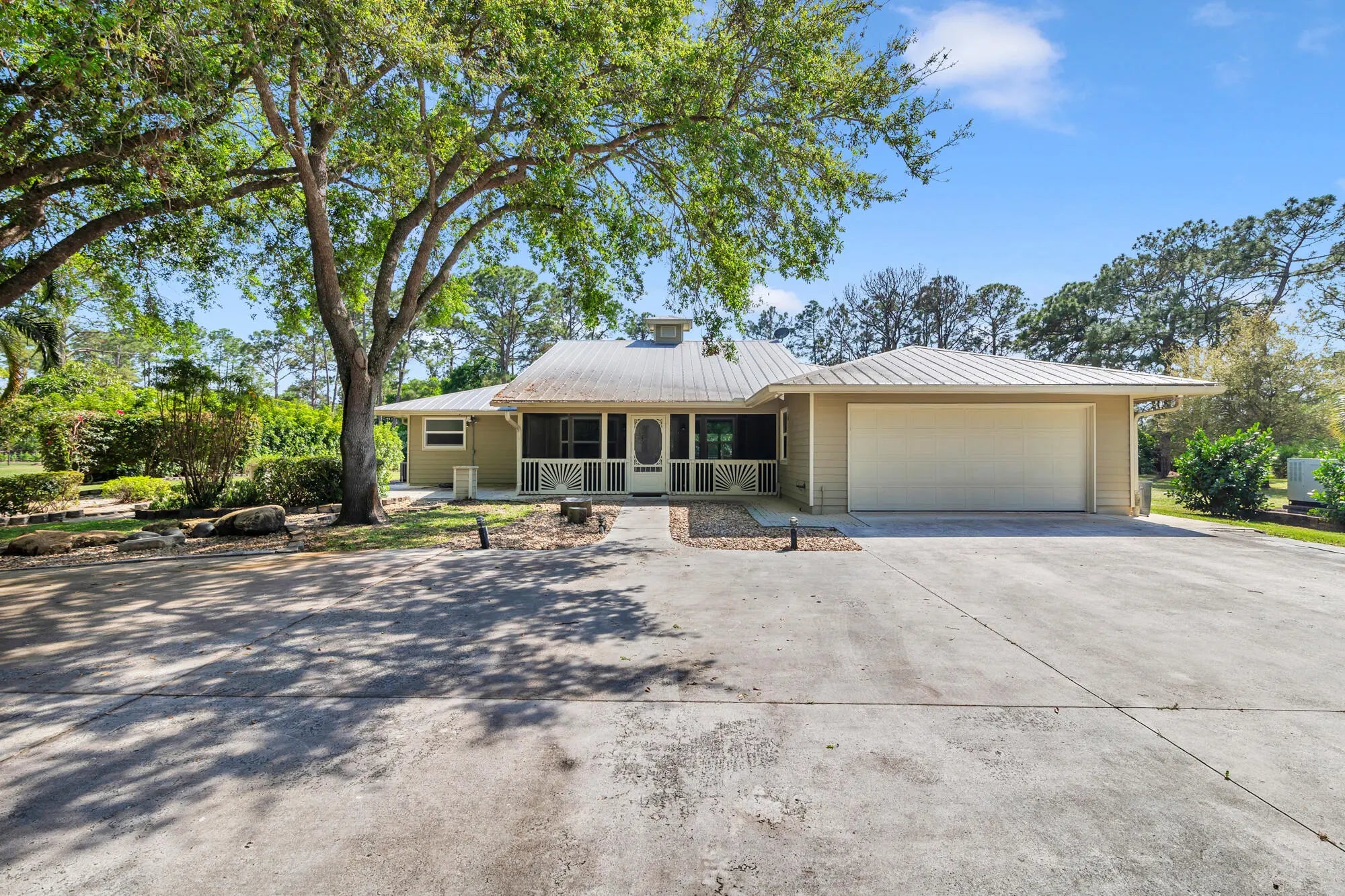 A nature lovers dream come true. This 4/3 ranch style home located in the quiet equestrian community of Caloosa, is situated on a cul-de-sac, adding extra privacy. Lush and mature landscaping greets you as you enter the fully fenced and gated property. Great room is perfect for all gatherings! Four bedrooms and three full baths. Ceramic tile though out main living area, oak wood flooring in all bedrooms.. The primary bedroom includes a walk-in closet with built ins, primary bath has a roman tub, separate shower and double vanity. Large front porch and large back patio! Entire house has hurricane impact glass windows and sliding glass door. Full house generator. Cement Paved driveway with custom gates. No horses allowed on property. Owner will allow dogs with approval. Long Term Available