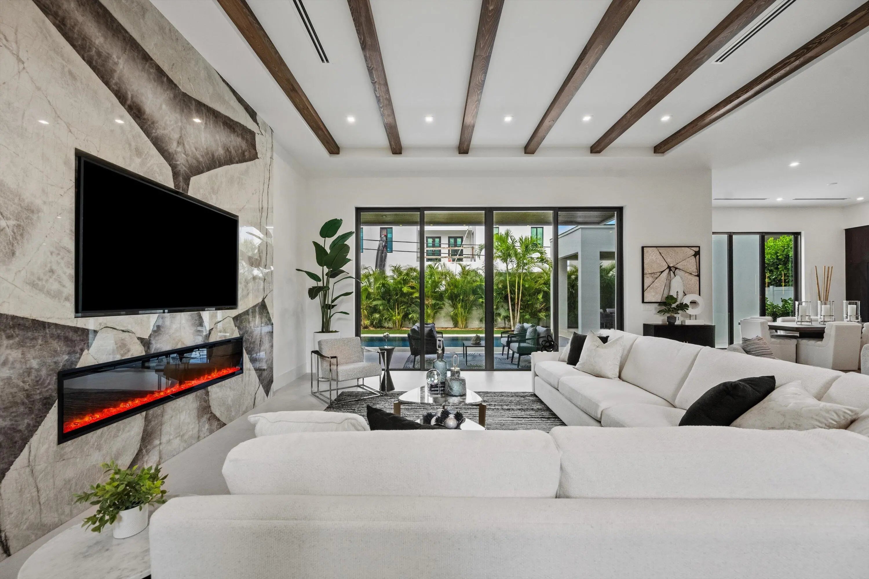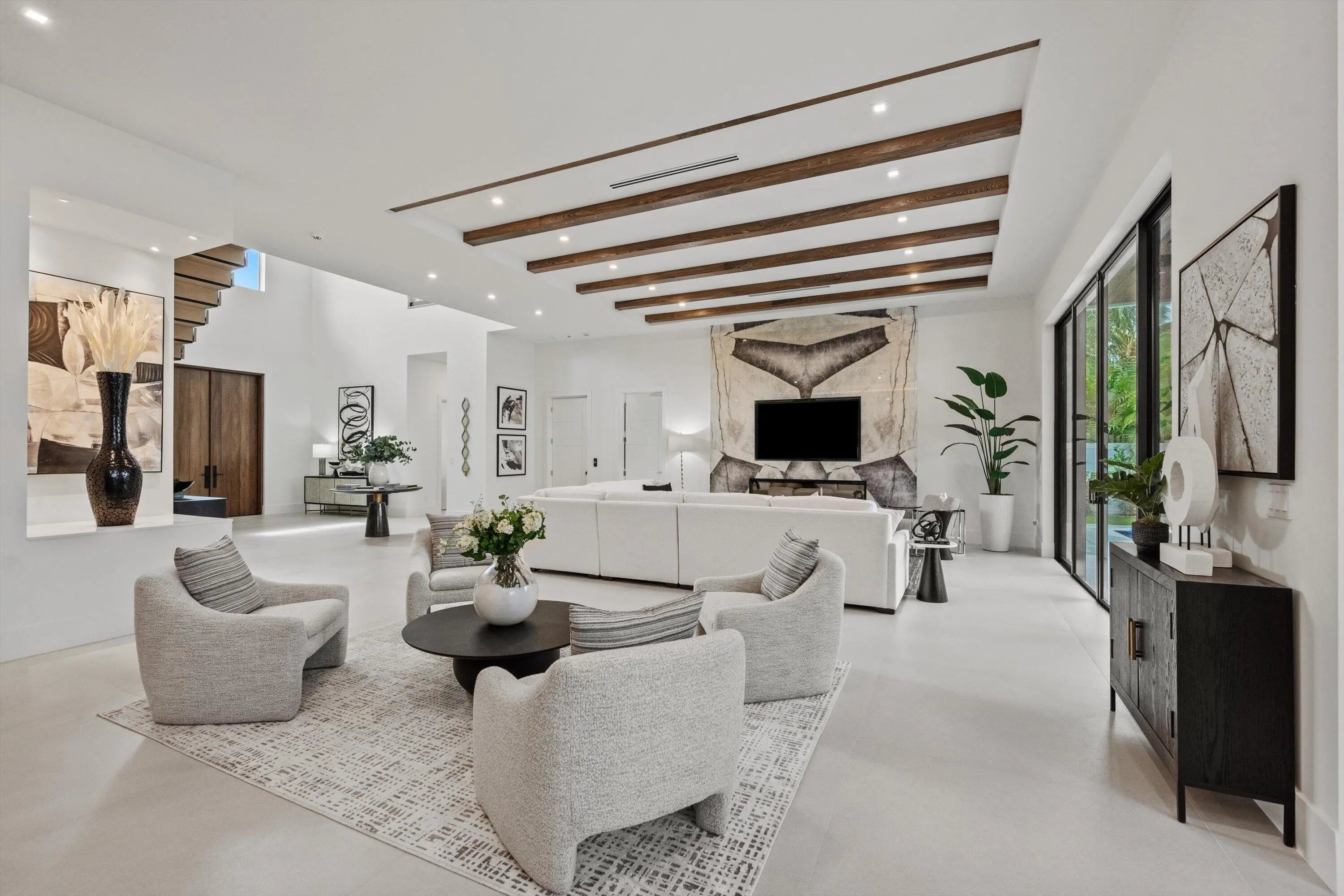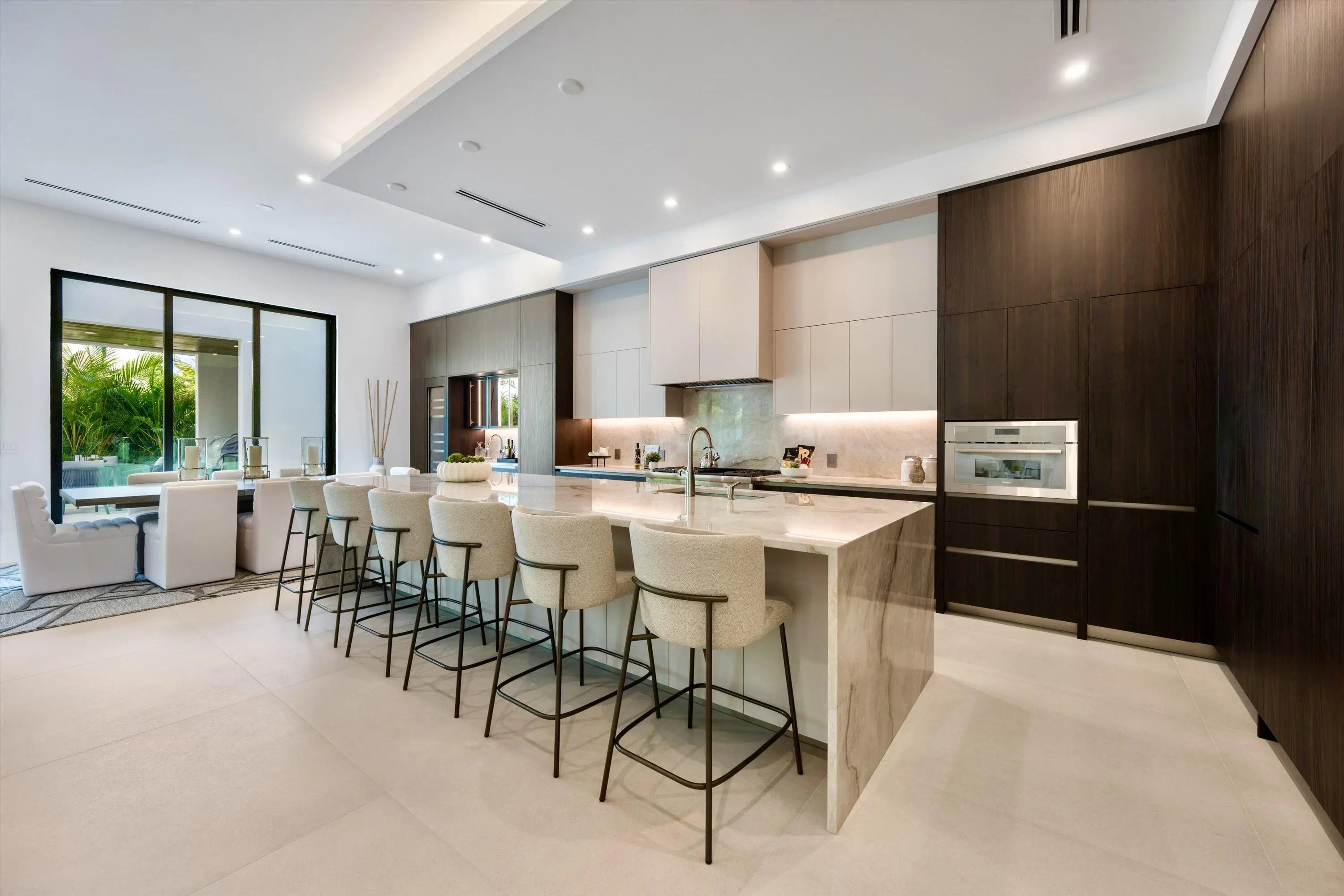 Introducing an extraordinary Custom Home, built by The Bona Group, in the highly coveted Mizner Park area of Boca Villas.This remarkable residence embodies the pinnacle of luxury living in one of Palm Beach County's most prestigious neighborhoods, where world-class golf, elite tennis, gourmet dining, high-end shopping, and breathtaking ocean beaches are moments from your front door. This unparalleled home features five en-suite bedrooms, and 6 full and 1/2 baths, complemented by an expansive loft and a full-sized home office, exquisitely designed to blend comfort with versatility. A private elevator and a state-of-the-art 32 KW generator elevate convenience, while strategically placed laundry rooms on both levels streamline daily living. With pre-installed wiring, this home is primed seamless customization to accommodate all your cutting-edge smart technology aspirations, merging modernity with imaginative potential. As you enter, you are greeted by a grand two-story foyer adorned with a striking mono stringer staircase, crafted from tempered glass and ash wood treads, serving as a breathtaking centerpiece. The oversized gourmet kitchen is a culinary masterpiece, featuring a stunning 14-foot marble island that effortlessly accommodates ten, paired with high-end appliances concealed within exquisitely designed cabinetry. The dedicated home office provides an inspiring workspace, complete with a connecting bath for utmost convenience. This residence is an entertainer's dream, boasting an outdoor haven tailored for social gatherings, featuring a lavish covered lanai and a fully equipped BBQ kitchen. Ascend to the second floor, where elegant natural hardwood oak flooring reigns, leading to an inviting open loft space that enhances the home's allure. The sumptuous primary suite is a sanctuary of relaxation, offering two expansive closets and a spa-like bathroom replete with double vanities, an indulgent shower featuring six water outlets, and a separate soaking tub. Revel in serene views of the 38' x 10' pool from your private 20-foot covered balcony off the primary suite. This exquisite home is a perfect synthesis of refined design, modern amenities, and an extraordinary lifestyle. Your opulent paradise awaits in Boca Villas!