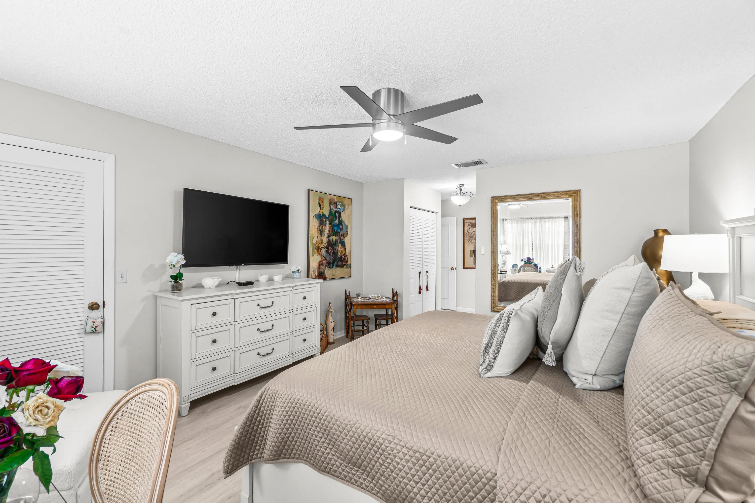 Welcome to boutique lakeside living in this exclusive 55+ community of Boca Lago. Set along the peaceful lakefront, this intimate condominium offers a perfect balance of comfort, elegance, and a relaxed lifestyle. This Move-in ready condo, recently freshly painted, this home features tile flooring throughout the main living areas and luxury vinyl in the bedrooms for a stylish and low-maintenance finish. Residents enjoy stunning water views, and a warm, neighborly atmosphere. Designed with convenience in mind, the community provides easy access to shopping, dining, and cultural attractions while offering the tranquility of lakeside living. Whether you're watching the sunset from your private balcony or connecting with neighbors in a quiet setting, this home offers the lifestyle