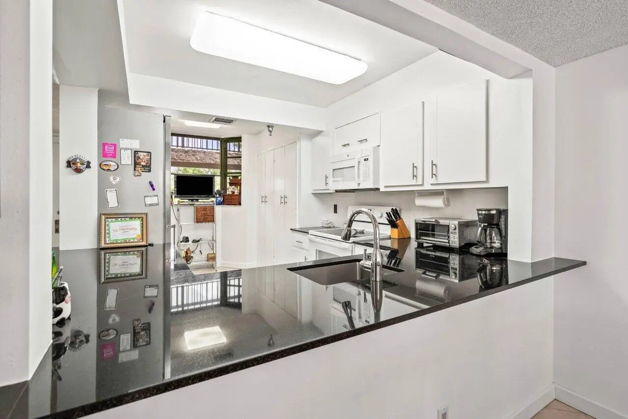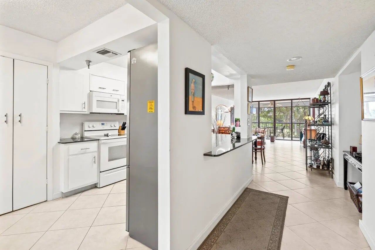 Best deal in The Glens. Beautiful two bedroom condo at the Glens with outstanding views of the Via Mizner Golf Course! Neutral tile flooring run throughout on the diagonal. This condo has been extremely well cared for and is ready for its next owner. Spacious primary suite with access on to the balcony. The Glens is a 55+ standout Central Boca community located near the Town Center mall, the new Restaurant Row, and so much more. The clubhouse features a billiards room, heated pool and spa, & gas grills. Brand new roofs recently installed on all three buildings. Assessment will be paid by seller at closing.
