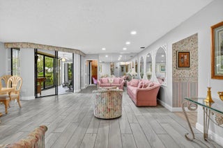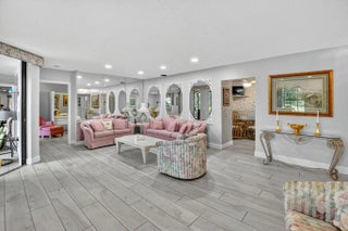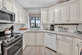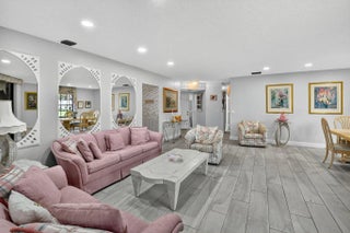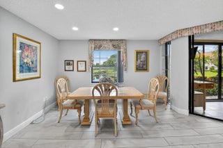 Welcome to this spacious first floor condo located in the highly desirable Lucente Village at Platina. Designed for comfort and easy living, this home offers a perfect blend of style, convenience, and beautiful views, making it ideal for both year-round residents and those seeking a sunny winter retreat. The owner positioned the formal dining room and living room to take advantage of the sparking lake view. The updated eat-in kitchen features granite countertops, stainless-steel appliances, a large pantry and plenty of cabinetry for all your storage needs. The large master bedroom boasts a bonus second closet and an updated master bathroom with a generous walk-in shower. Both bathrooms have been thoughtfully renovated for a fresh, contemporary feel. Wood-look tile flows throughout the main living areas and master bedroom, combining durability with modern style. The second bedroom features laminate flooring, and a convertible den/third bedroom offers flexible space for an office, guest room, or hobby area. There is abundant storage throughout including a private storage closet right outside the front entry door. Offered for sale with all contents included (except family photos), so you can move right in and enjoy your new home from day one. Whether you're looking for a permanent home or a seasonal escape, this home is ready for you to enjoy. Discerning buyers place PLATINA at the TOP OF THEIR LIST! The community offers care-free, resort-style living at its very best! AT&T FIBER OPTIC HIGH SPEED INTERNET is INCLUDED IN THE CONDO FEES along with PEST CONTROL, ROOF MAINTENANCE and WATER. All you pay for is electricity! The active 20,000 square foot clubhouse is stunning! Cafe open for breakfast and lunch now offering take-out meals, card rooms, fitness center with stationary bicycles in a solarium overlooking the pool area. Relax in one of the satellite pools or at the enormous free-form main pool and spacious sundeck. Tennis, handball and pickleball courts. There is also an art room with a kiln! With shows, bingo, and an array of clubs, you will not be bored! 24-hour guard gated community. Convenient access to I-95 and the Florida Turnpike. Close to shopping and wonderful restaurants. DON'T FORGET TO VISIT THE CLUBHOUSE.