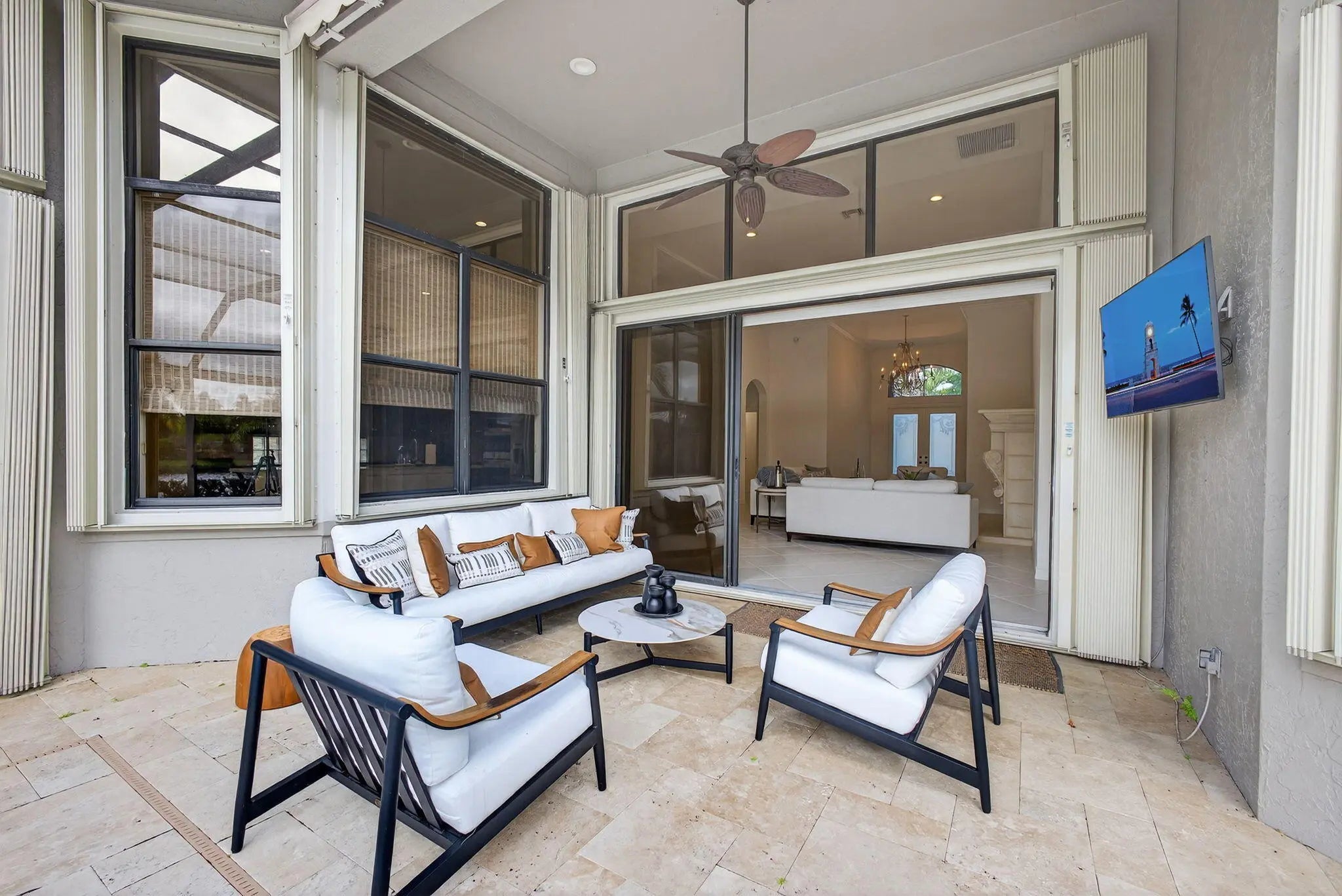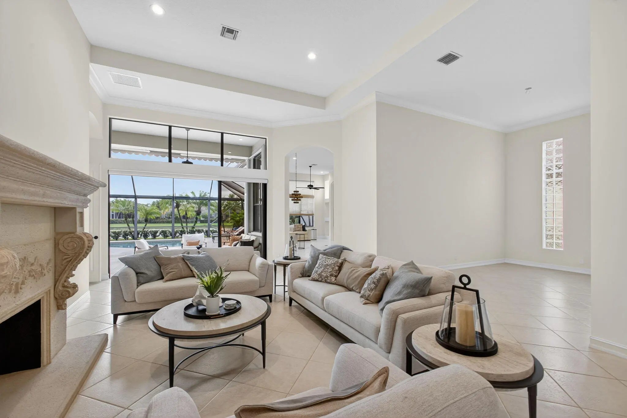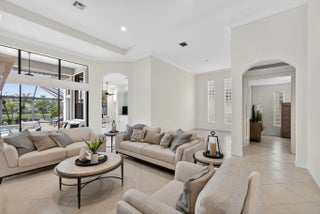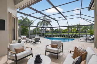 IMMEDIATE PREMIER GOLF MEMBERSHIP available with this beautiful upgraded ''Alaina'' model. Home has just been repainted, brand new epoxy floors in garage and golf cart garage. Home is sold TURNKEY with brand new furniture that was recently purchased. Featuring a private water lot with an ideal southwest exposure. New roof installed in May, 2021 along with seamless gutters. Accordian shutters throughout, as well as a whole house generator, August 2020. There is a new water heater(2024) as well as a new heat pump (2023) for the pool. The pool was resurfaced in 2023 and the back yard has a retractable screen. Brand new outdoor furniture makes outdoor living peaceful and serene. Plantation shutters in all bedrooms doors have been replaced with solid wood. Many more upgrades in this home