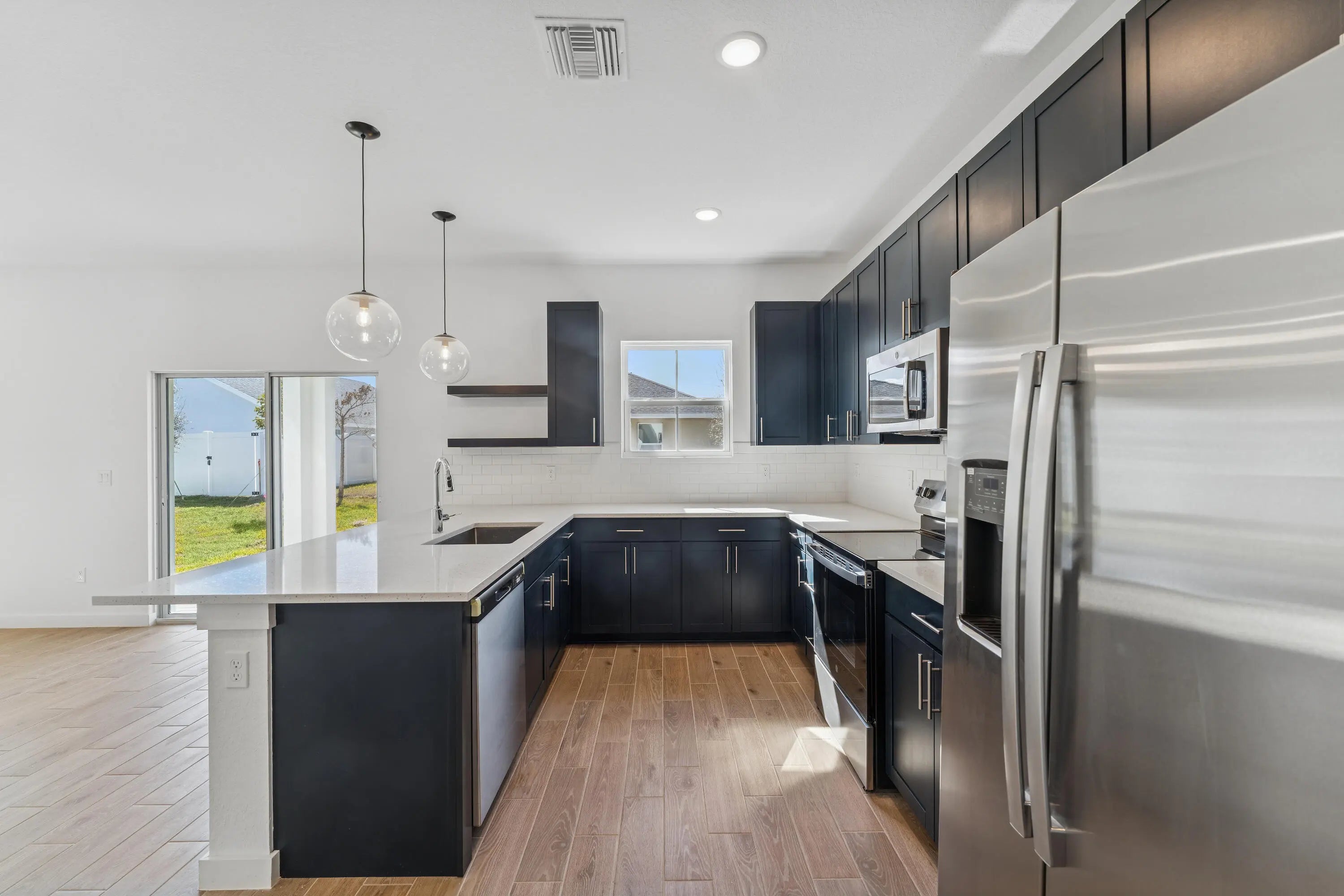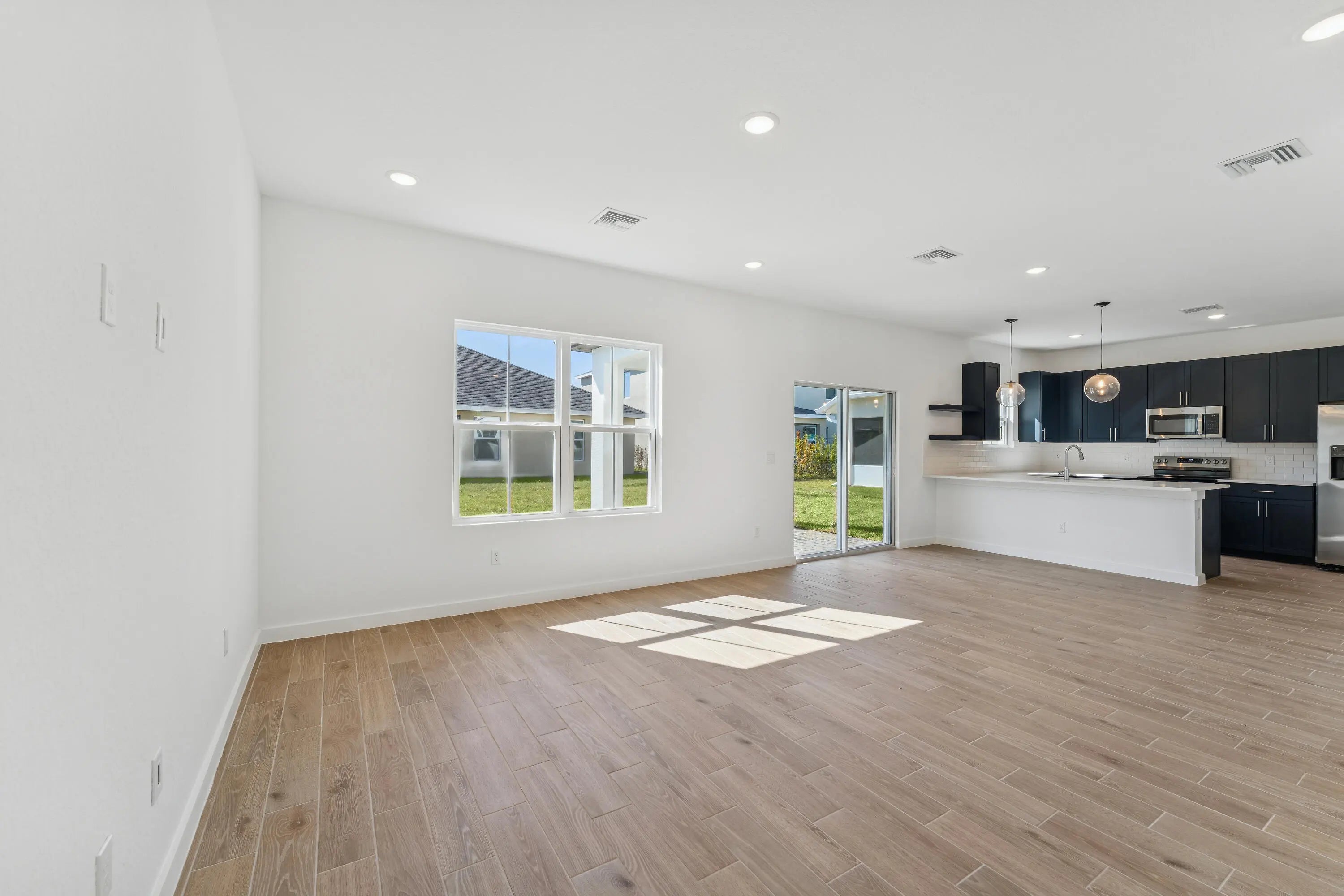 This beautiful two-story home offers the perfect blend of style and comfort. Designed with both everyday living and entertaining in mind, the open layout connects the great room and dining area to create a warm, inviting space for gatherings. The kitchen stands out with striking Navy Blue cabinets paired with Iced White quartz countertops, combining elegance with functionality. Upstairs, the lavish primary suite features a spacious bath and walk-in closet, while a versatile loft provides extra living space that can easily serve as a media room, office, or playroom. The second-floor laundry adds convenience to daily routines. Outside, an inviting covered patio extends the living area and offers the perfect spot to enjoy Florida's year-round sunshine. Completing the home is an attached two-car garage, providing plenty of room for vehicles, tools, and storage. Available January 2026, this thoughtfully designed Fort Pierce residence is the ideal place to call home.