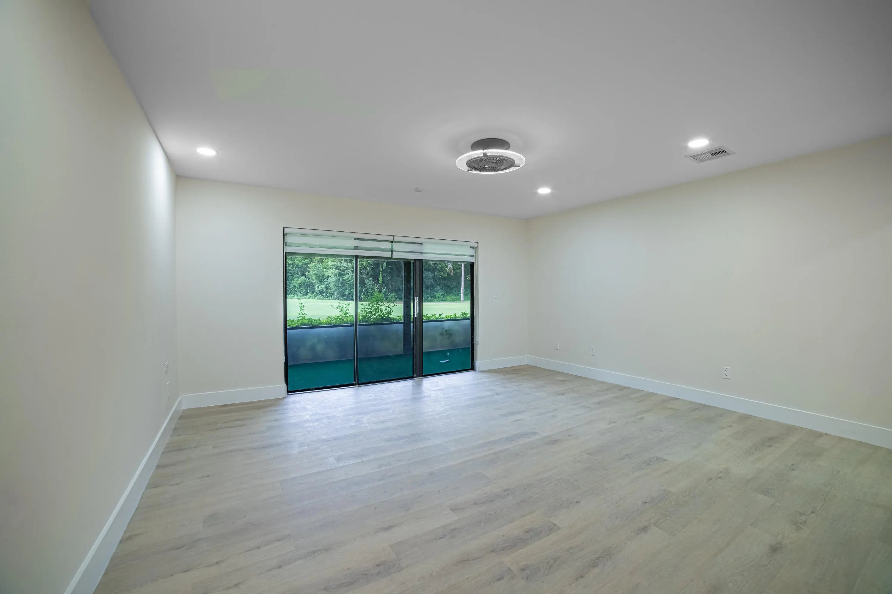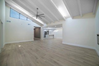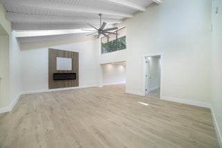 THIS IS NOT A TOWNHOUSE but a gorgeous, remodeled 3-bedroom VILLA featuring 2,200 square feet of living space under air with a split floor plan. Located in a man-gated 55+ community, the property includes a new roof installed in 2024, no new assessments and a maximum light inside due to the cathedral ceiling and a skylight in kitchen area, A spectacular designer entrance greets you, leading to a very large main living area with 18-foot high white ceilings with wood beams. - A media room complete the large living area with golf view and access to a gigantic screened patio A separate area with two large guest bedrooms with sliders leading to a private patio and their bathroom equipped with shower/tub. - A huge master suite features a walk-in closet with a quartz island and a spectacular bathroom with 2 showers behind glass sliders. Also there is a wet bar and under-air storage area for fragile items. - An open-concept kitchen equipped with stainless steel appliances, a large quartz waterfall island, and a dining area with a skylight. - Designer window treatments on all windows and sliders. Recessed dimmable led lights in all rooms, designer ceiling fans. 1 car garage and 3 cars parking space plus many guest parking across the Villa This is a gem waiting for you. Pool is 3 minutes walking across the street.