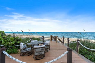 RARE and EXCEPTIONAL blend of beachfront elegance, coupled with the highly sought after Jupiter Island vibe that you've been searching for. 613 S Beach represents the best of both worlds, sitting directly on the sand on the exclusive Jupiter Island beachfront, while maintaining a casual tone with its deeded Intracoastal Waterway water frontage, boat dock, and lift. This luxurious retreat has been fully furnished and is fully equipped to make your South Florida stay effortless. Featuring an open, airy floor plan with five large bedrooms in the main home, each with a generous walk-in closet and large ensuite bathroom, plus an office or den in the main house, AND a detached large one-bedroom guest house! [click for more] The entire property boasts pride of ownership, with impeccable millwork, intricate carpentry and stunning tile flooring, creating an ambiance of refined beauty, while feeling like an intimate beach house all the same. The main house features a thoughtfully designed floorplan, catering to households of all sizes and with that highly sought after indoor-outdoor flow between the interior living spaces, the expansive pool deck, and the beach access beyond. Step outside to your piece of Jupiter Island paradisea sprawling beachfront haven, anchored by the property's lush landscaping, sparkling pool, all against the breathtaking backdrop of the Atlantic's endless blue horizon. This exceptional residence is ready to become your private oasis. Enjoy the vibrance that Jupiter has to offer, and revel in the exclusivity of this prestigious address.