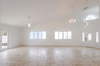 Well-kept West Boca home featuring 3 bedrooms and 2 bathrooms on a fully fenced corner lot with a spacious backyard. Recent improvements include fresh neutral paint, smooth ceilings (no popcorn), and updated lighting fixtures throughout the home, garage, and exterior. Travertine marble flooring runs through the living areas, highlighted by vaulted ceilings and abundant natural light. The updated kitchen offers wood cabinetry, granite counters, and stainless steel appliances. The primary suite includes two walk-in closets and a remodeled bath with an oversized walk-in shower. Additional features include a front-load washer/dryer, upgraded garage lighting, and thoughtful improvements that create a bright, welcoming feel. This home is move-in ready, modernized, and turnkey.
