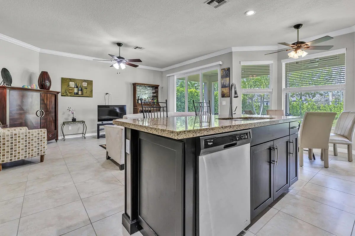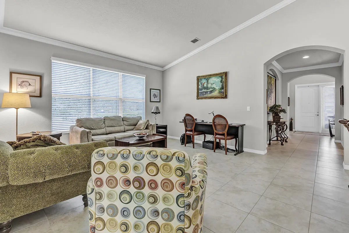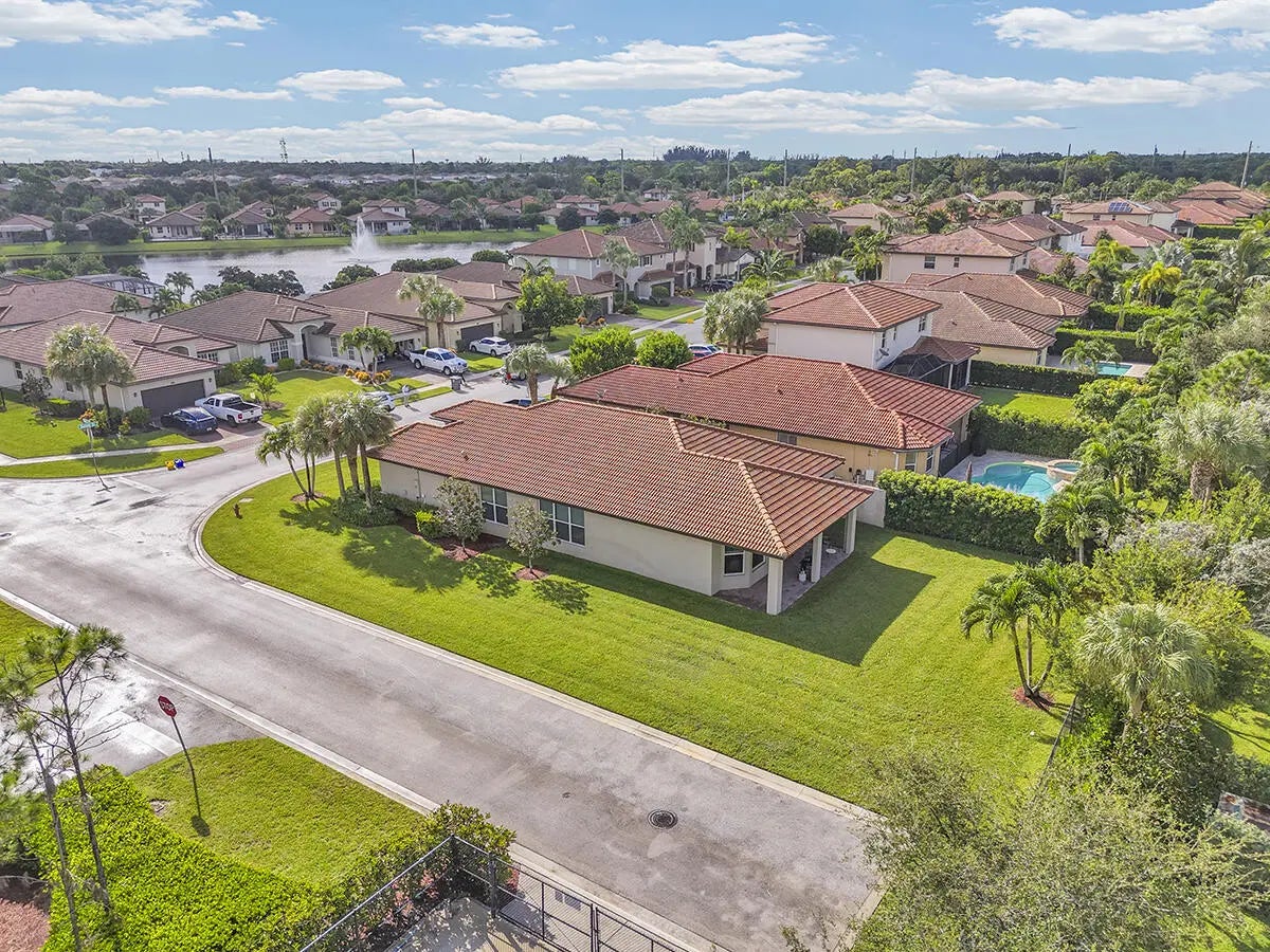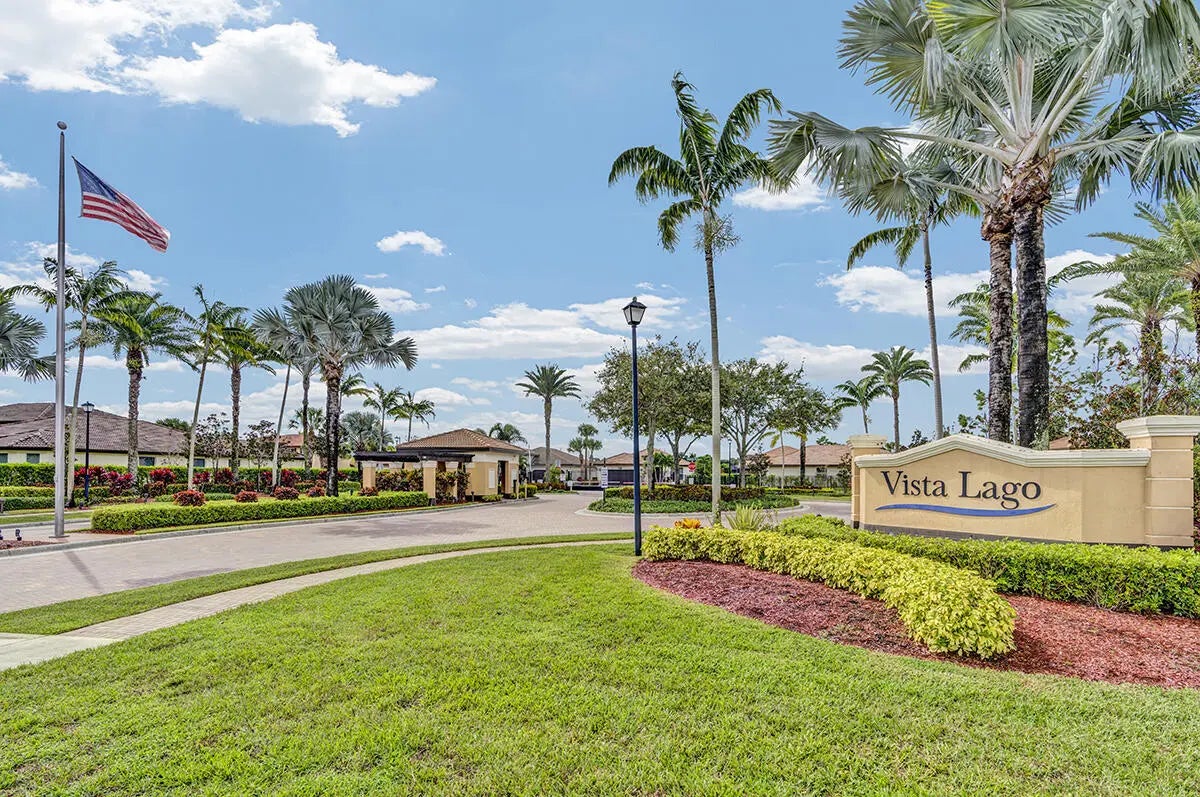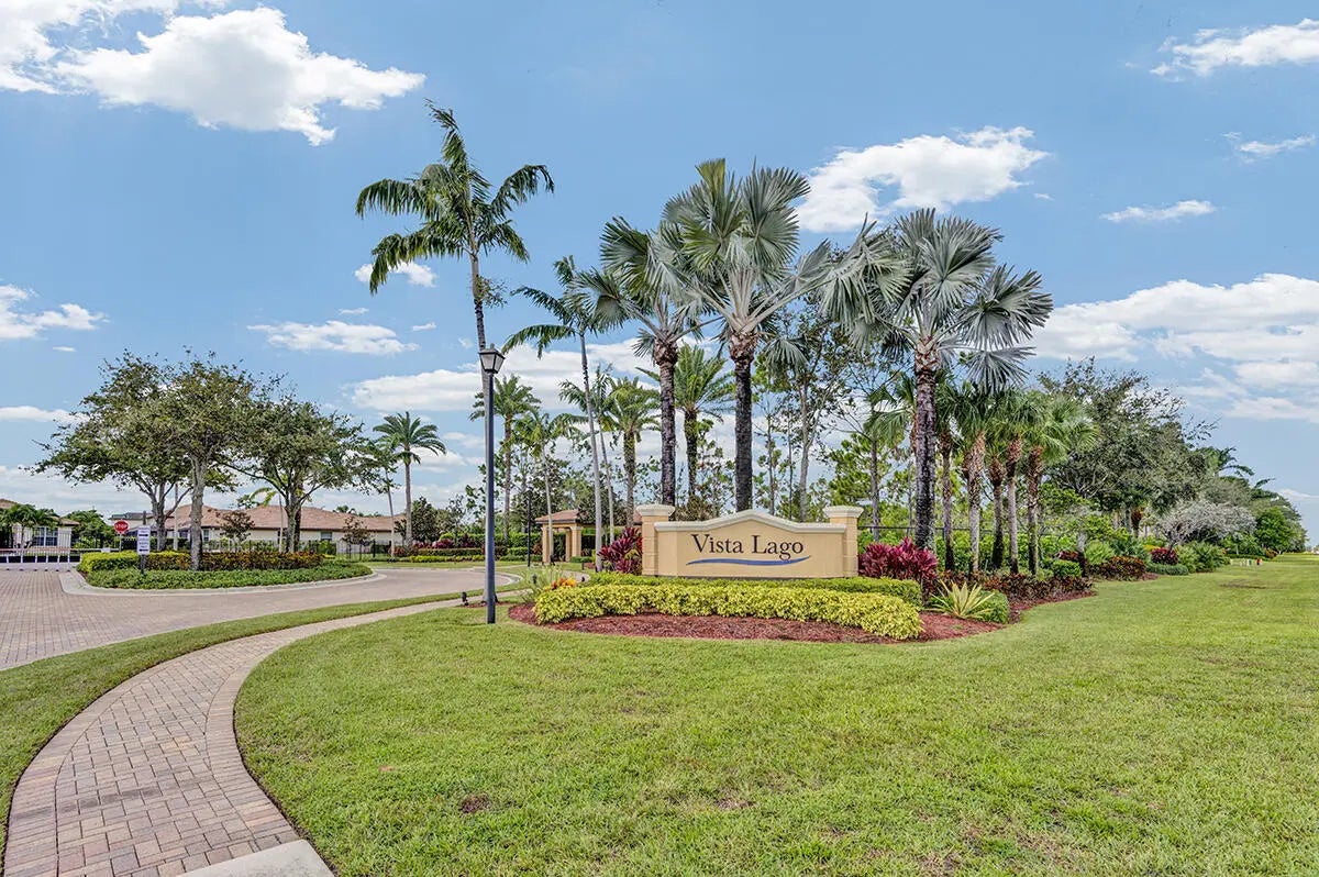 Welcome to this charming large corner lot with 3 bed, 2 bath, 2 car garage home located in the highly sought after and excellently managed community of Vista Lago directly across the street from community pool. Built in 2016, this home features a timeless Mediterranean style design with high ceilings, crown molding, and colonial baseboards that add an elegant touch. The open floor plan creates a spacious atmosphere, perfect for both relaxation and entertaining. Enjoy peace of mind with impact windows and Square-D surge protection for all appliances. Rarely lived in due to seasonal ownership. This central location offers easy access to I-95, the Turnpike, top rated restaurants, PBI Airport, and pristine beaches. Everything you need is just a short drive away! Make this beautiful home your own and experience comfort, convenience, and style in one of the most desirable neighborhoods
