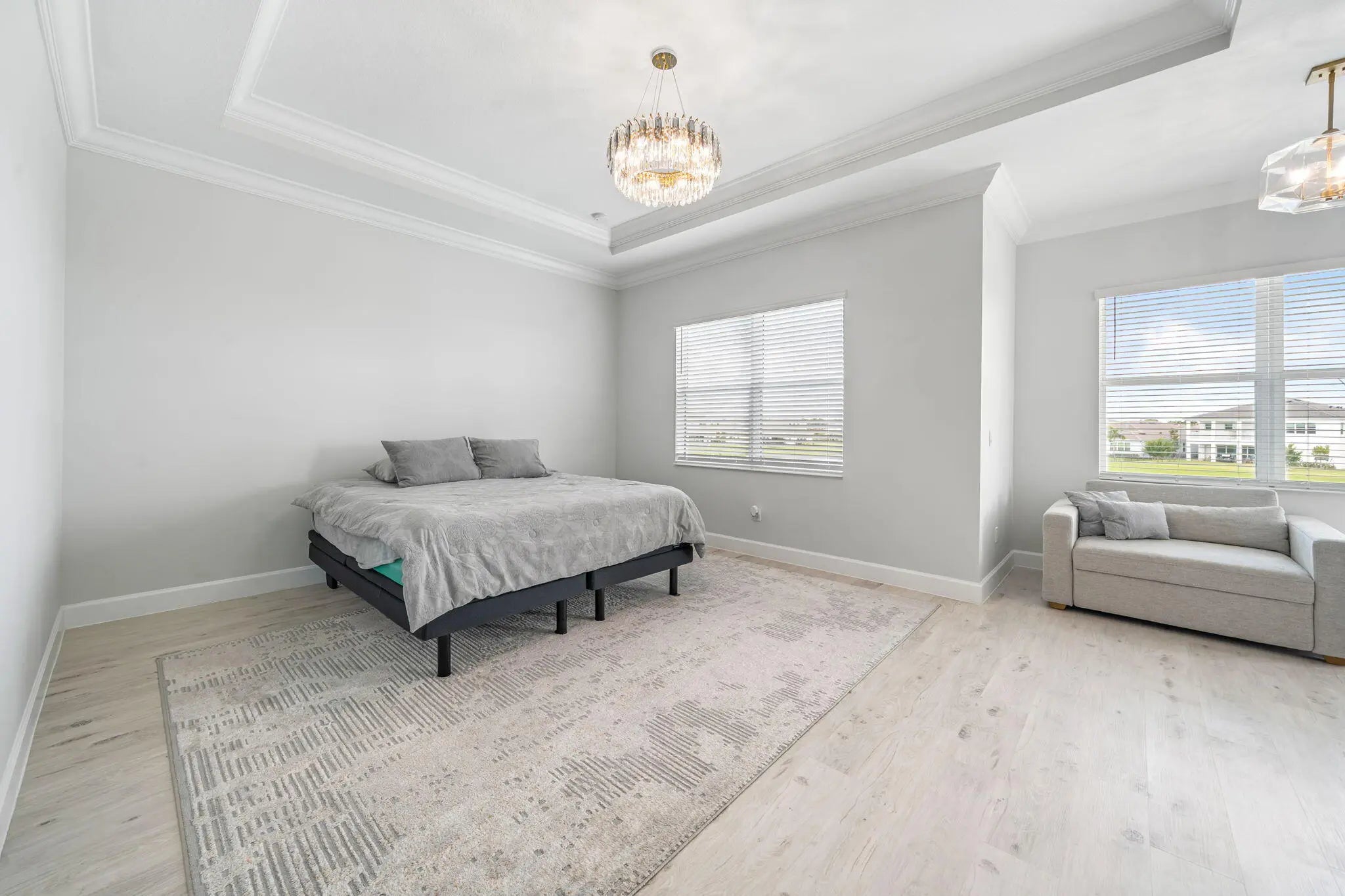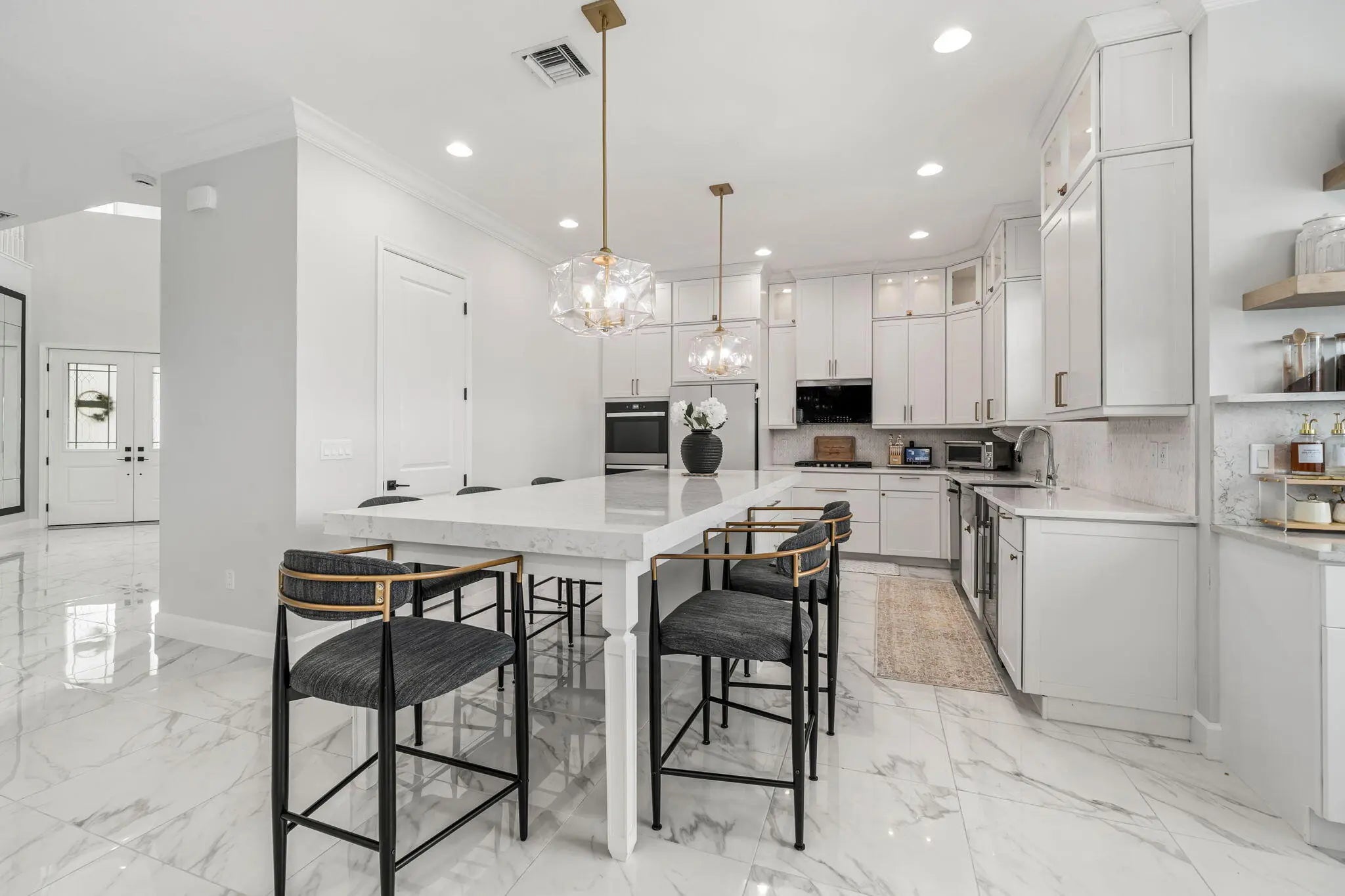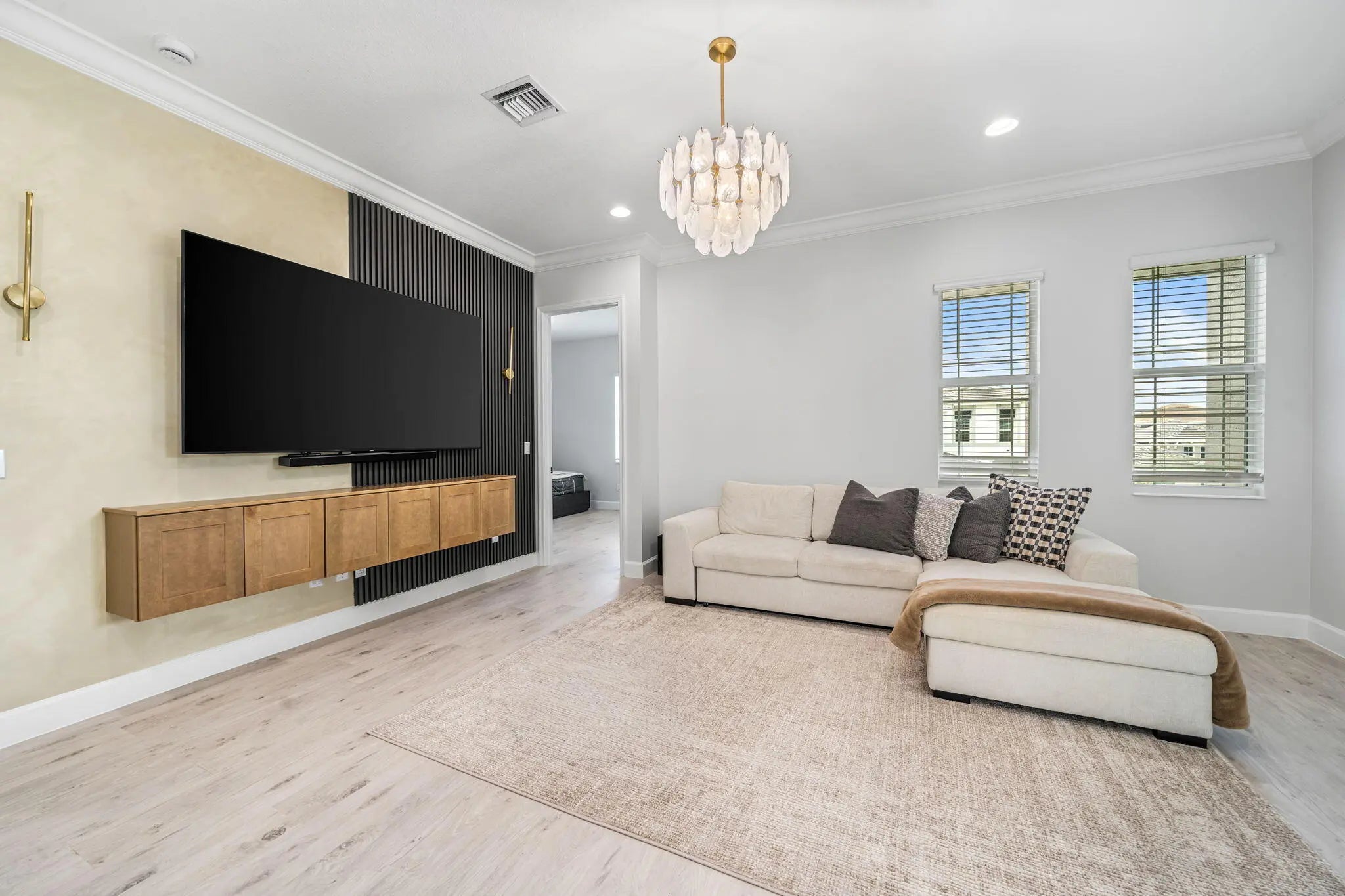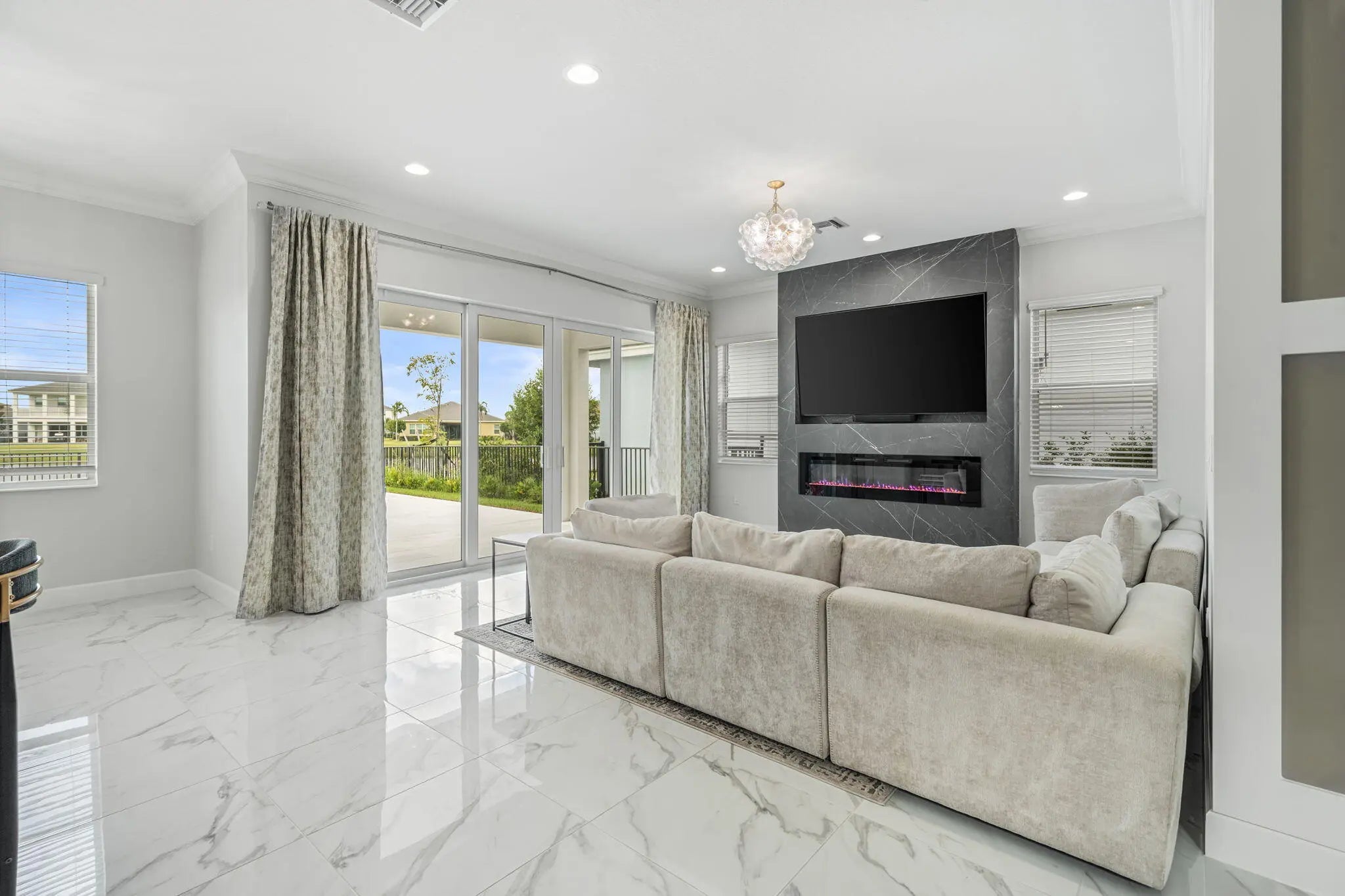 Impressive from the moment you arrive, this home features soaring 20-foot ceilings, impact windows, and extensive upgrades throughout. The gourmet kitchen offers elegant double-stacked lighted cabinetry, a designer island with premium slab countertop, a custom coffee bar with floating shelves, gas range, tankless gas water heater, and upgraded hardware. Designer chandeliers, pendant fixtures, recessed lighting,wainscoting and crown molding add timeless elegance. The primary suite includes a private balcony retreat and an upgraded bath with custom tile designs. Additional highlights include luxury vinyl floors upstairs and on the stairs, a porcelain fireplace wall, versatile loft, custom closet systems in all bedrooms, marble pavers, epoxy garage floors, & upgraded lighting throughout From the moment you arrive, this residence makes an impression with soaring 20-foot ceilings and a wealth of thoughtful upgrades. Built with impact windows throughout, extra wall insulation, and gypcrete on the second floor for reduced noise, the home offers both comfort and efficiency. The gourmet kitchen features elegant soft-close, double-stacked lighted cabinetry, a designer island with premium slab countertop, upgraded hardware, and a gas range with a tankless gas water heater. A custom coffee bar with floating shelves adds convenience and style to the heart of the home. Designer chandeliers, pendant fixtures, recessed lighting, and crown molding elevate every space, complemented by freshly painted interiors. The primary suite includes a private balcony retreat, an upgraded bath with custom tile designs, and new mirrors. Bathrooms throughout have updated faucets and finishes, while all bedrooms include custom closet systems. The home also showcases luxury vinyl flooring upstairs and on the stairs, a porcelain fireplace wall in the living room, a loft accent wall with floating cabinet, and wall panels with sconces on the stairwell. Additional highlights include a versatile loft, generously sized bedrooms, travertine pavers, epoxy garage flooring, and upgraded light fixtures throughout. A perfect balance of design and function, this home delivers elegance, efficiency, and enduring style.