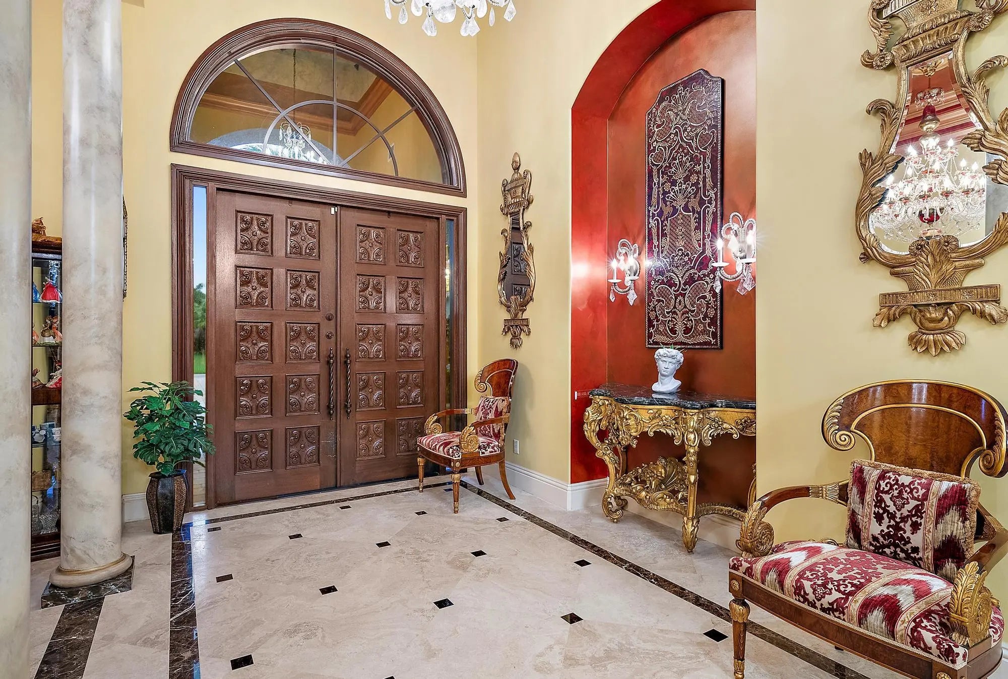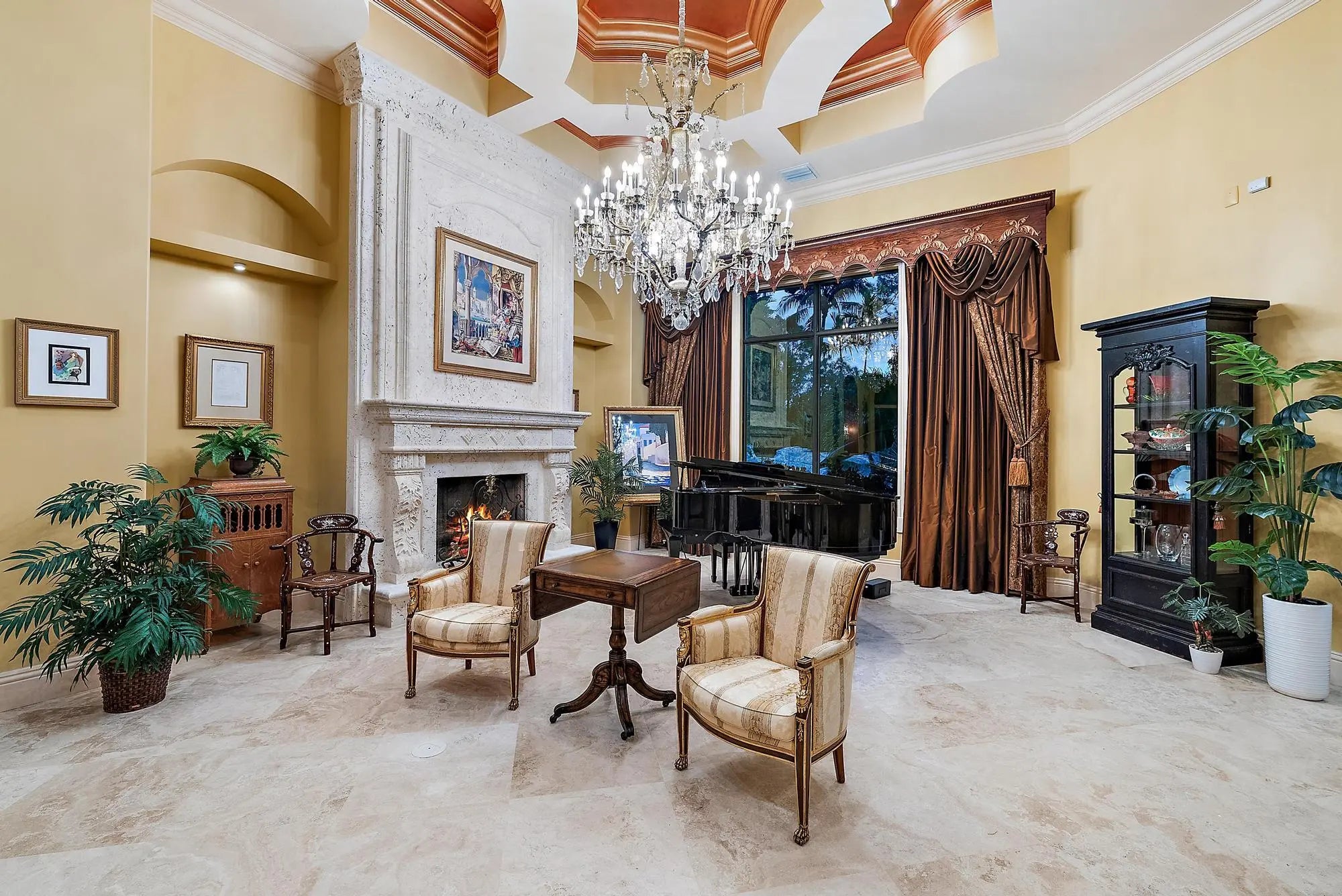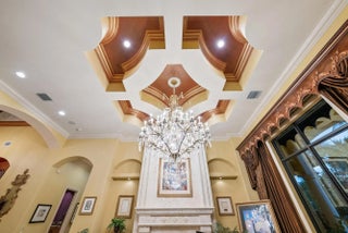 This extraordinary single-story estate in prestigious Bay Hill Estates offers the ultimate blend of timeless craftsmanship and modern convenience. Spanning over 5,400 square feet on a private one-acre lakefront lot, this residence is a showcase of artisan finishes, state-of-the-art upgrades, and resort-style amenities. From the moment you step into the grand foyer, graced with inlaid marble floors and soaring coffered ceilings, it is clear that every detail of this home has been designed with sophistication in mind. The living spaces are adorned with custom millwork, hand-selected marbles, solid wood cabinetry, and designer chandeliers, while a coral stone fireplace anchors the formal living room with warmth and elegance. The chef's kitchen is a culinary masterpiece, featuring Sub-Zero and Thermador appliances, an oversized prep island, and exquisite European cabinetry with imported marble. A custom wood-paneled office provides a serene retreat, while the private home theater, outfitted with Crestron automation, plush recliners, and sound-insulated walls, creates a true cinematic experience. In recent years, the property has undergone significant enhancements to meet the expectations of today's most discerning buyers. A whole-house generator was installed in 2023, ensuring comfort and security in any season. Outdoor living is elevated with a Swat mosquito system (2022), an invisible dog fence (2022), and dual Tesla charging outlets (2025). Comfort and efficiency are further enhanced with insulation blown into the attic (2022), a new septic pump (2023), a new in-home vacuum motor (October 2022), and a smart thermostat and doorbell integrated with a wireless ADT security system (2022). Additional mechanical updates include a new air conditioner compressor (June 2024), a new cooktop (2022), a new microwave (2024), a new pool pump (August 2025), and WiFi-enabled irrigation and pool equipment controllers (2022). The interiors also shine with thoughtful upgrades. All three bedrooms received new tile flooring in late 2022, and a guest bathroom was beautifully renovated in February 2023. Travertine tile throughout the home was cleaned and sealed in 2025, while the entire house was professionally power washed in September 2025, presenting the home in pristine condition. Additional conveniences such as garage shelving (July 2022), new pool lighting (August 2025), and an upgraded Crestron movie system with integrated indoor and outdoor speakers add comfort and luxury to everyday living. The outdoor spaces are nothing short of spectacular. A dramatic resort-style pool with spa and two cascading waterfalls faces the private lake, creating a stunning focal point for entertaining and relaxation. The expansive patio, cabana bath, summer kitchen with built-in grill, and newly enhanced pool lighting set the stage for unforgettable gatherings under the stars. Bay Hill Estates is a gated enclave of just 240 homes, each on one-acre lots surrounded by canals, lakes, and a PGA National golf course. The community provides 24-hour manned security, walking paths, cable and internet, and optional membership to PGA National's golf and tennis facilities. Shopping, dining, cultural venues, and Palm Beach County's pristine beaches are only minutes away, ensuring an unmatched lifestyle in a tranquil yet connected setting. This residence is more than a homeit is a legacy property that combines uncompromising luxury with over two dozen carefully curated recent improvements, making it truly move-in ready and future-proof.