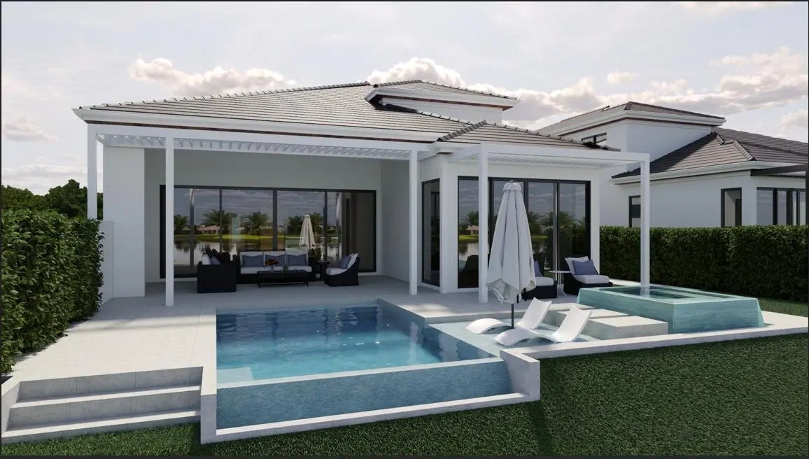This newly constructed 3,800 sq ft Modern/Transitional lakefront residence embodies refined elegance and effortless livability. Designed with an open-concept layout, the home features expansive windows and an abundance of natural light. The upper level boasts three oversized ensuite bedrooms, a loft with wet bar, and dedicated laundry. On the main level, the primary suite, designated office, laundry room with generous storage and open kitchen with oversize island, dining, and family room flow seamlessly to expose a covered loggia with a fully appointed outdoor kitchen overlooking the infinity-edge pool ideal for entertaining. Architectural highlights include a floating staircase and pass-through elevator.