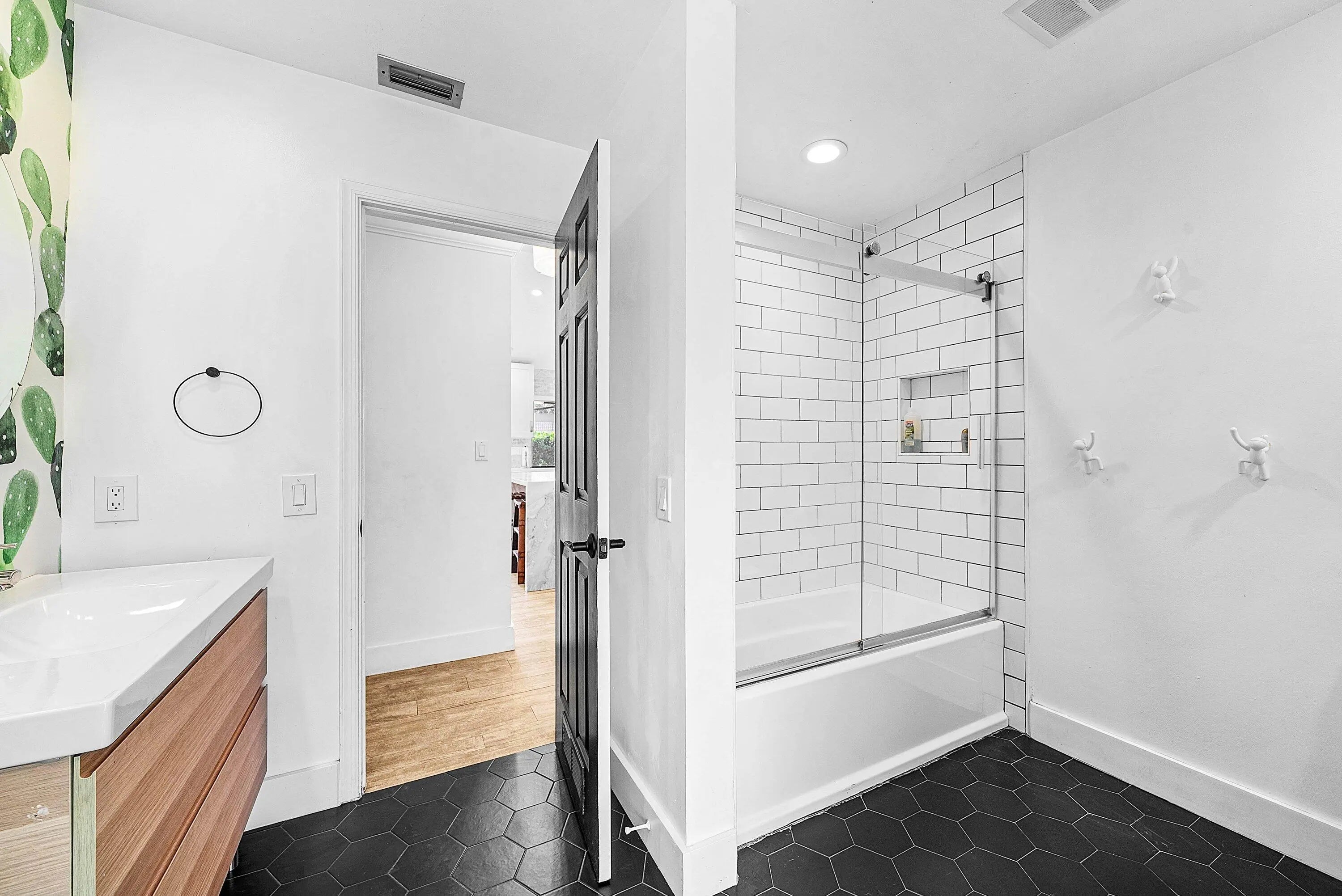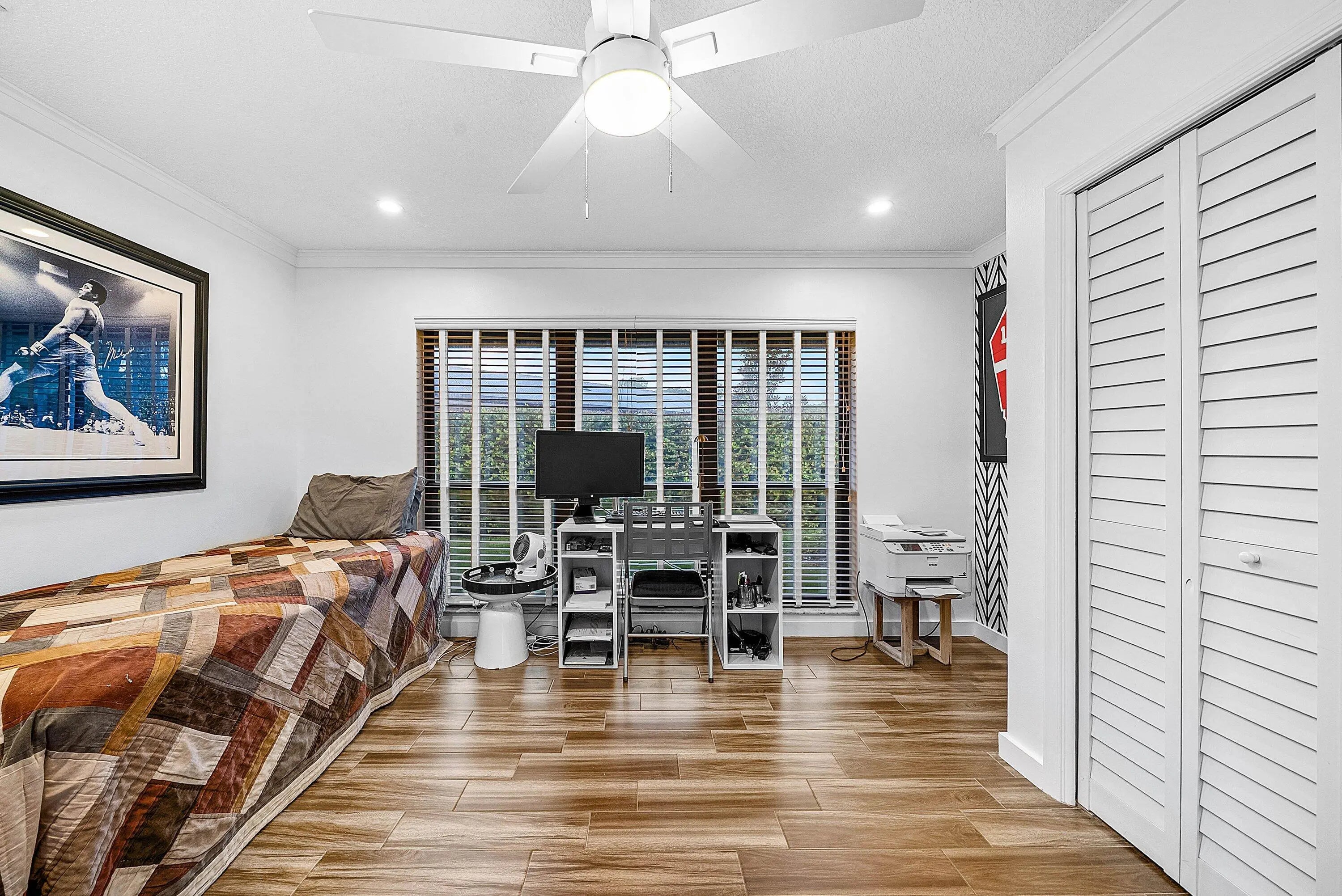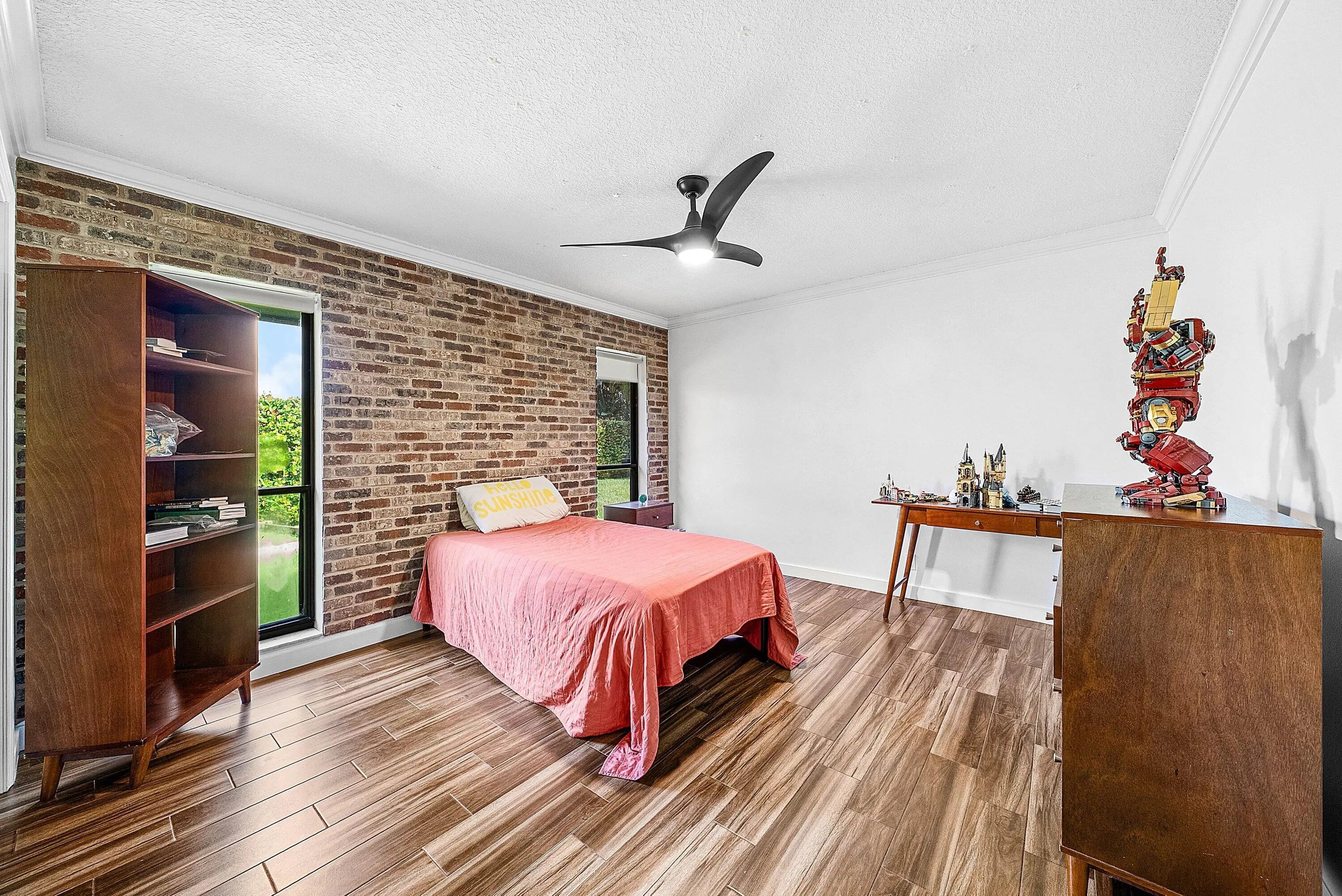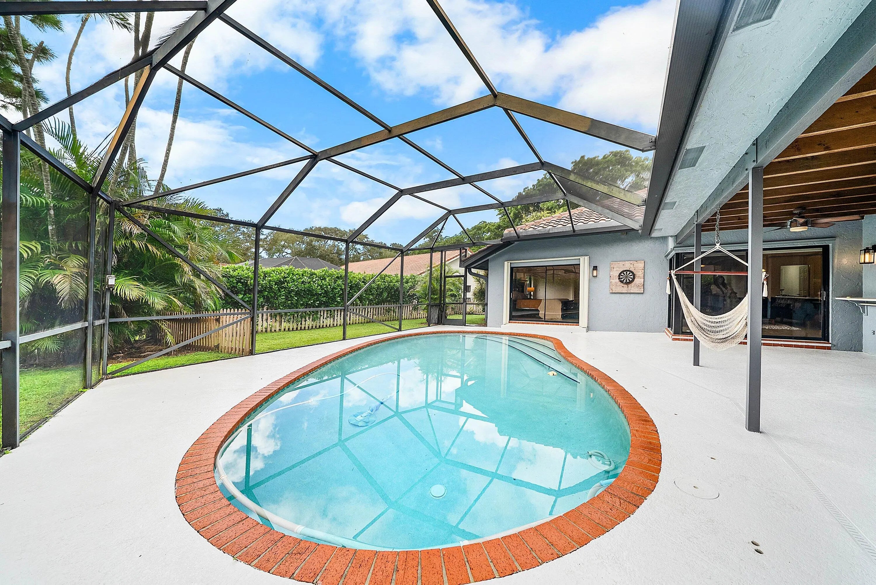 Situated on a rare oversized cul-de-sac lot in Boca Raton's coveted Millpond, this 4BR/2.5BA residence offers the perfect blend of style and function. Soaring vaulted ceilings, wood-look porcelain floors, and a spacious living room with dry bar set the stage for elegant entertaining. The chef's kitchen impresses with quartz counters, marble waterfall island, custom cabinetry, and Wolf/Sub-Zero appliances. Enjoy resort-style outdoor living with a screened saltwater pool, patio, and lawn. Modern upgrades include a full-house Generac generator. Millpond's tree-lined streets, walking trails, tennis, basketball, and private park create a true neighborhood feel—all minutes from top A+ schools, I-95, and the Turnpike.