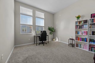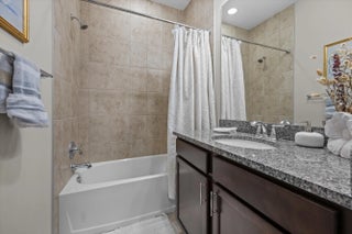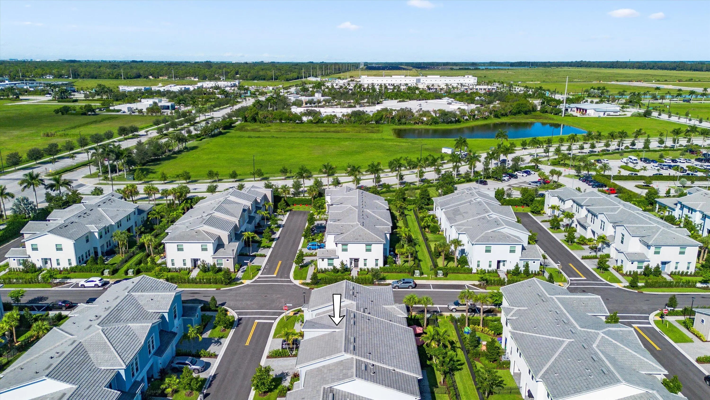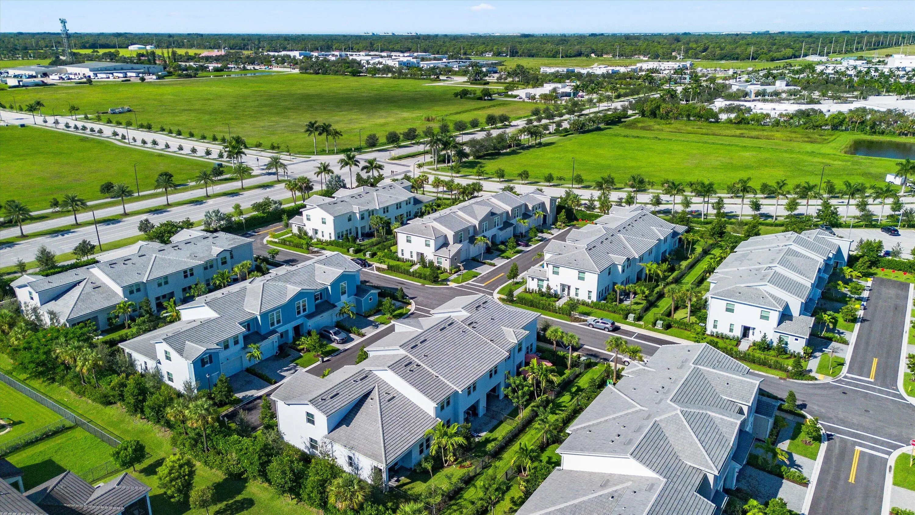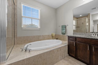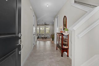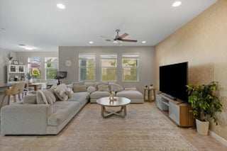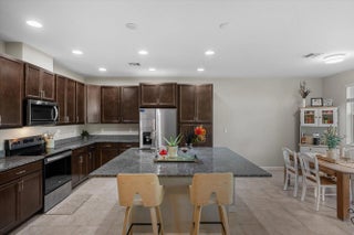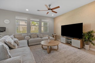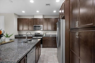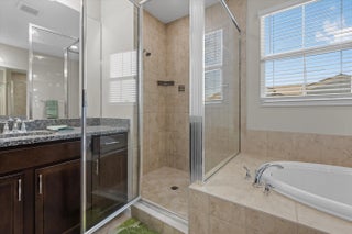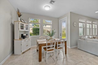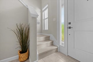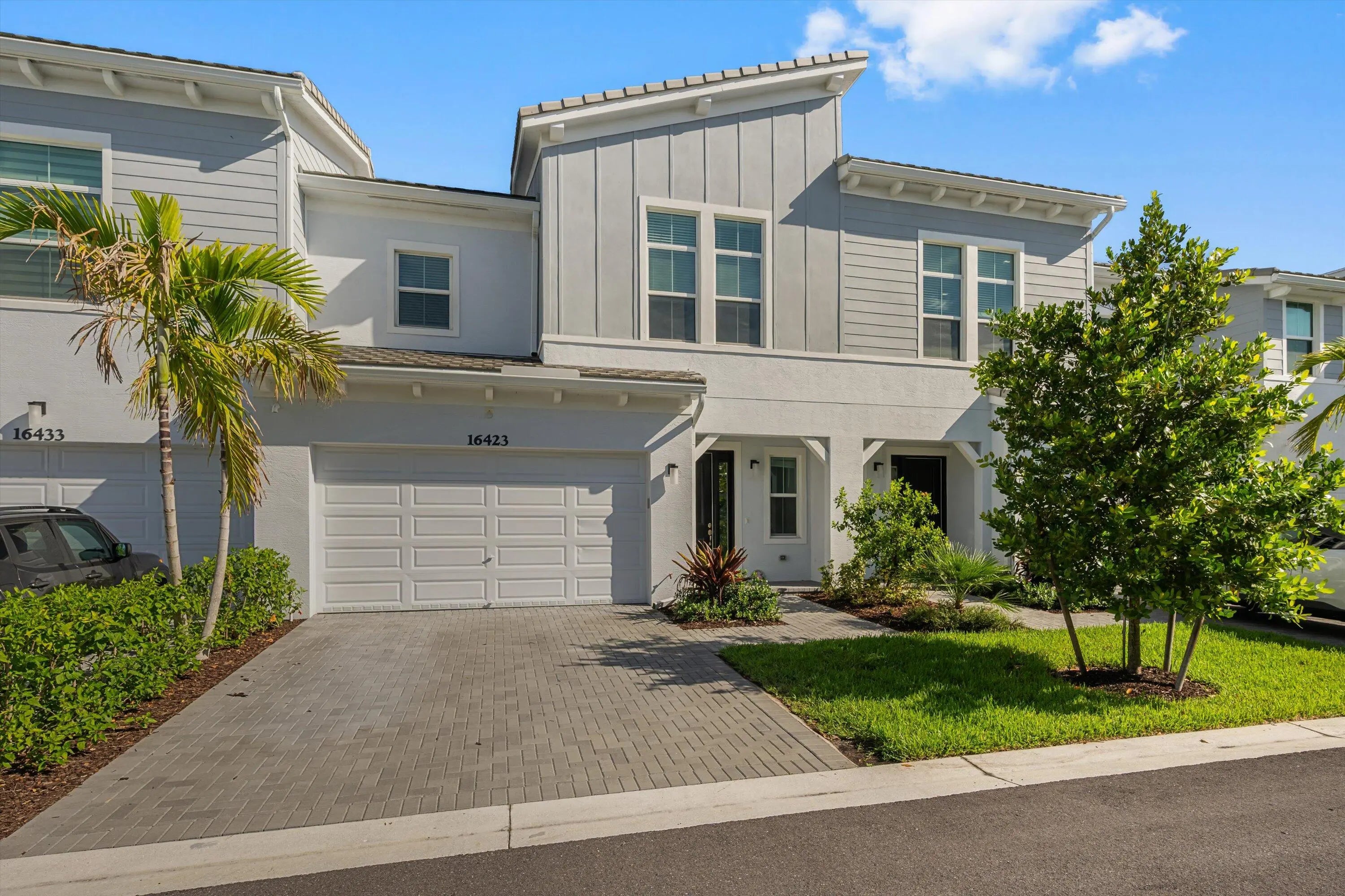 Welcome to the highly sought-after Biscayne model in The Crossings community in Westlake, FL! This spacious three-bedroom, two-and-a-half bathroom, two-story townhouse offers modern style and an inviting open layout. Step through the striking black front door into a bright first floor with tile flooring throughout and an expansive living room, a separate dining area, and abundant natural light. The chef's kitchen showcases rich brown shaker cabinets, granite countertops, stainless steel Whirlpool appliances, and a large island with ample storage—perfect for entertaining or family gatherings. A convenient powder bath is also located downstairs. Upstairs, laminate flooring continues through the hallway, stairs, and master suite, where elegant double doors lead into a generous bedroom with tray ceiling detail. The master bath features a tub and shower combination, dual sinks set opposite each other, plentiful storage, and matching brown cabinets with granite countertops. Two additional bedrooms offer comfortable space and cozy carpet, sharing a full bath with a tub and the same high-end finishes. A dedicated laundry room with Whirlpool appliances and coordinating cabinetry completes the second floor. Outside, enjoy a fenced patio with extended pavers and a covered lanai, perfect for relaxing or entertaining. A two-car garage adds convenience to this beautifully maintained home. Experience the best of Westlake living with Cresswind's exceptional amenities and vibrant neighborhood atmosphere!