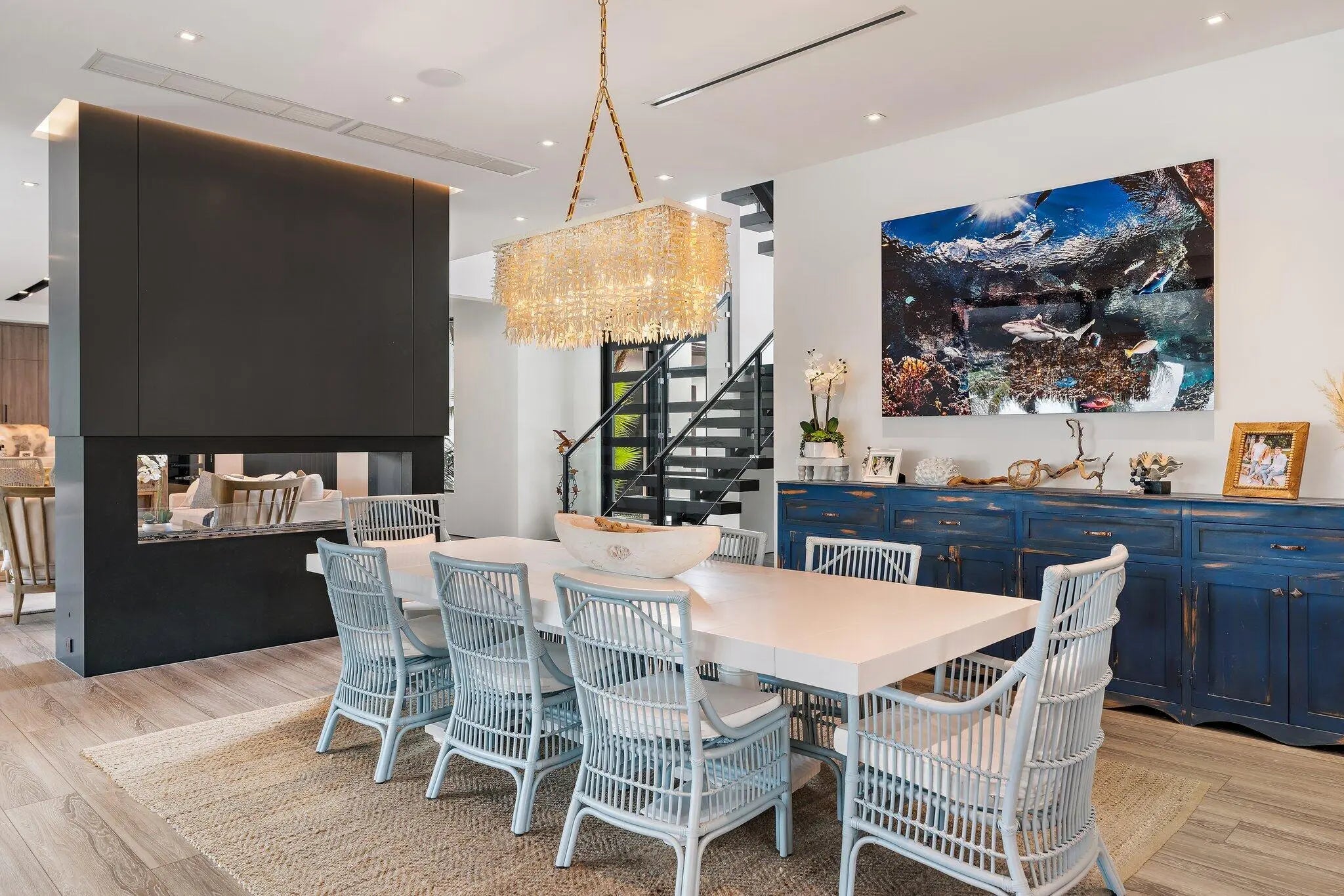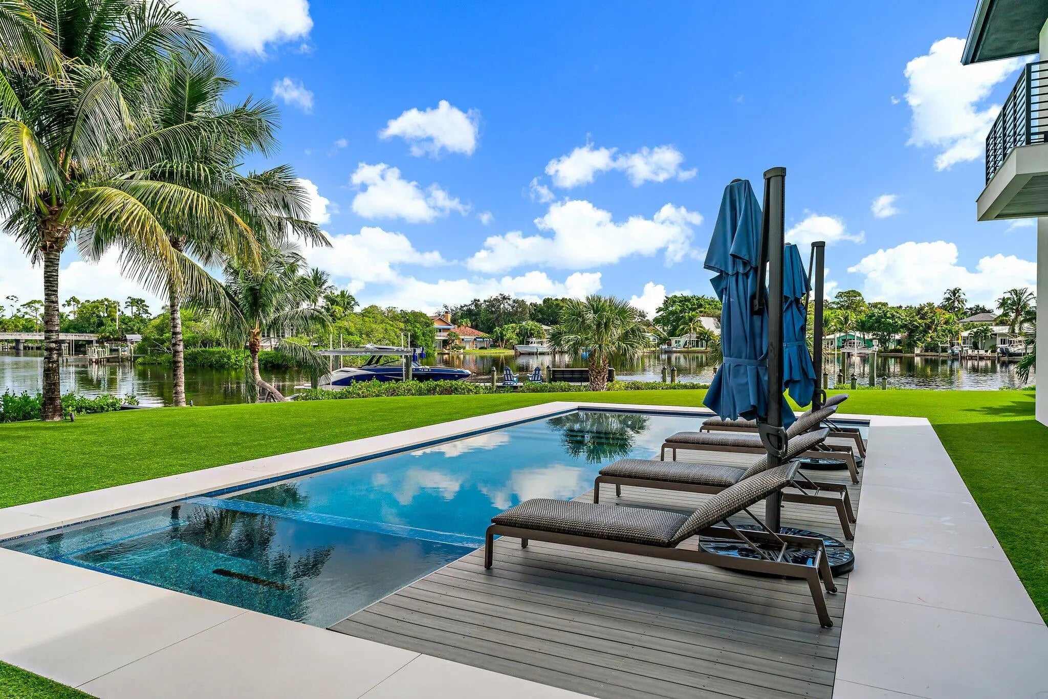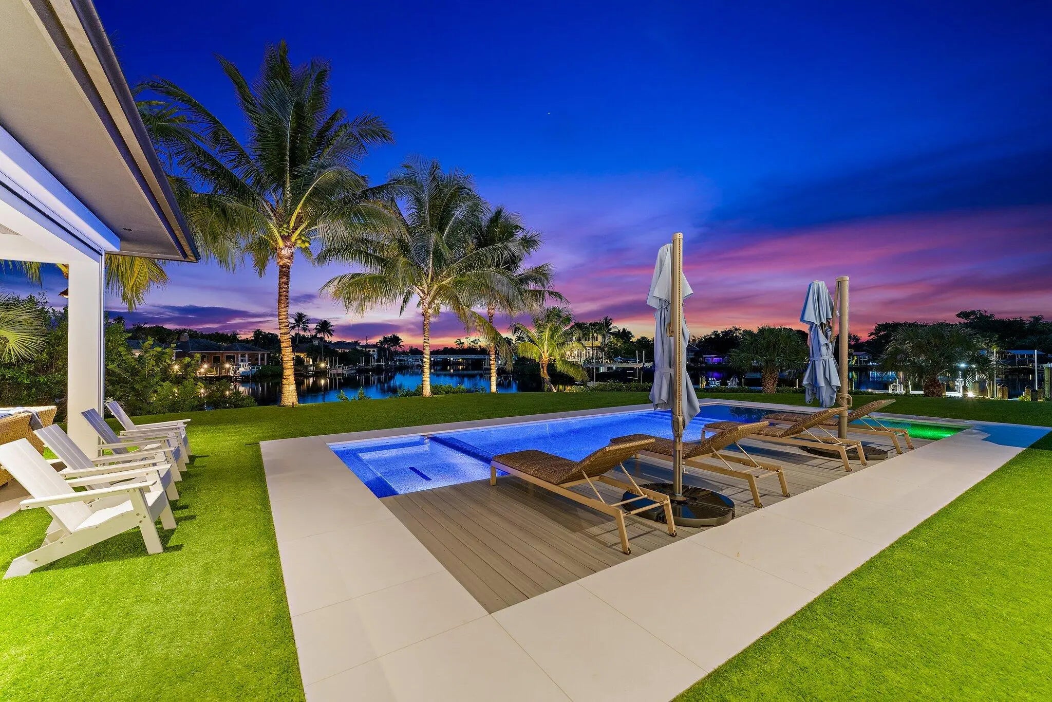 Located on a peninsula lot of 1.33 acres with 500 feet of deep waterfrontage on three sides with no fixed bridges, this truly is one of the finest waterfront properties in our area. Custom built in 2021 by Ocean Blue Custom Homes, this signature estate in the luxury, gated community - The Islands of Jupiter, meets the demands of the most sophisticated clients. Floor to ceiling walls of glass brings the outside in, offering a ''light and bright'' texture to a modern coastal interior palette. Views to the pool with spa, summer kitchen with bar, dock with two lifts, professional landscaping, and expansive backyard with endless artificial turf; all define a dreamlike setting for a family retreat. The current owner made the following additions/upgrades within the past 12 months: 24 KW generator, electric/hurricane screens, new pool resurfacing, under dock lights, all new light fixtures and ceiling fans, paint inside and out, garage storage cabinets, luxury flooring, new kitchen island counter top & back splash, bar top, primary bath counter top, and two sets of washers and dryers - one set for each floor. The primary suite and guesthouse are on the first floor, and three guest suites plus an expansive loft area and second laundry room occupy the second floor. Call today to view this amazing property that could be yours!