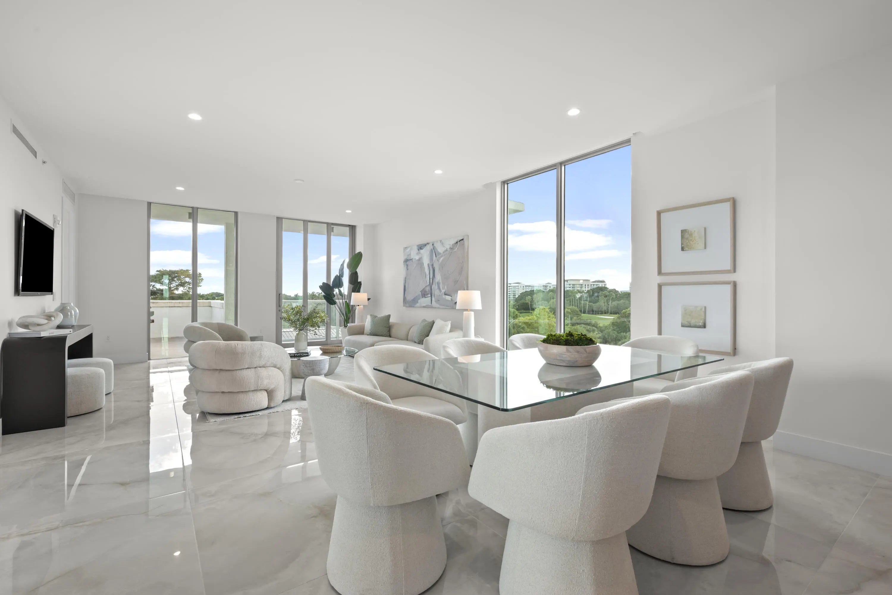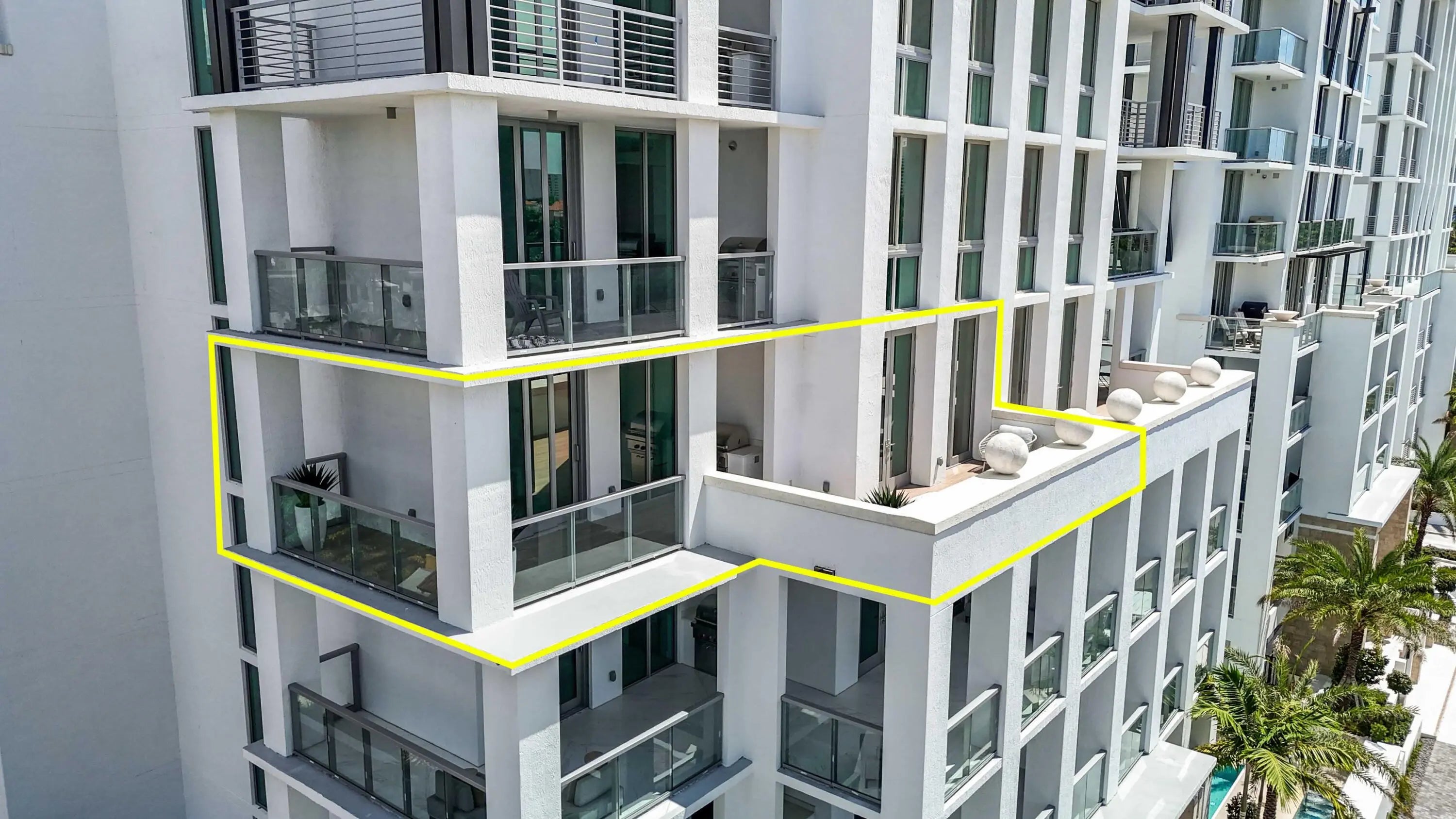 Welcome to your home in the sky! Royal Palm Residences represents the ultimate in luxurious living the heart of East Boca Raton. Unparalleled elegance and modern comforts can be found in this expansive customized corner residence featuring an open floor plan with 4 ensuite bedrooms, half bath and laundry room. The elevator opens directly into this sophisticated 5th-floor corner unit, offering southern, western, and northern views allowing you to savor the panoramic vistas from every angle. The chef's kitchen features sleek Italian cabinetry, Wolf and Subzero appliances, including a gas cooktop and wine refrigeration. The large island with seating is perfect for casual dining or entertaining guests. The kitchen is beautifully finished with elegant quartz countertops and a matching back splash. The spacious living room is a showstopper with two sets of glass doors that lead out to an enormous wrap around balcony. Here, you can grill on the outdoor Wolf gas summer kitchen or enjoy breathtaking views of the Boca Raton Resort and golf course. Indulge in the epitome of high-rise living in this spectacular home upgraded with Crestron system, TOTO toilets, porcelain flooring in every room and incredible building amenities and 2 parking spots. Close to exceptional restaurants, shops, markets and the beach this is the epitome of luxury in condominium living in East Boca Raton.