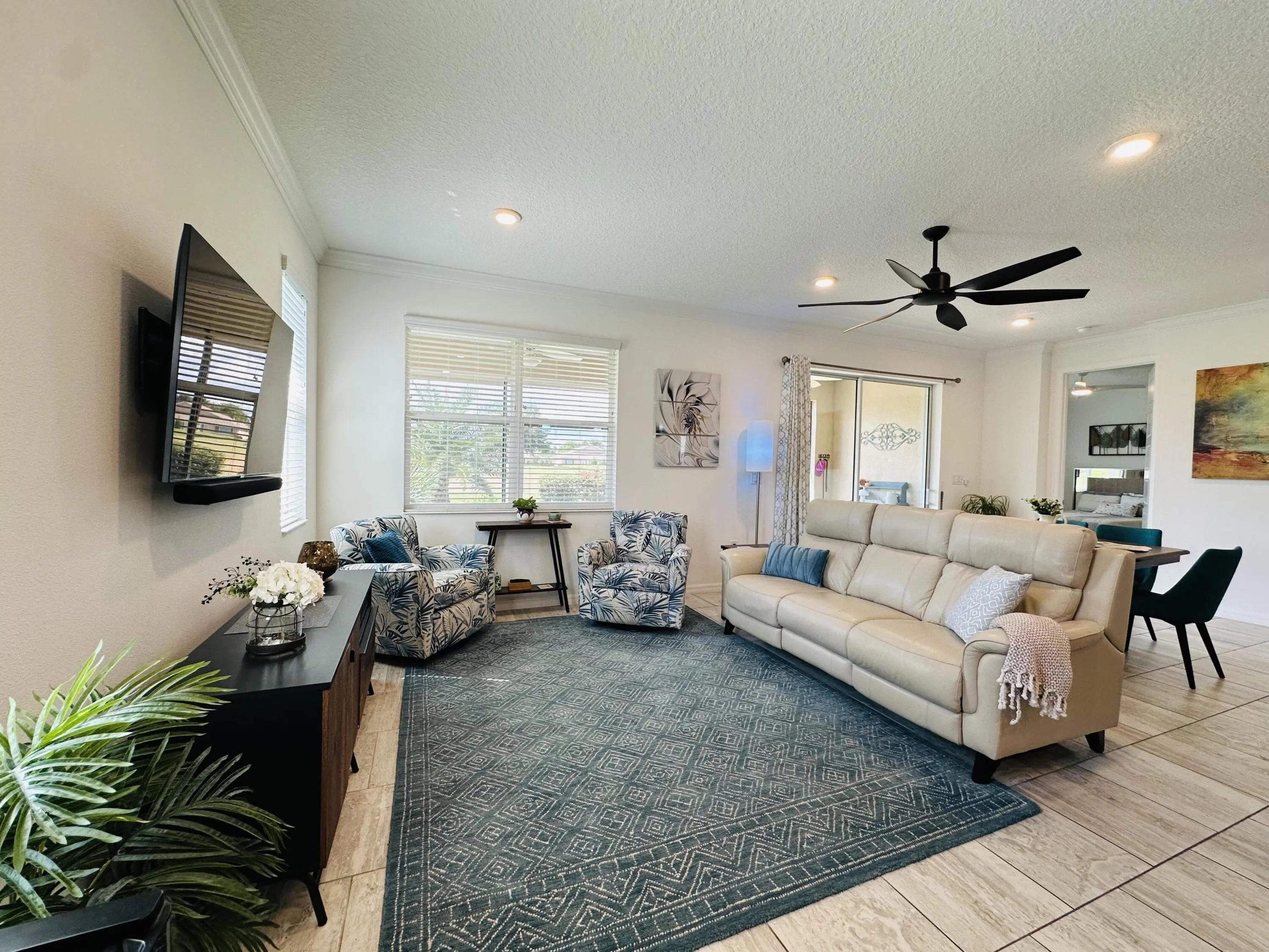 In real estate, Location, Location, Location! Spectacular Unobstructed GOLF COURSE VIEW! This beautiful & very bright Juliana model home is located on a Cul-De-Sac street and sits on a Premium Lot. The Great Room, Dining Area, Kitchen, Master Bedroom, Screened Porch, and Spacious Backyard have an Unobstructed Spectacular View of the Golf Course. Thousands of dollars spent on upgrades including Tile & Laminated Wood Flooring (NO CARPET), Kitchen with Huge Island (11.9 x 3.8), Wood Staggered Cabinets, Glass Backsplash, High End Gourmet Kitchen with Stainless Steel Appliances, GAS Range, Built-in Oven & Microwave, Blown Glass Pendant Lights above the Huge Kitchen Island, Quartz Countertops, GAS Heating, Master Bedroom has Ensuite Bathroom with Double Vanity Sink & Large Shower with Bench, FLEX Room has Double Glass French Doors and includes a Murphy Bed/Couch, Inside Laundry Room with Washer & GAS Dryer, Entry Glass Door with Side Lite, Crown Molding, $3,000 Air conditioning added to the Garage, GAS Water Heater, $2,000 Shades in the Lanai, Blinds and Ceiling Fans throughout, and Lots of Curb Appeal & Landscaping / Garden surround this property - front Stone Wall & back Stone Patio, Perennials Shrubs, Flowers, Palm Trees... You must see this home! The HOA Fee includes Lawn care, Basic Cable, Roof Repairs and Exterior Painting. On Top of the World "OTOW" is a Leader in the Retirement Community. It is Pet Friendly, and Provides a Magnitude of Recreational Activities & Amenities including Gated Community, Clubhouses, 3 Golf Courses, Driving Range, Practice Facility & Pro Shop, Restaurants with Full Service Bars, Recreation & Fitness Centers, Indoor & Outdoor Swimming Pools, Jacuzzi, Sauna, Steam Room, Live Entertainment, Dancing, "Doggie" Happy Hour, Tennis, Basketball & Pickleball Courts, Softball Field, Private Flying Field w/RC Planes, Remote-Control Airplane Field & Car Track, RV Parking, Bus (Courtesy), Archery Club, Billiard Room with Tournament Pool Tables, Horseshoe, Miniature Golf, Arcade, Hobby Building, Art Studios, Wood Working Shop, Card Rooms, Library, Education Center, Arbor Club, Ballrooms & Meeting Rooms Available for Rental at No Cost to Residents. You will have access to approximately 200 Organized Clubs and convenient proximity to the World Equestrian Center, Hospitals, Medical Professionals, Entertainment, Theaters, and Downtown Ocala - You will stay Busy & Socially Active. Enjoy Golf Cart Accessibility to Restaurants, Entertainment, Grocery Stores, Shopping... You can take the Community's Courtesy Bus. Ocala/Marion County is officially named the "Horse Capital of the World®", a testament to the County's unique involvement in all things equestrian and its record of producing some of the finest champions. *** INVESTORS: There is No wait to Lease after Closing. Can lease 6 months and one week Furnished or one (1) year lease Unfurnished.