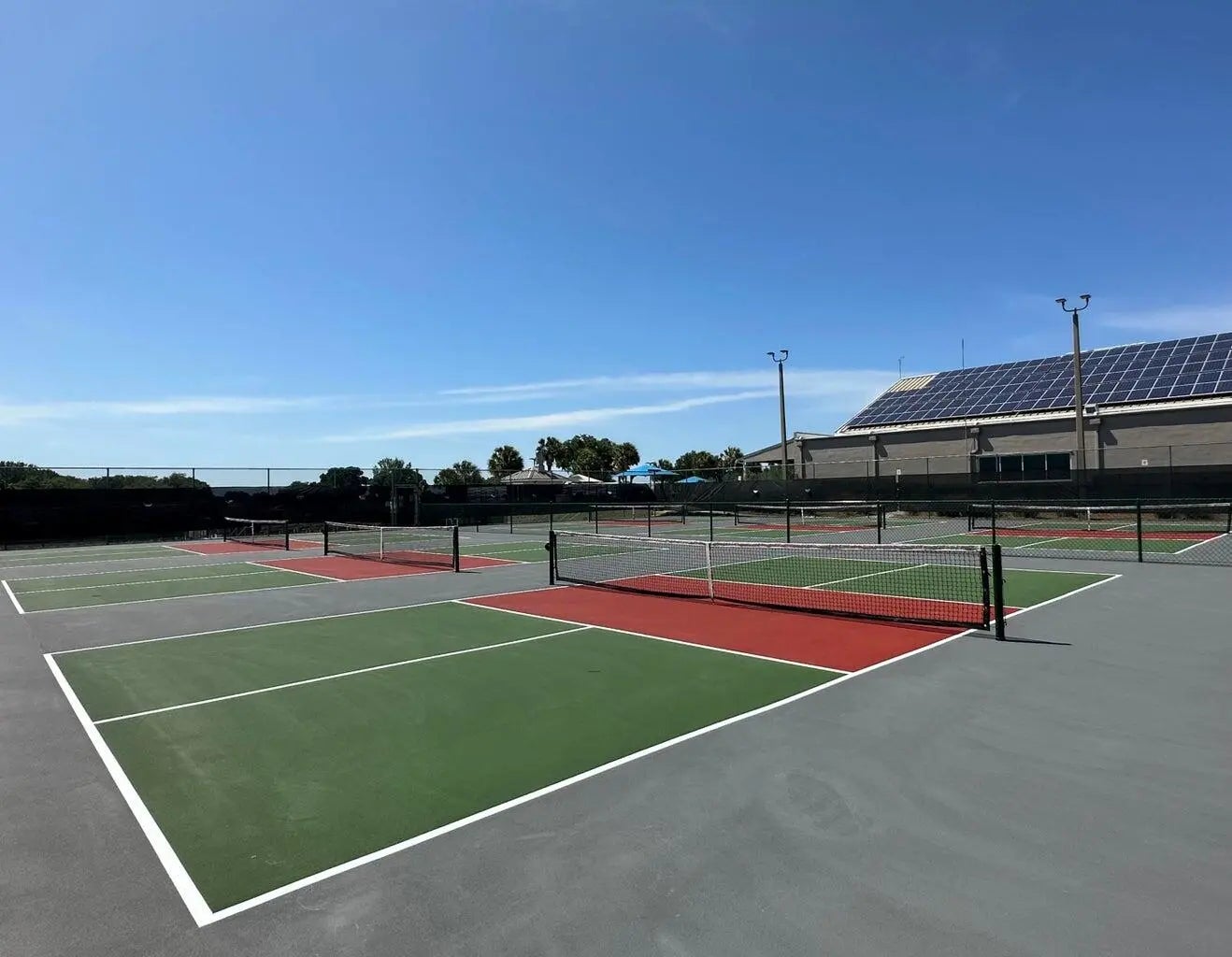 Basketball Court, Billiard Room, Clubhouse, Fitness Center, Golf Course, Game Room, Indoor Pool, Pool, Sauna, Shuffleboard Court, Tennis Court(s), Baseball/Softball Field, Bocce Ball, Cafe/Restaurant, Community Room, Pickleball Court(s), Street Lights