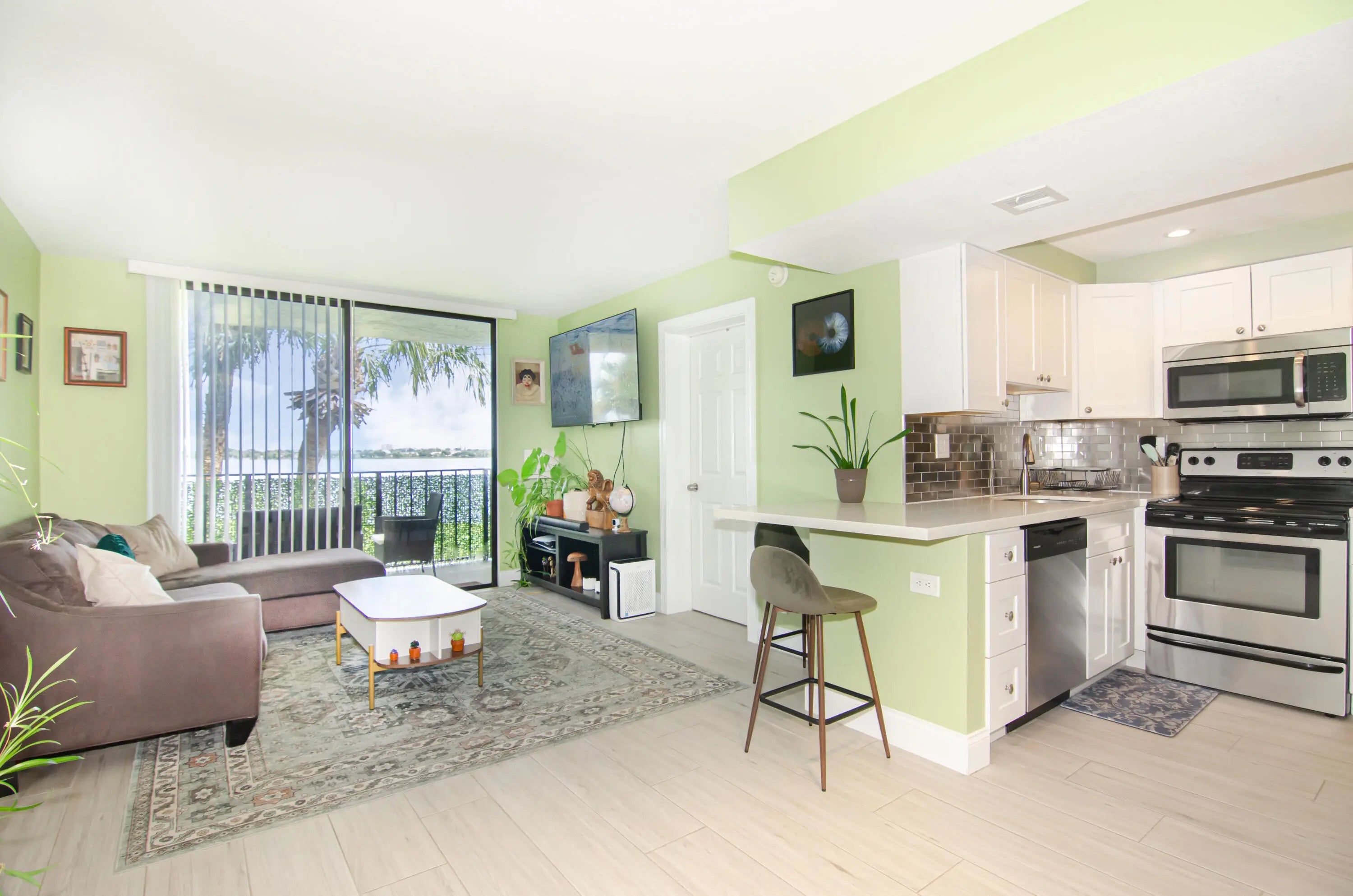 This property offers a truly remarkable waterfront view, providing residents with a tranquil and scenic environment. The unique setting makes it a hidden gem, perfectly tucked away while still being conveniently located near a variety of attractions and amenities. The property features convenient access to local amenities, including a walking and bike path that leads directly to City Place. It is also in close proximity to the Outlet Mall, as well as numerous shopping and dining options, ensuring that everything you need is just moments away. The recently updated unit boasts a bright and spacious layout, which includes two bedrooms and two bathrooms. Modern tile floors, newer appliances, and updated kitchen and bathrooms enhance both comfort and functionality.