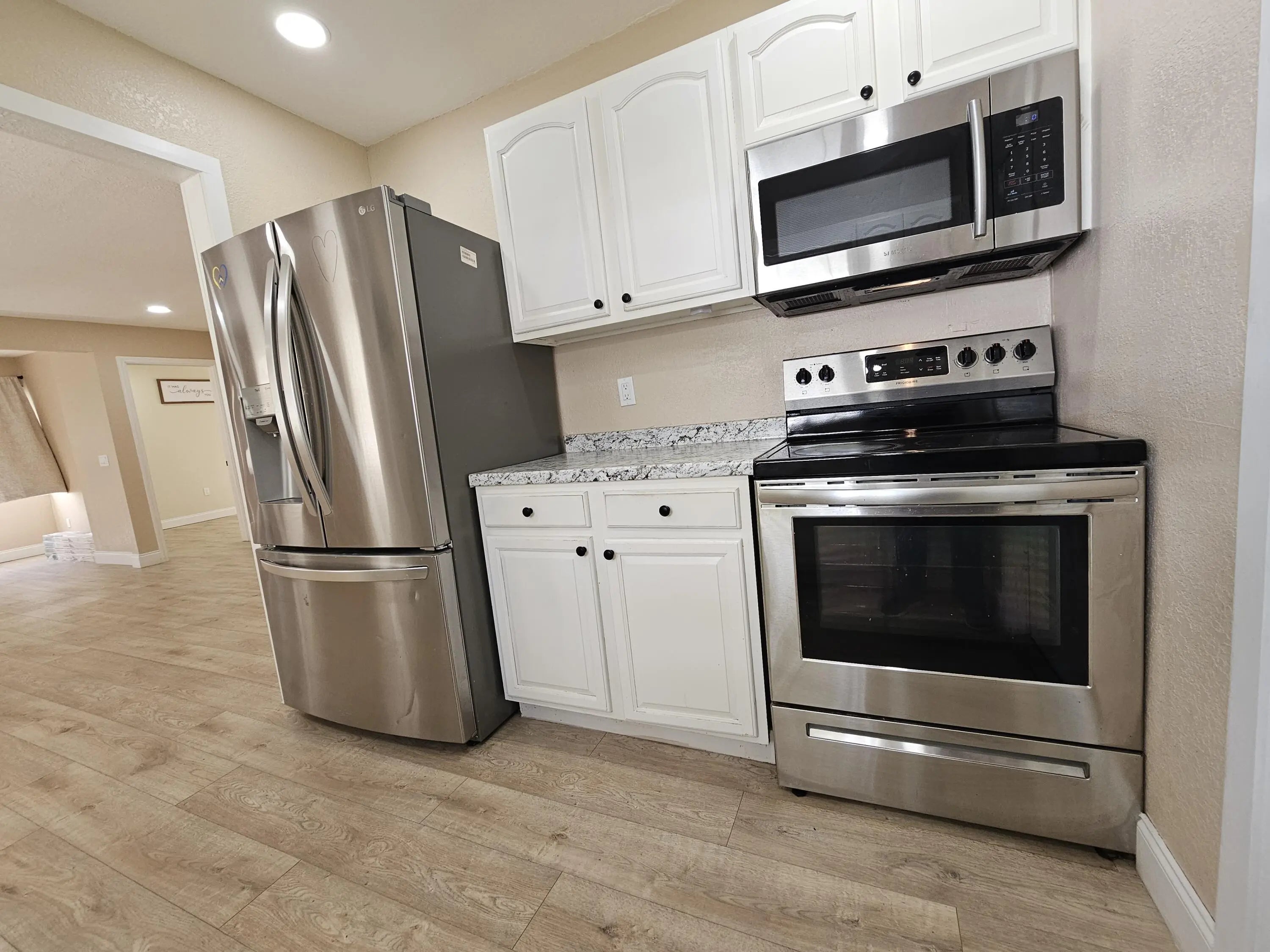Charming 3Bed~1.5Bath Home-Move-In Ready! Welcome to this beautifully updated home featuring a split floor ln with plenty moderns upgrade. Enjoy peace of mind with no HOA and the convenience of city water and sewer. Renovated kitchen and bathrooms. Freshly painted inside & out. New SS appliances plus wine mini fridge. 2024 HVAC. Partial electrical redone(2024), partial plumbing(2022). Underneath wood partially replaced for added durability. Includes: Generator plug and mini split unit. Spacious patio for entertaining and pretty yard, partially fenced for privacy. Move-In -Ready!