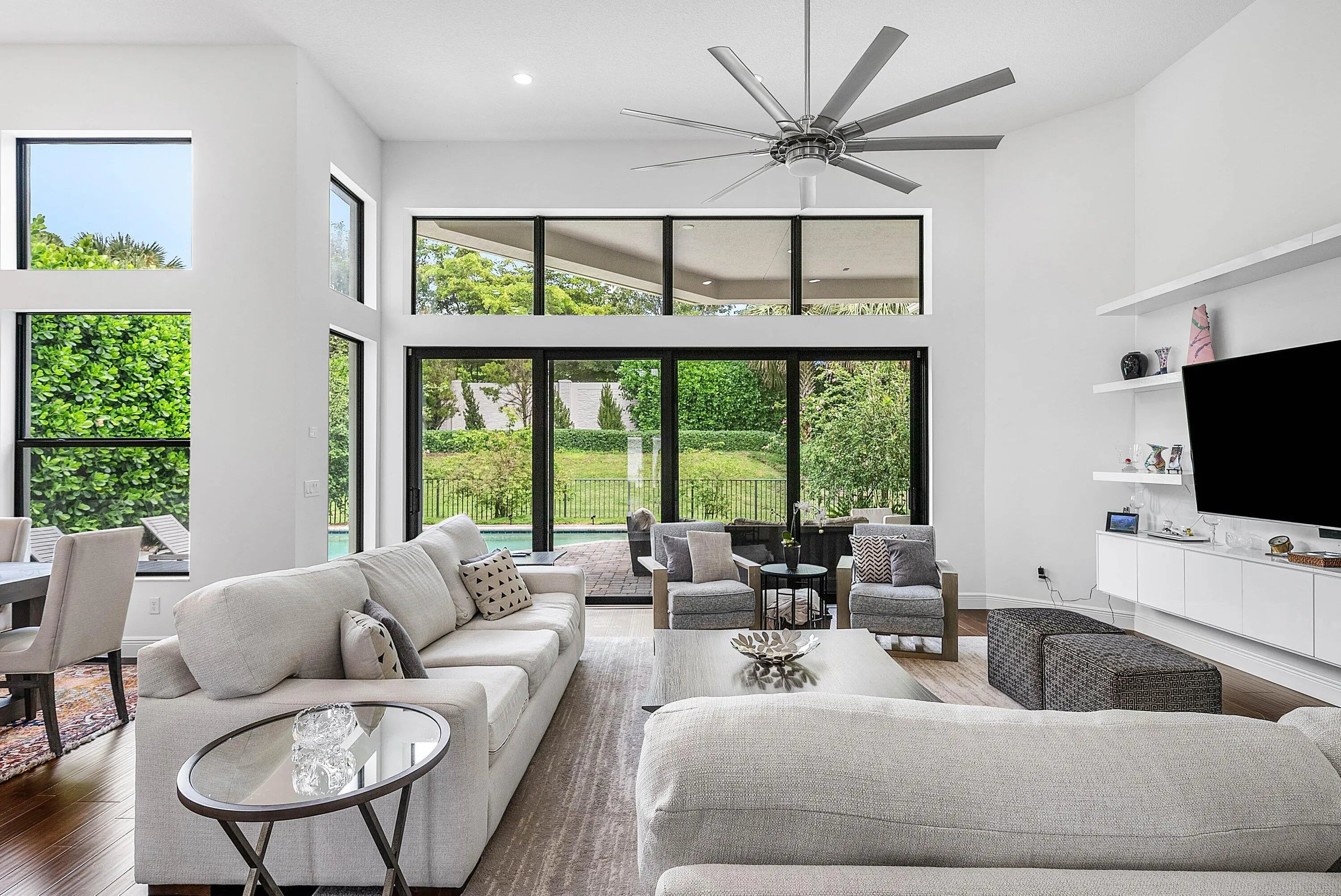 Royal Palm Polo is a prestigious, private gated luxury estate home community in Boca Raton, offering stunning residences and world-class amenities. This Callahan model is especially desirable with its vaulted 23-foot ceilings and open-air design, enhanced by expansive windows that flood the home with natural light. Preferred private lot with private pool. The community features include: six Har-Tru tennis courts, a resort-style pool and spa, a state-of-the-art fitness center, and outdoor BBQ lounge areas. With a private backyard pool and a prime location near beaches, top schools, upscale shopping, and dining, this home combines elegance, comfort, and lifestyle.
