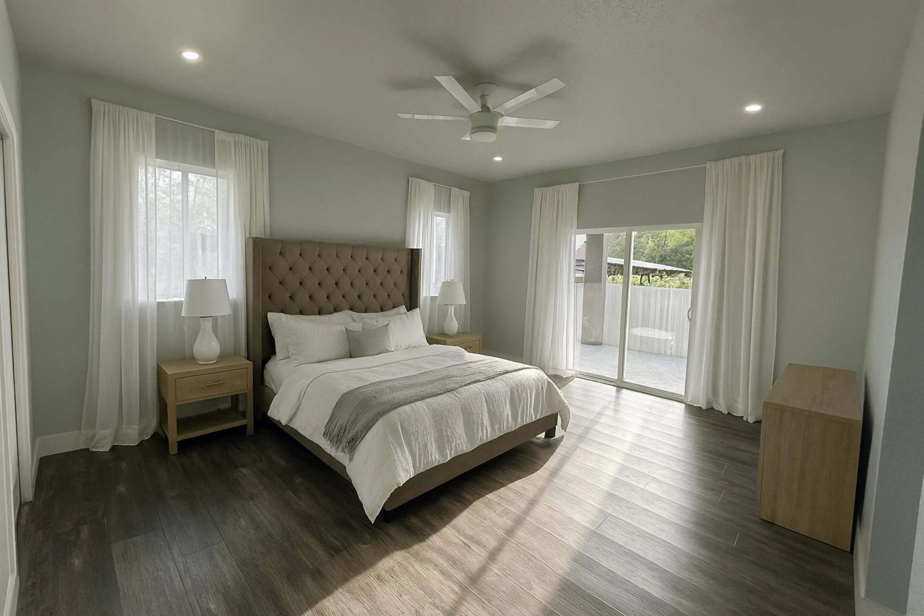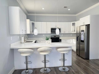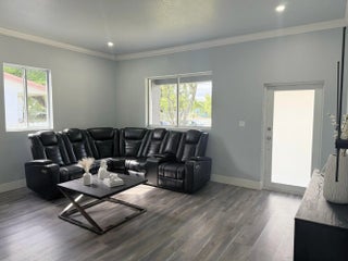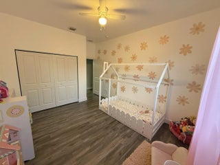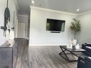 Discover this stunning 3-bedroom, 2-bath home perfectly blending comfort, style, and functionality! Featuring soaring 10-ft ceilings with crown molding, elegant vinyl and tile flooring, and spacious living and family rooms. The modern kitchen shines with quartz countertops, stainless steel appliances, and a smart refrigerator. The primary suite offers a walk-in closet, dual sinks, and sliding impact glass doors leading to a covered patio, perfect for relaxing. Enjoy peace of mind with impact windows and doors, security cameras, and a two-car garage with remote and keypad entry. Complete with front and rear porches and an automatic sprinkler system, this home is truly move-in ready!