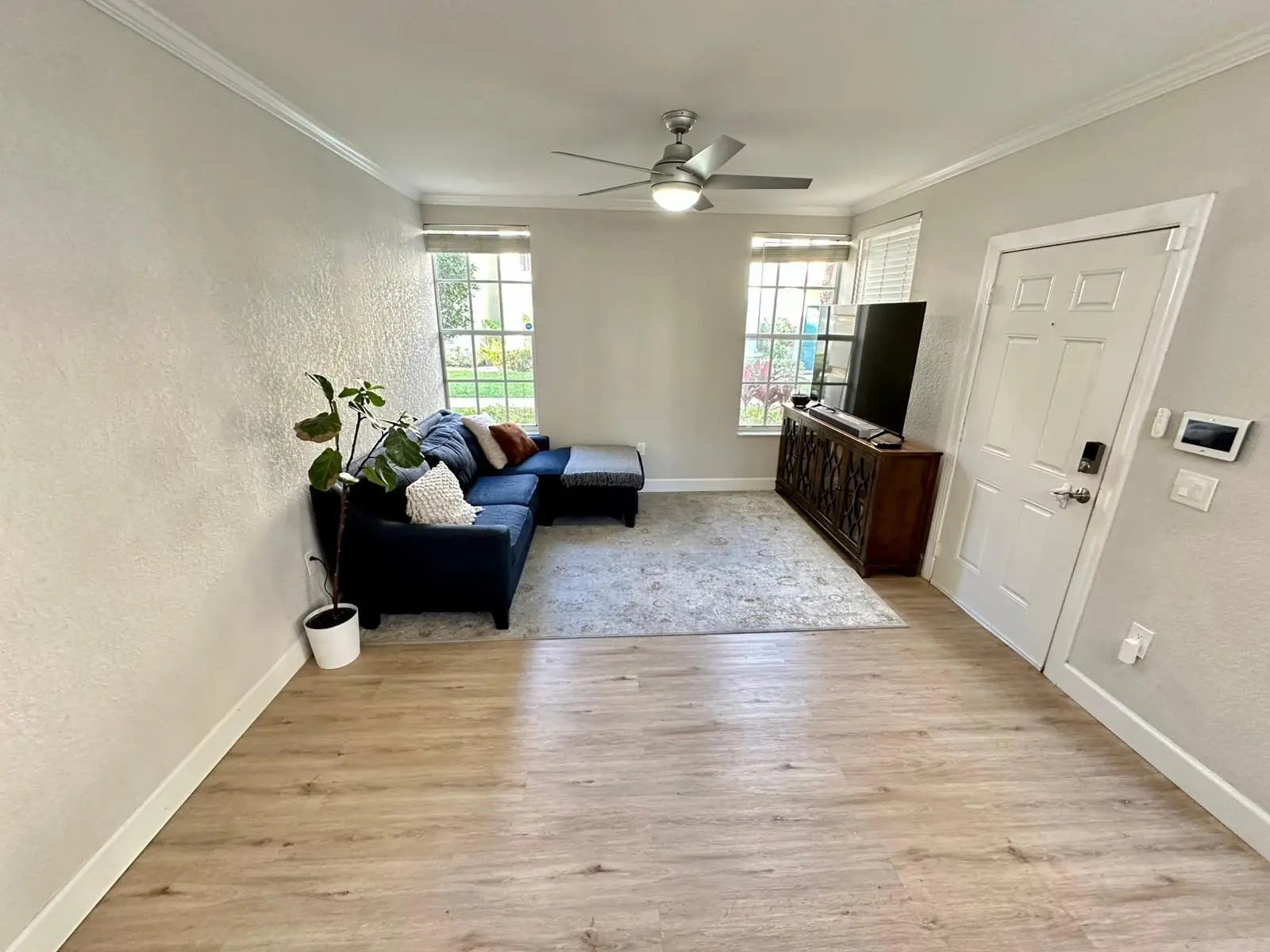 Step into this charming bright & airy corner unit with 3-bedroom, 2-bathroom home in The Residences of Belmont in Boynton! With over 1,600 Sq ft of thoughtfully designed living space, this home offers the perfect balance of comfort and modern living or anyone seeking their own oasis. The spacious primary suite features a private en-suite bath completely remodeled with beautiful finishes and ample closet space, while the two additional bedrooms are perfect for guests, or a home office. The heart of the home includes features like granite countertops, stainless steel appliances, and a breakfast peninsula, ideal for both cooking and entertaining. The open floor plan seamlessly connects the living room, dining area, and kitchen, creating a welcoming atmosphere filled with natural light. This property also features two-car garage and plenty of storage. Conveniently located near schools, parks, shopping centers, restaurants, and major highways, this home puts everything you need just minutes away. This move-in-ready gem combines functionality with style, making it the perfect place to call home. The Residences of Belmont Place is in a great location near restaurants, grocery stores, 95, and the new Mainstreet at Boynton. The gated community offers a nice pool and fitness.