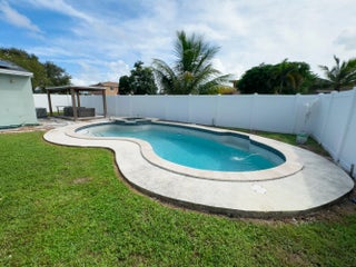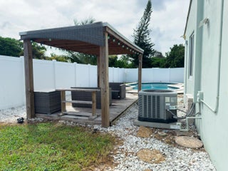 Upgraded Pool Home with Solar Panels & New Roof (09/2025)! Modern concrete block home featuring high-impact windows, remodeled kitchen, and updated bathrooms with step-in showers. Freshly painted inside and out with new electrical systems. Brand new roof and solar panels offer energy efficiency and lower utility costs. Oversized lot with space for trucks, trailers, boats, or RVs. Fenced backyard perfect for entertaining includes a sparkling pool and new gazebo. One bedroom serves as an efficiency suite with a private entrance and a kitchenette, ideal for guests, in-laws, or extra income. Minutes to beaches, shopping, and highways!
