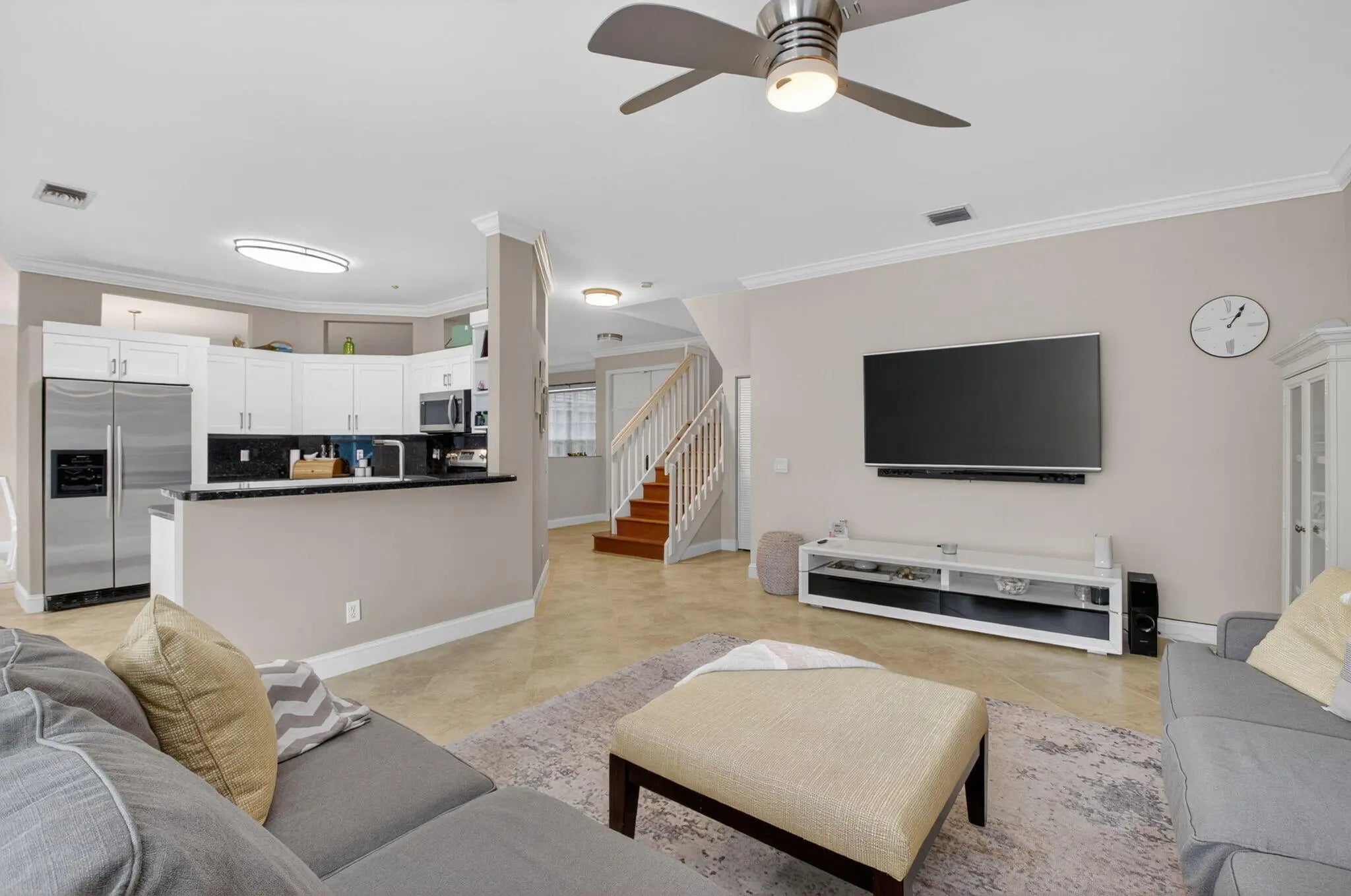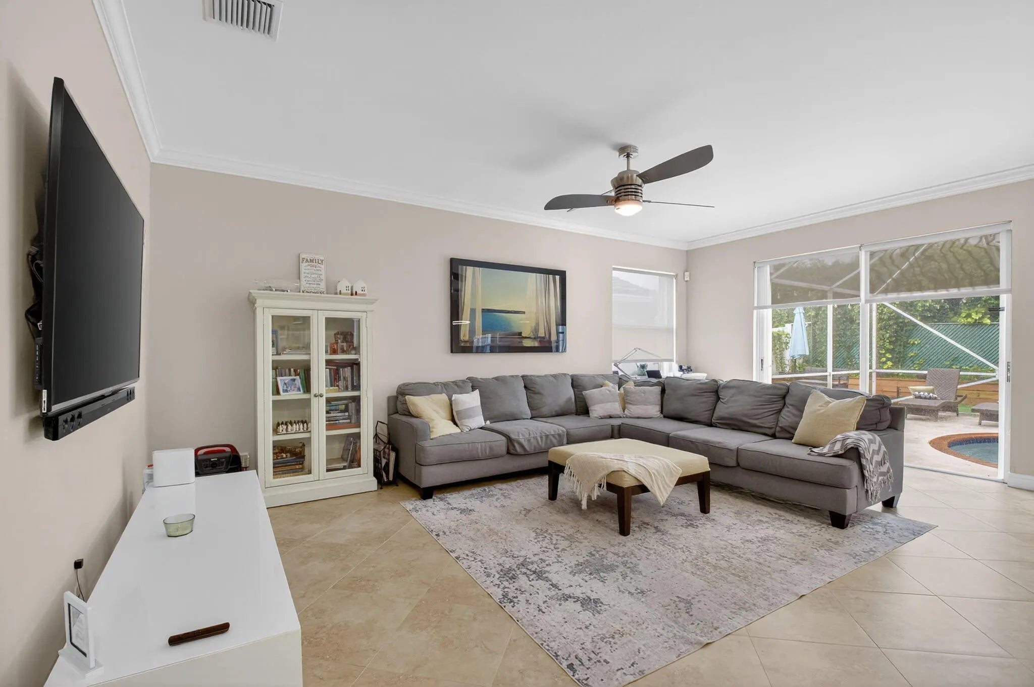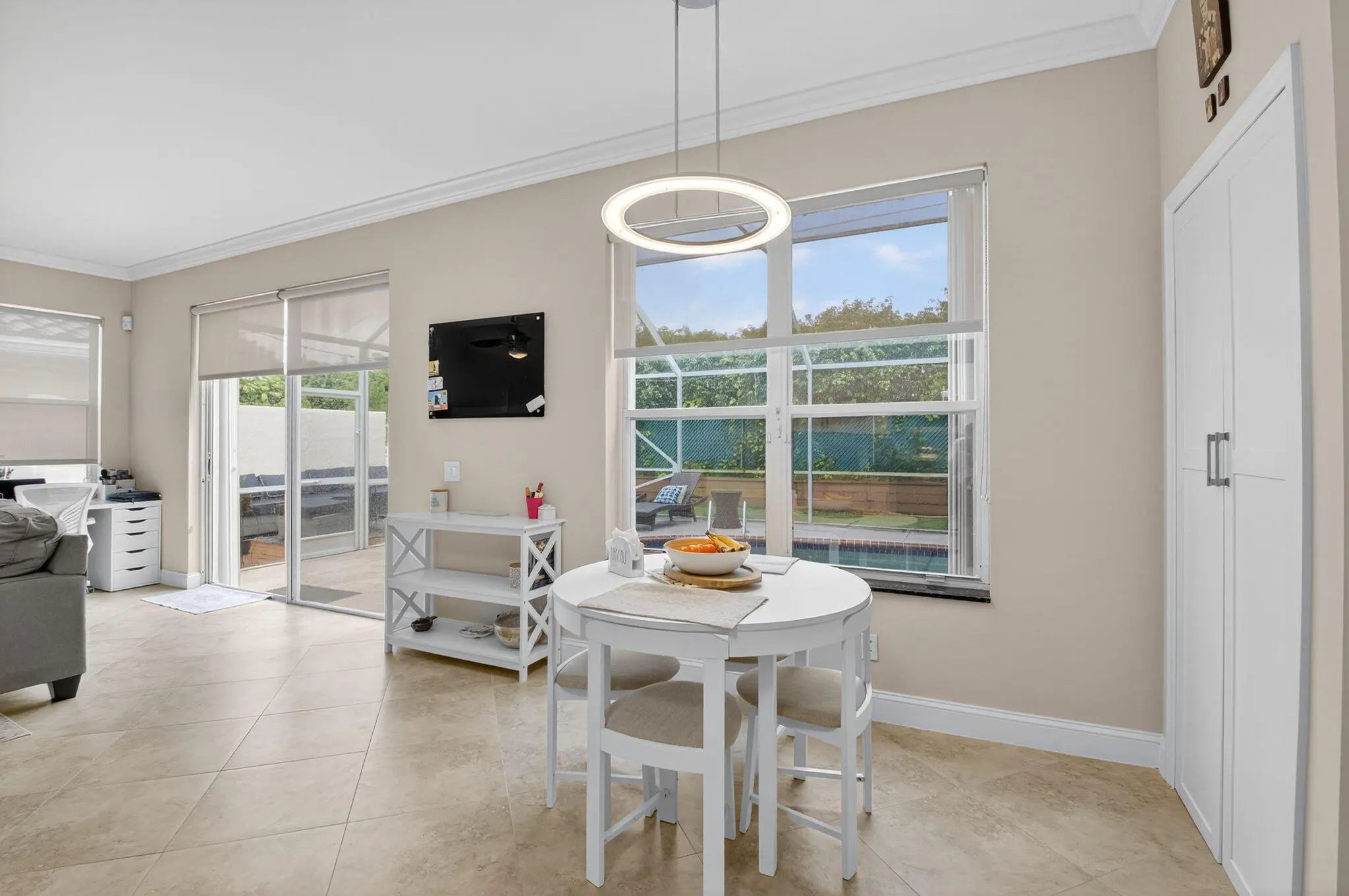 Brand-new roof! This beautiful 4-bedroom pool home will be freshly painted. Located in a gated community with low HOA fees and near top-rated schools. The home features all-new appliances, newly installed kitchen cabinets, granite countertops, stainless steel appliances, and a built-in pantry. New A/C, new water heater, and a whole-house water filtration system provide added comfort and efficiency. Enjoy 20' porcelain tile floors, crown molding, and smooth ceilings throughout. The spacious primary suite offers walk-in closets, while the upstairs includes engineered wood floors and upgraded bedroom flooring. Relax in the screened-in pool with a lush, fenced yard. Accordion hurricane shutters, paved driveway, and walkway. Move-in ready!A/C 2024, water heater 2021, kitchen cabinets 202