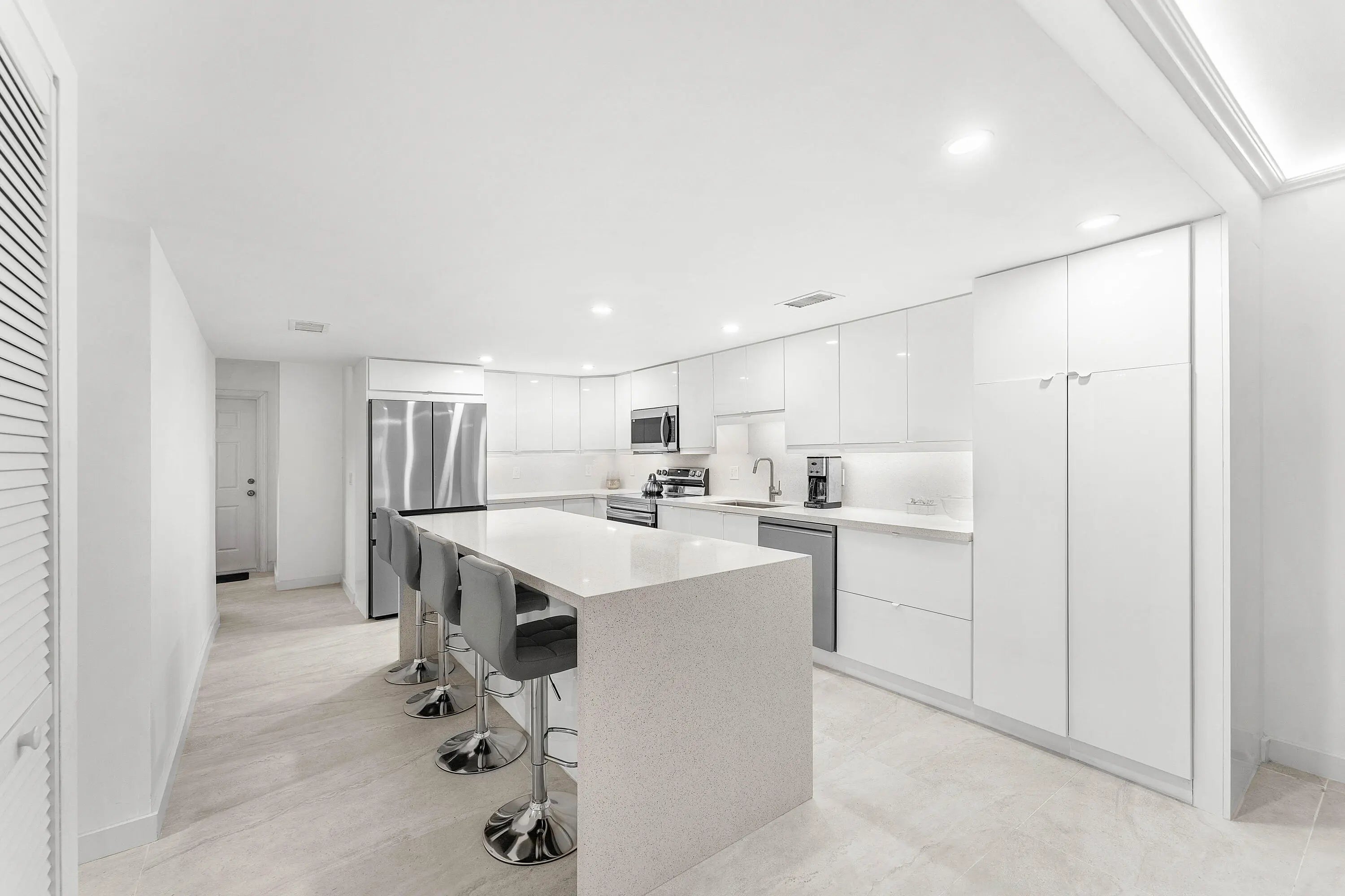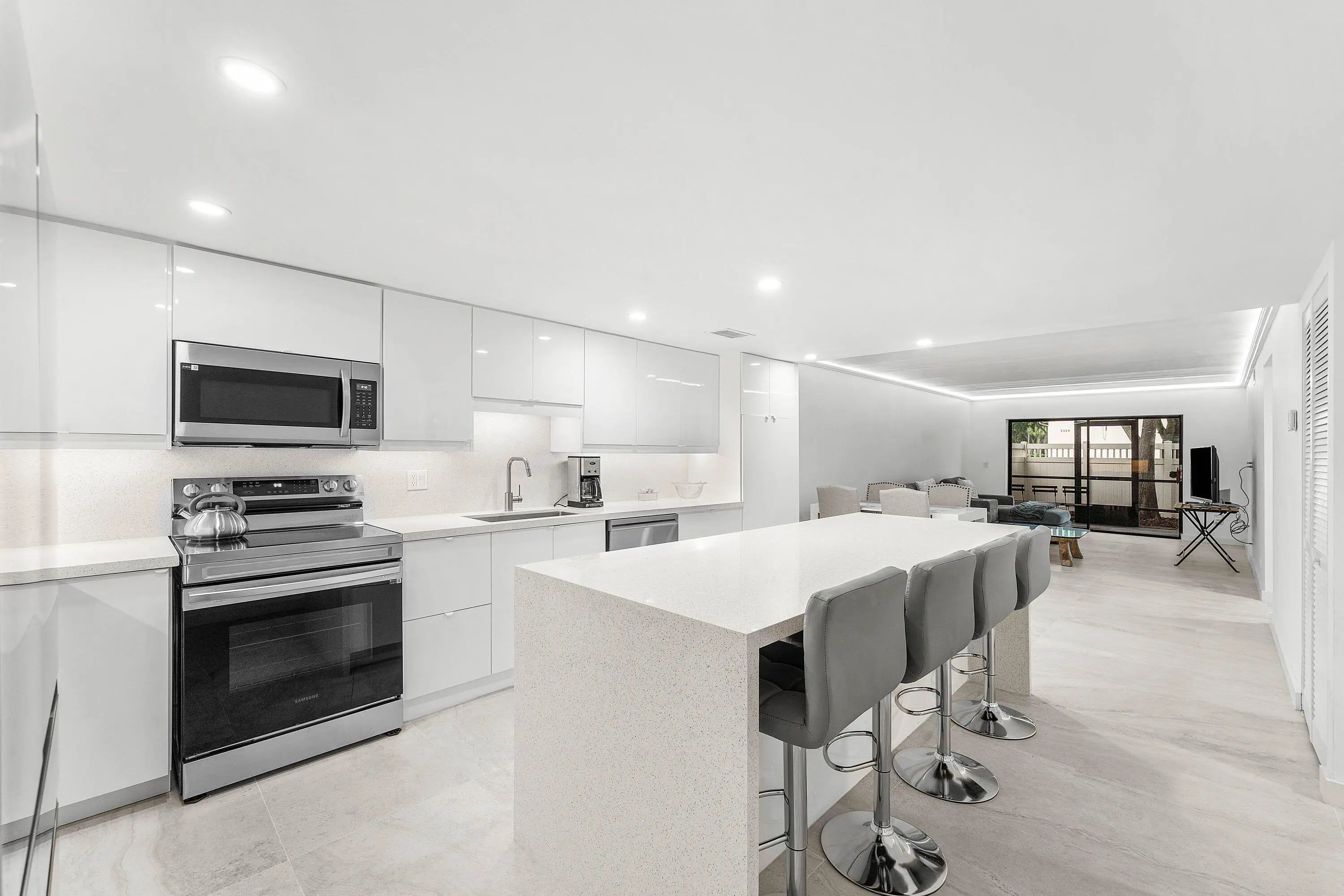 Must see! Stunning 2-bedroom, 2-bath condo in a resort-style 55+ community. This fully upgraded home features a brand-new kitchen with a huge quartz island, stainless steel appliances, new A/C, washer and dryer, upgraded closets throughout, and new furniture including a Murphy bed—over $50K in upgrades! Enjoy your private outdoor space with a brand-new patio fence. Community amenities include a pool, fitness center, tennis courts, theatre, and a full calendar of activities. Move-in ready and beautifully furnished—just bring your toothbrush!