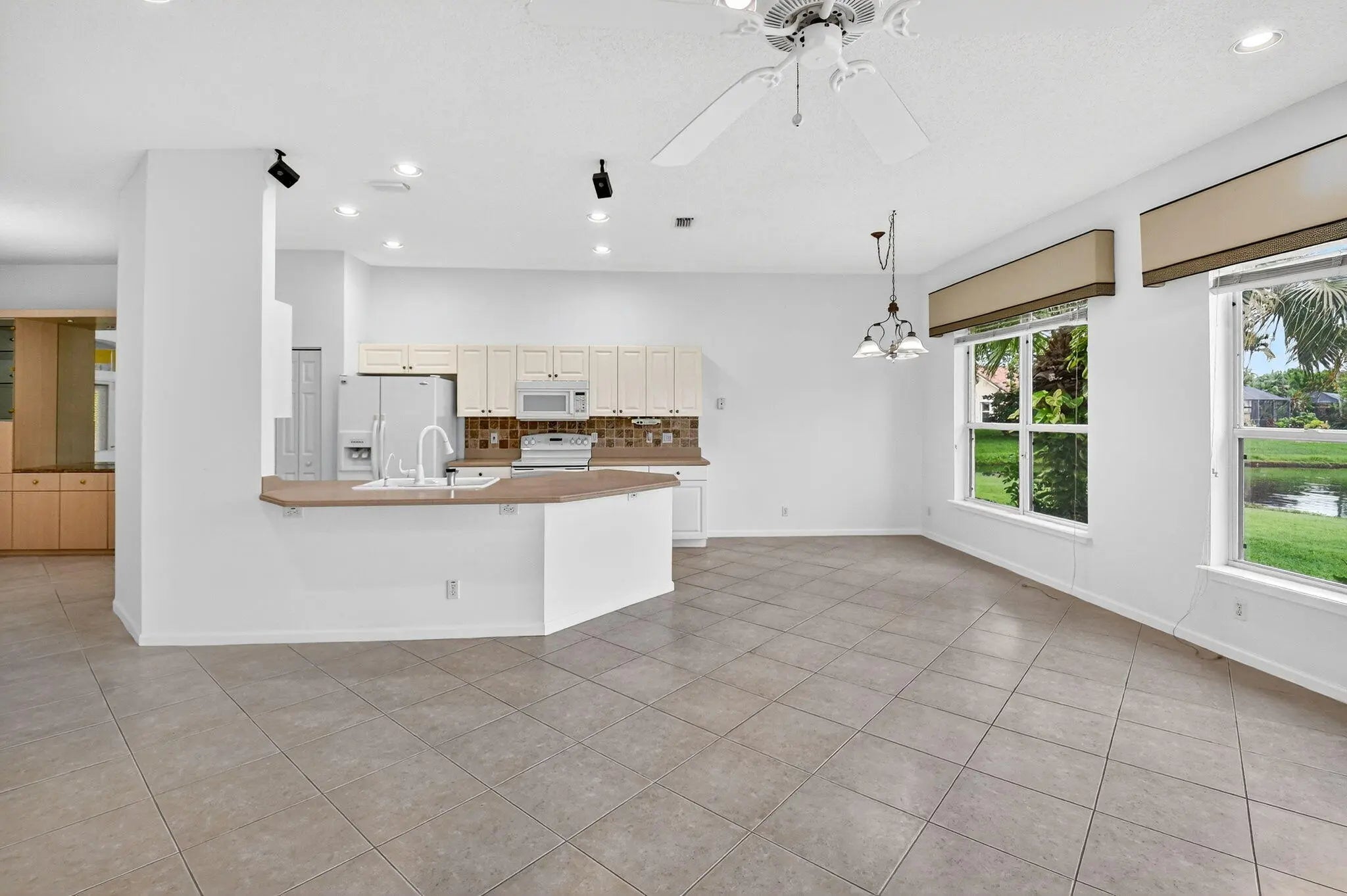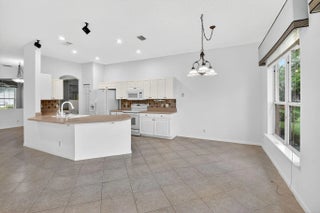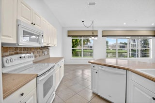Experience luxurious Aberdeen country club living in this beautifully updated 2-bedroom + den, 2-bath villa with a 2-car garage. Enjoy breathtaking lake views and the view of the 14th tee of the golf course from your screened-in patio, perfect for relaxing or entertaining. Tastefully updated bathrooms. Spacious living areas, an abundance of natural light and pet friendly policy makes it an ideal home. Tile roof was done in 2014, newer a/c and water heater. Located on a serene lake within a premier country club offering ( mandatory membership) world-class amenities—golf, tennis, fitness, dining, and more. This is Florida living at its finest!