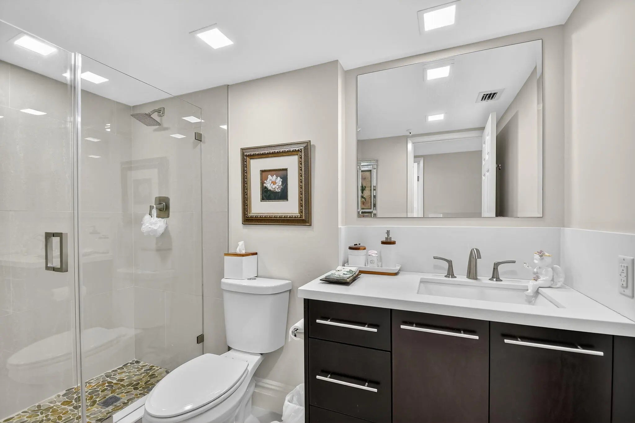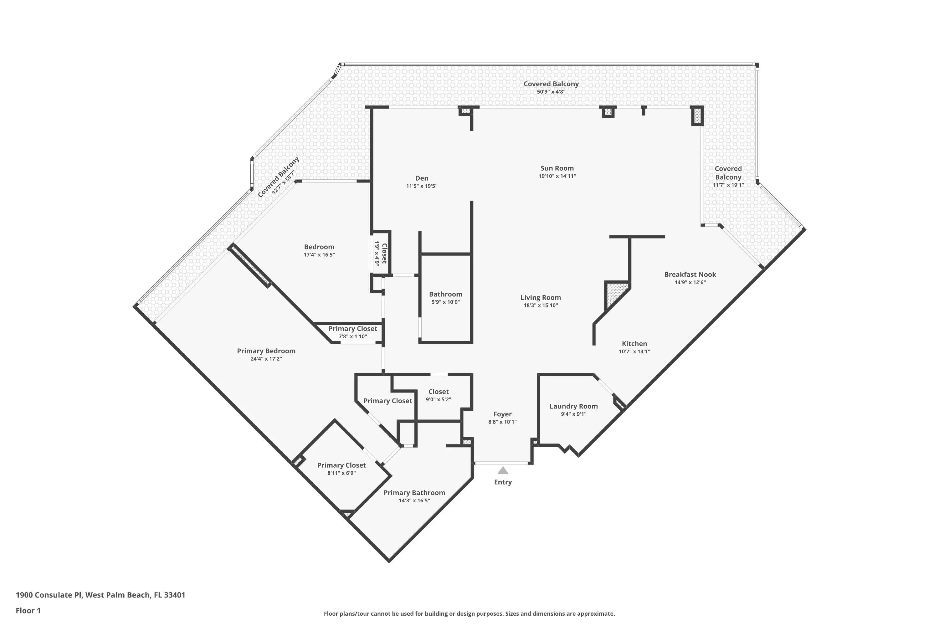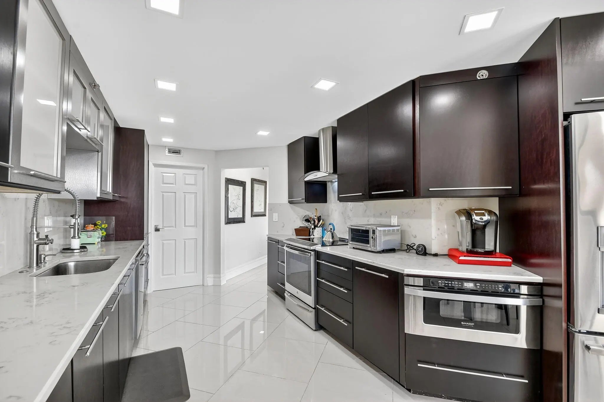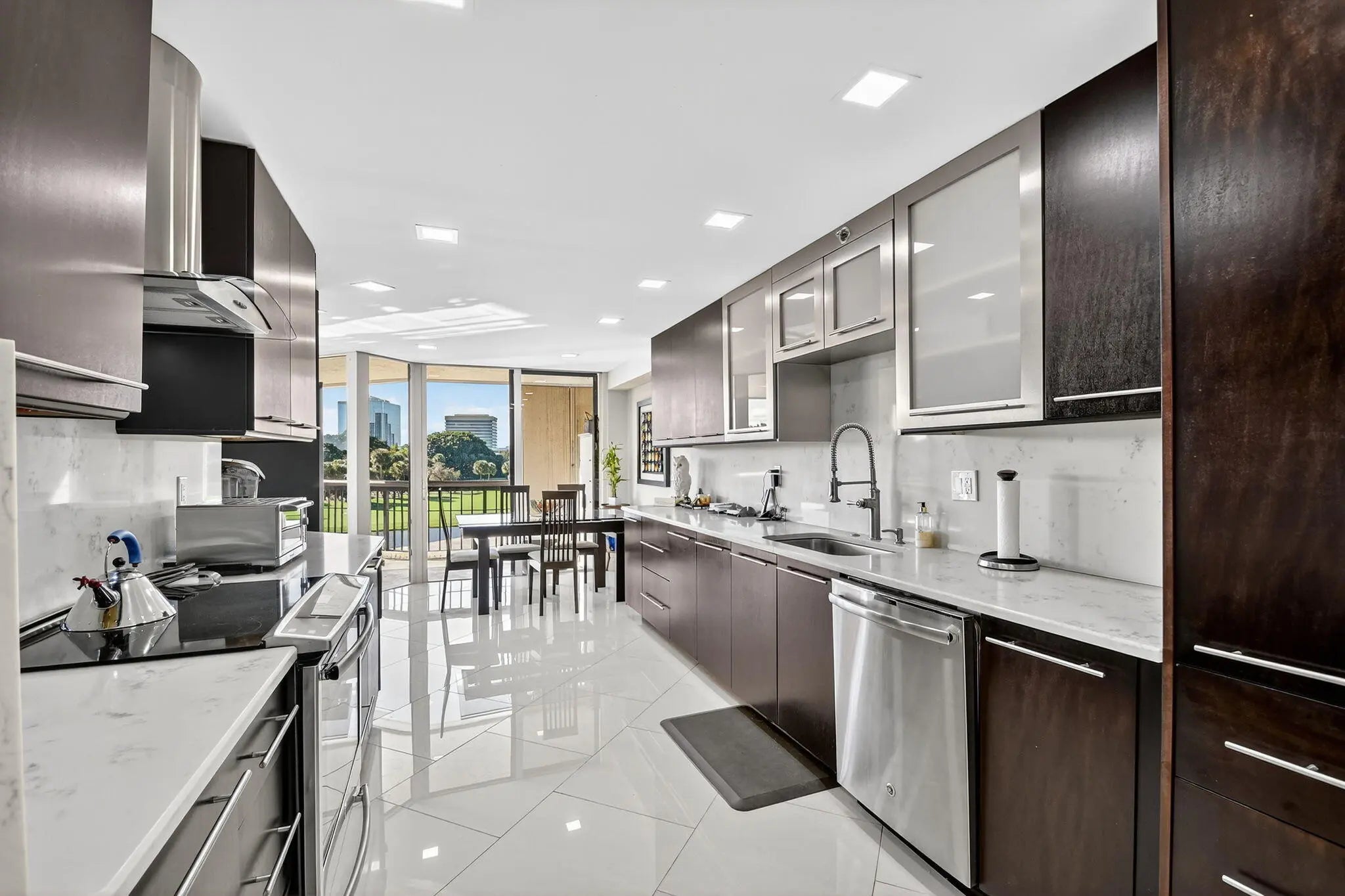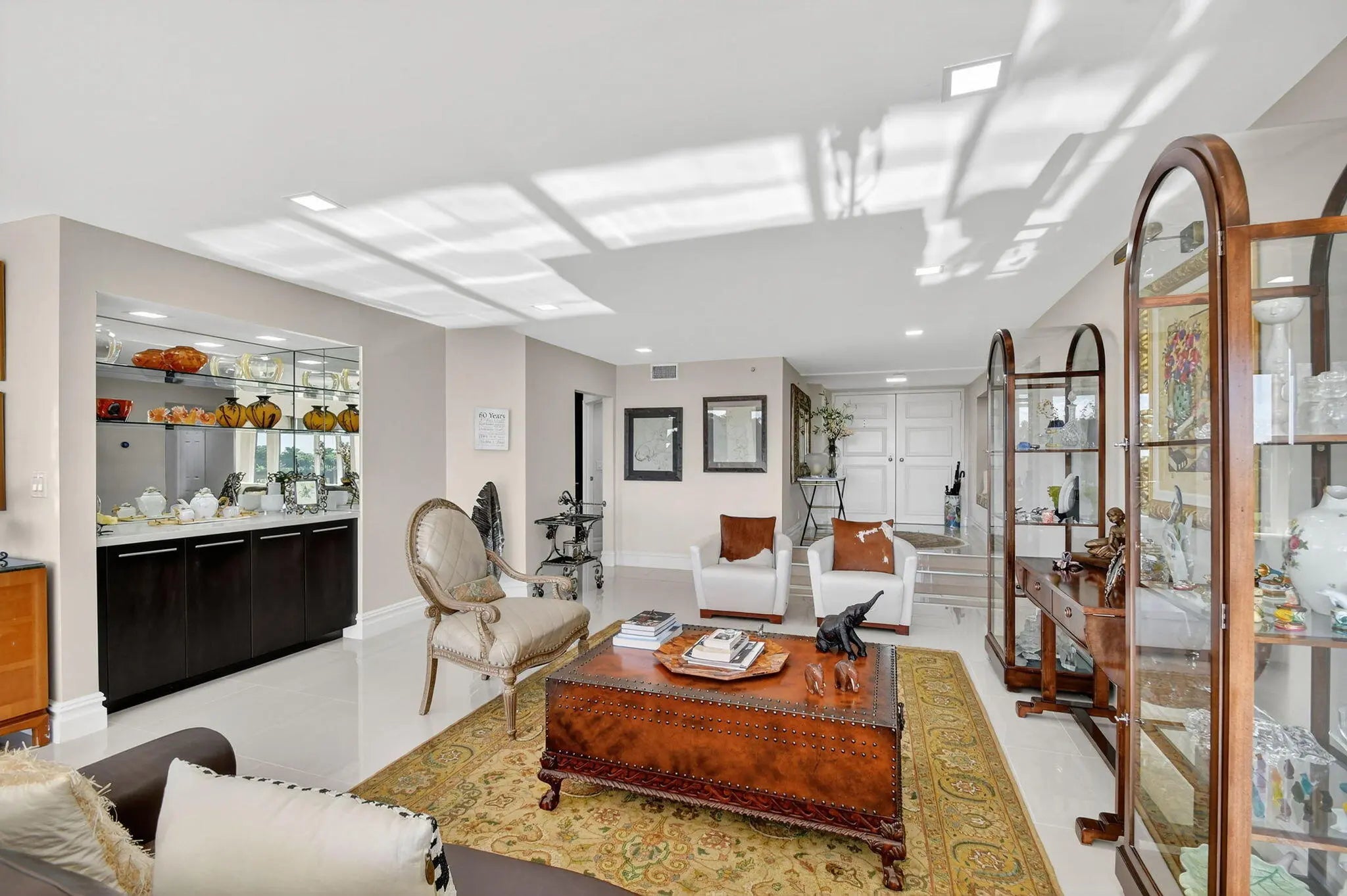 BEAUTIFULLY RENOVATED and bathed in natural light, this stunning and 3BR/2BA corner residence offers a seamless blend of space and elegance with beautiful large porcelain tile floors, wall-to-wall floor-to-ceiling windows, and an expansive wraparound balcony of over 800 sq. ft. Master Bedroom is rare extended, larger version. Enjoy spectacular east-facing sunrise and bright southern exposure overlooking golf course and pool. One covered parking, extra storage, ample guest parking.The Consulate—known as the Grande Dame of the Lands of the President—delivers resort-style living with 24/7 concierge & doorman, on-site manager, golf cart valet, fitness center, renovated lobby, club room, pool, spa-hot tub, tennis, pickleball, basketball, party room, library & appliance & A/C service contract.