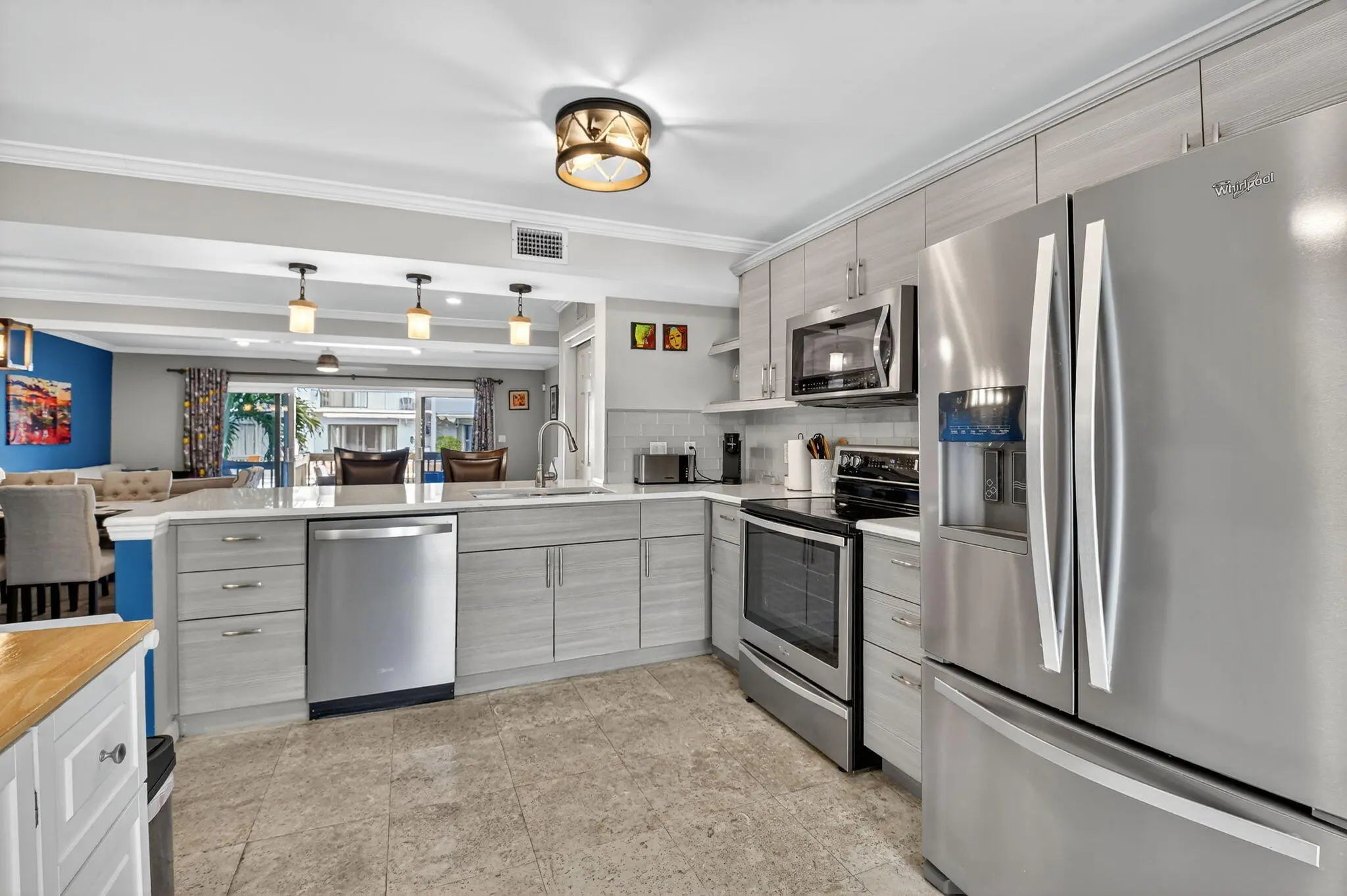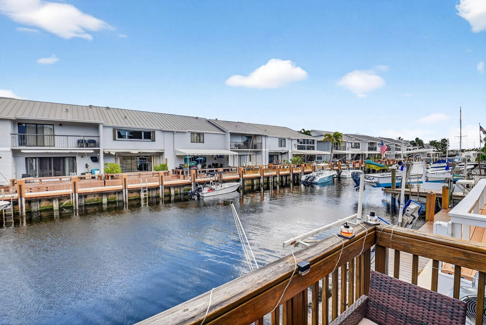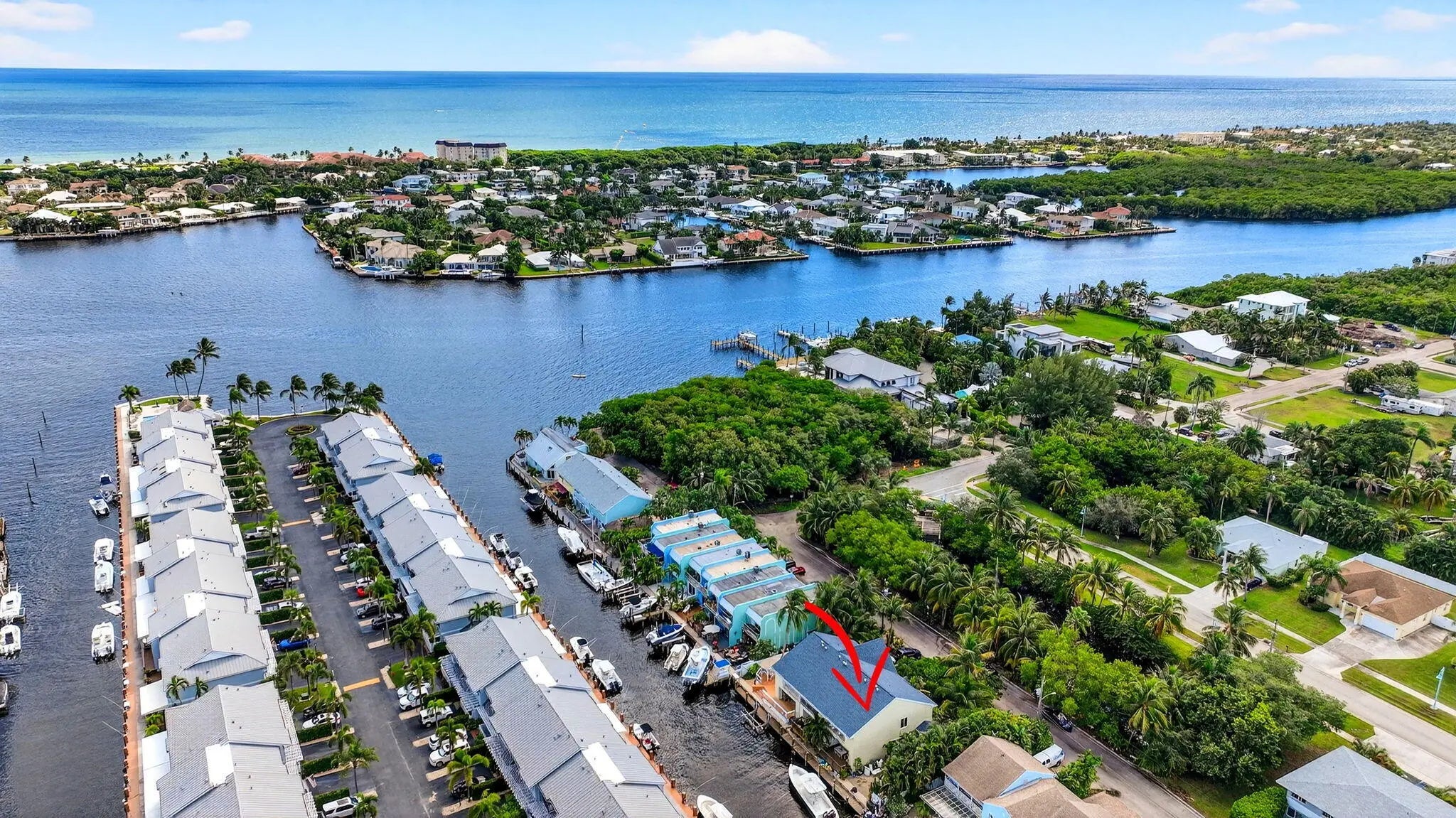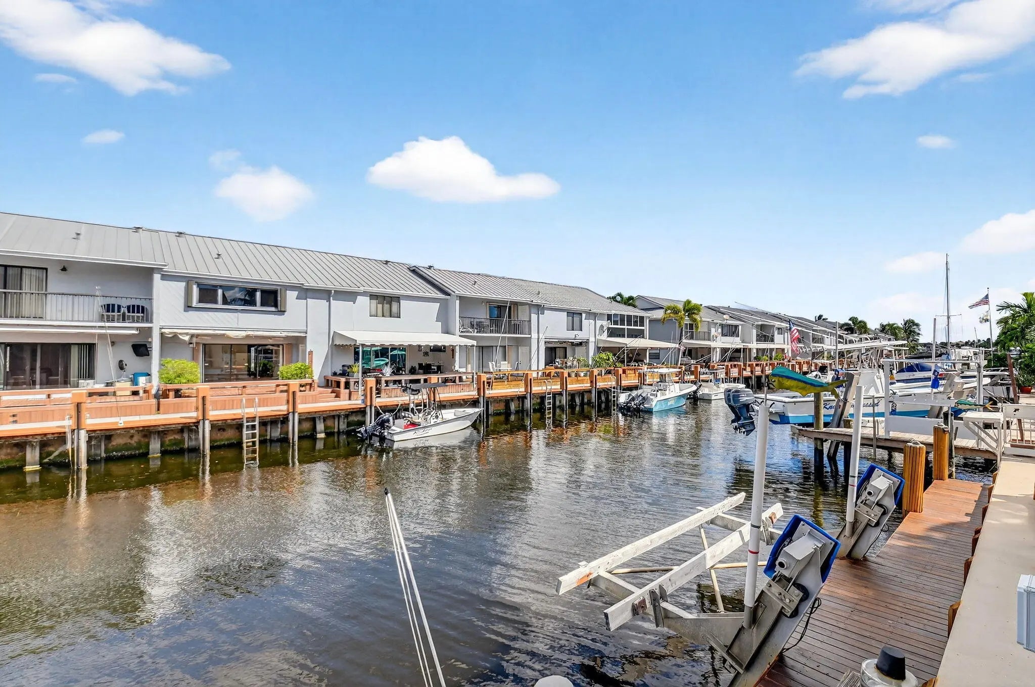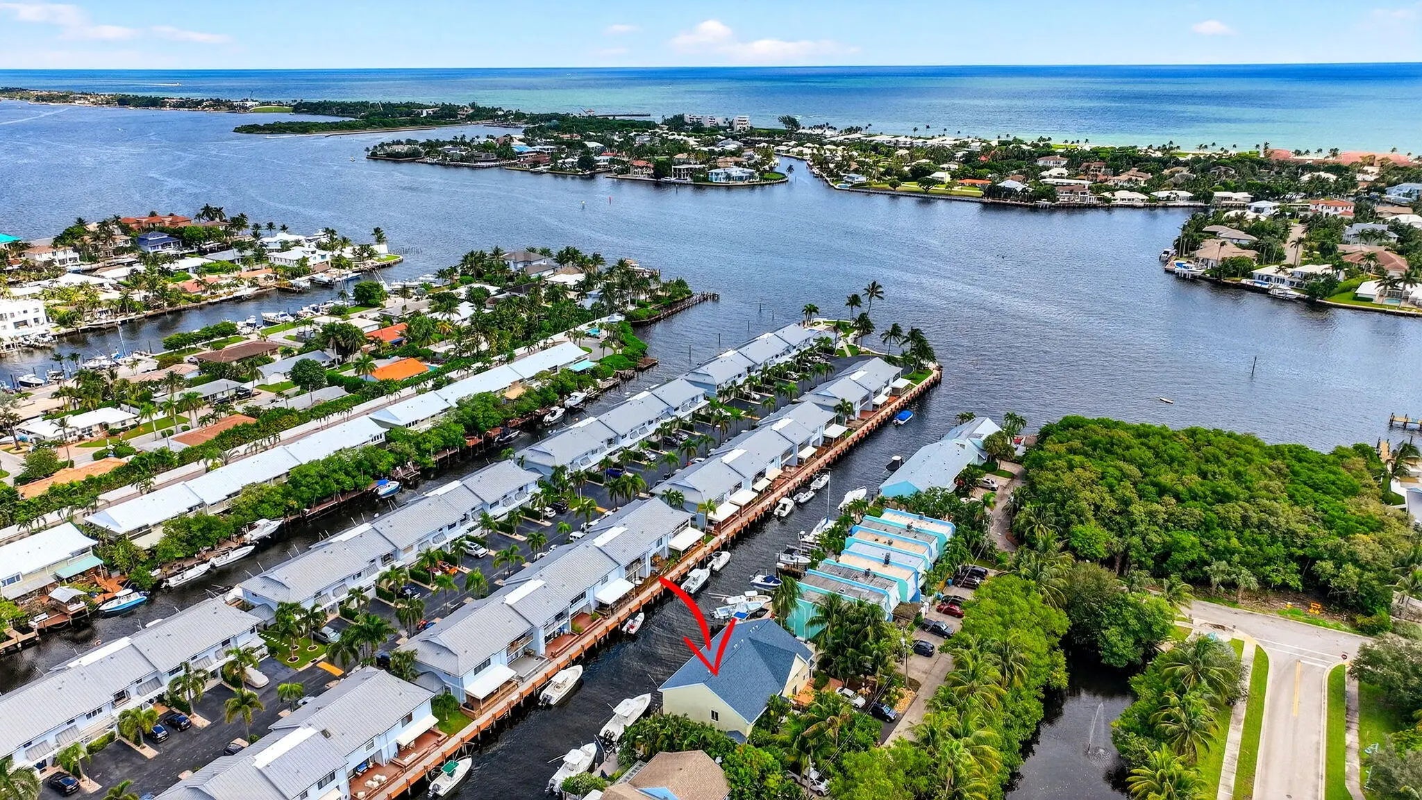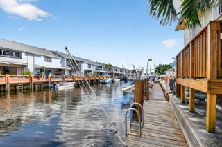 True waterfront living in this beautifully renovated 2-bedroom, 2.5-bath intracoastal townhome featuring a deeded boat slip and 20 feet of private dock space. With no HOA and no fixed bridges, this rare property offers effortless access to the open ocean—just steps from your back door. Step inside to find a beautifully renovated interior (2019) showcasing travertine floors, crown molding, and coastal-inspired finishes. The kitchen is both stylish and functional, featuring solid wood cabinetry, granite countertops, a subway tile backsplash, and stainless steel Whirlpool appliances. French doors open to a charming front porch, perfect for grilling or dining al fresco, while the spacious living room extends to a covered patio overlooking the canal and your private boat slip ideal for relaxing or entertaining. Recent upgrades include a new roof (2017), hurricane-impact windows and doors, and a Trane A/C system (2022) for comfort and peace of mind. Perfectly situated less than half a mile from the Boynton Beach Inlet, you'll enjoy direct ocean access and short boat rides to favorite waterfront destinations like Beer Can Island, Banana Boat, Two Georges, and Deck 84. Nestled on a quiet private road, the property is surrounded by lush tropical landscaping, privacy hedges, and features an oversized driveway with ample parking, a perfect blend of luxury, leisure, and coastal charm. With no HOA restrictions, there are no rental, parking, or pet limitations, making this an exceptional opportunity for investors seeking short-term or annual rental income as well as those looking for a private coastal retreat.