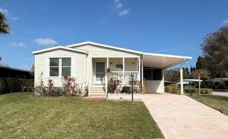 LOCATION! Your new home sits on a beautiful large corner lot in Cambridge! Spacious 2 bedroom 2 bath home is waiting for you. Seller offering $2000 CREDIT at closing! The home has nice natural light with spacious rooms thru-out. Big Primary Bedroom with walk-in closet. Primary Bath has shower. Has an Eat-in Kitchen and Formal Dining Rm. Indoor Laundry Room also has storage. A front Porch, a very large screened in Patio, attached Utility Shed, and covered Carport. The new AC is July 2025, new Washer Sept 2025. HWH is approx 20 years old but maintained. The Cambridge community has low HOA fee and Clubhouse, Fitness Center, Library, Pool, and Shuffleboard. Easy to Show!! Your home is waiting for you!!
