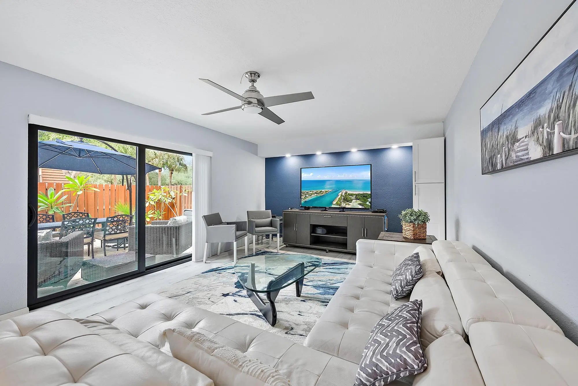 Modern, Completely Renovated Turn-Key Rental in The Bluffs River. Fully furnished; beautifully updated -- everything is brand new: flooring, kitchen, closets, paint, & furnishings. This quiet, private community features an Olympic-size pool and tennis courts and just steps away, from the Jupiter Beach and Juno Beach Pier. Home features, bright open layout with a half bath downstairs, full-size washer/dryer, and a large private fenced courtyard -- ideal for relaxing or entertaining. Upstairs, each master suite has its own full bath and private terrace with serene, scenic views. Walk or bike to the beach, Bluffs Shopping Center, ice cream shops, & Publix and Jupiter's best dining, shopping, and entertainment -- and only 25 minutes to Palm Beach International . Seasonal $6,000 or annual $3,5