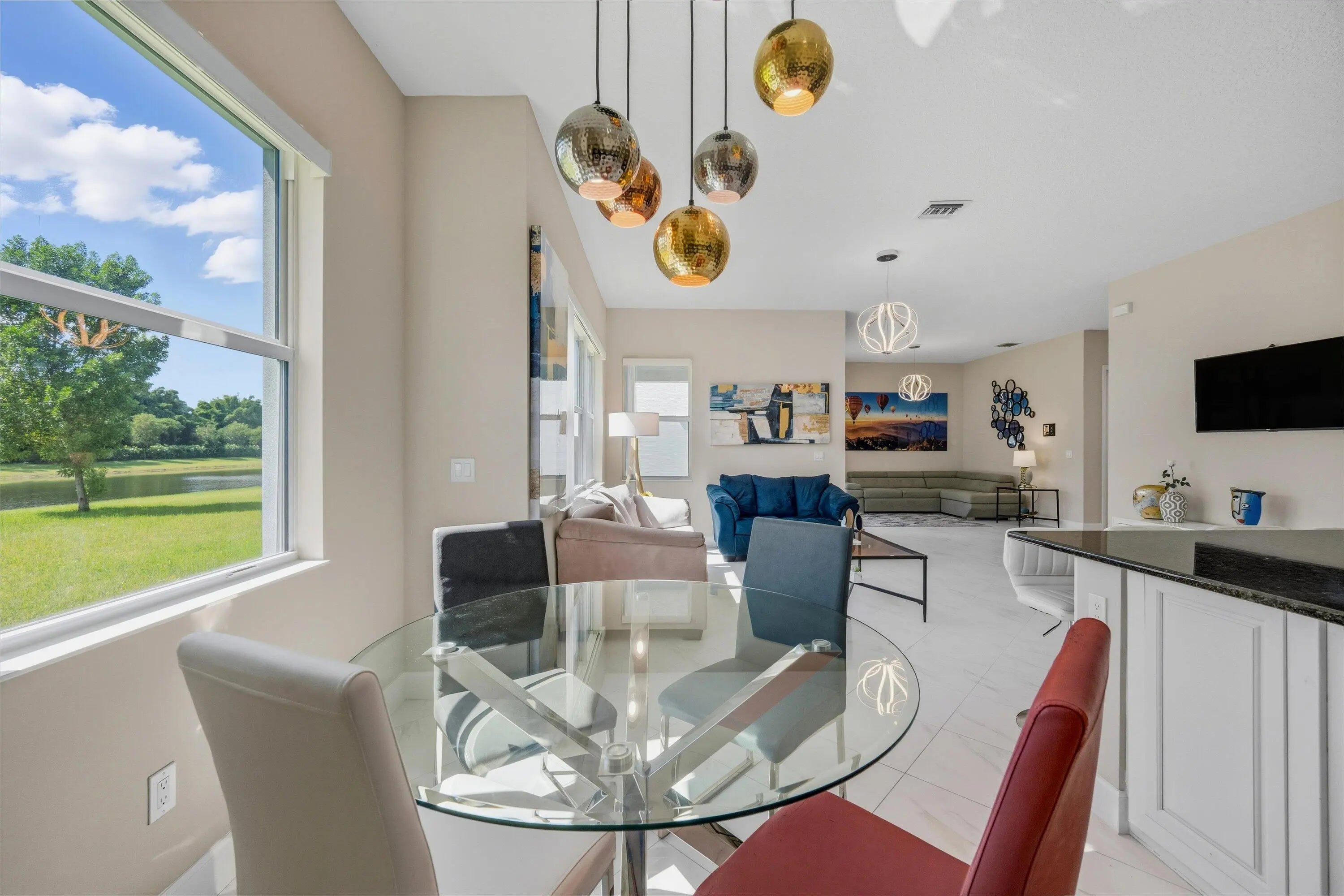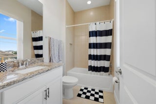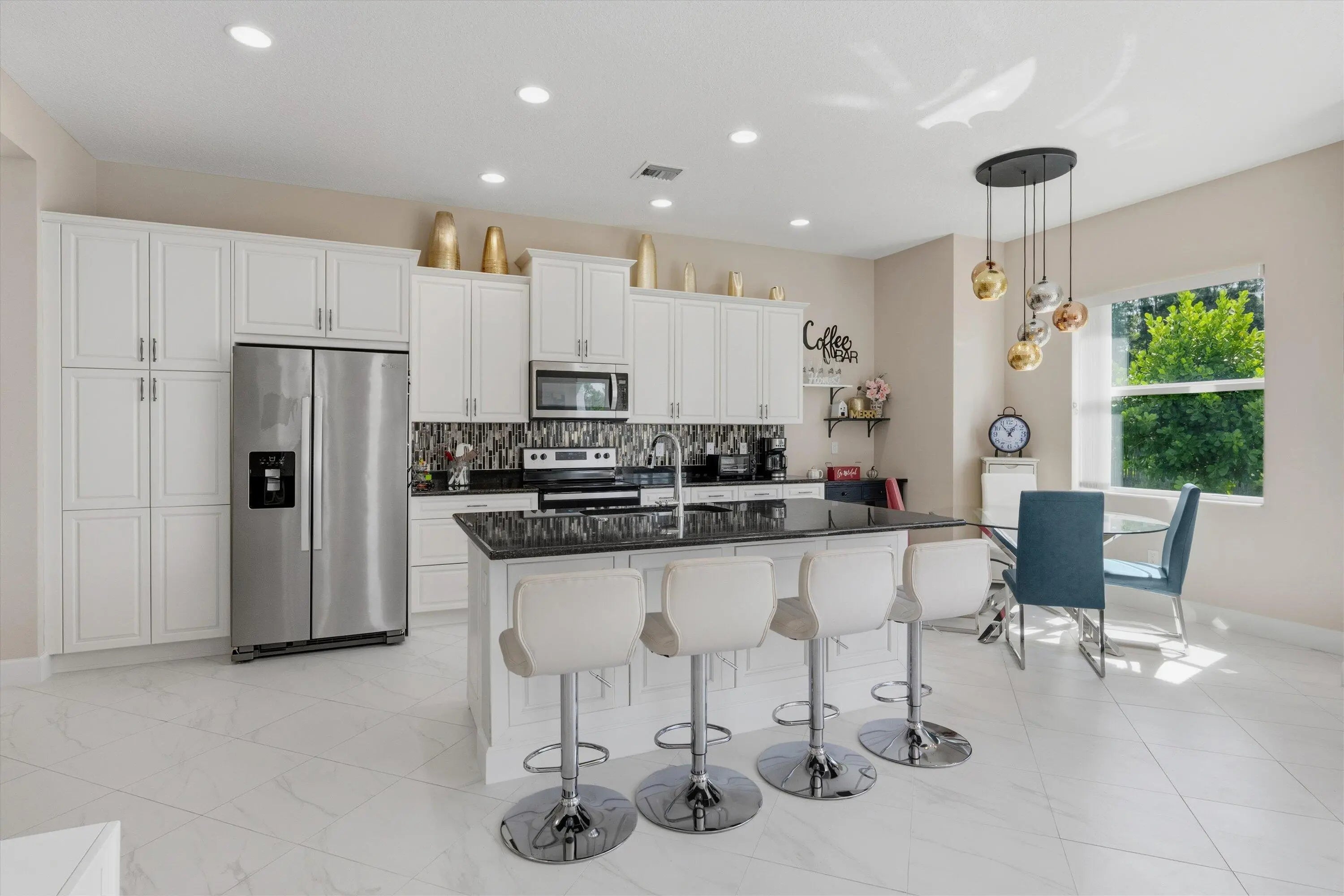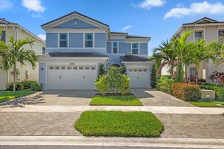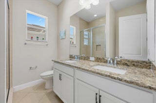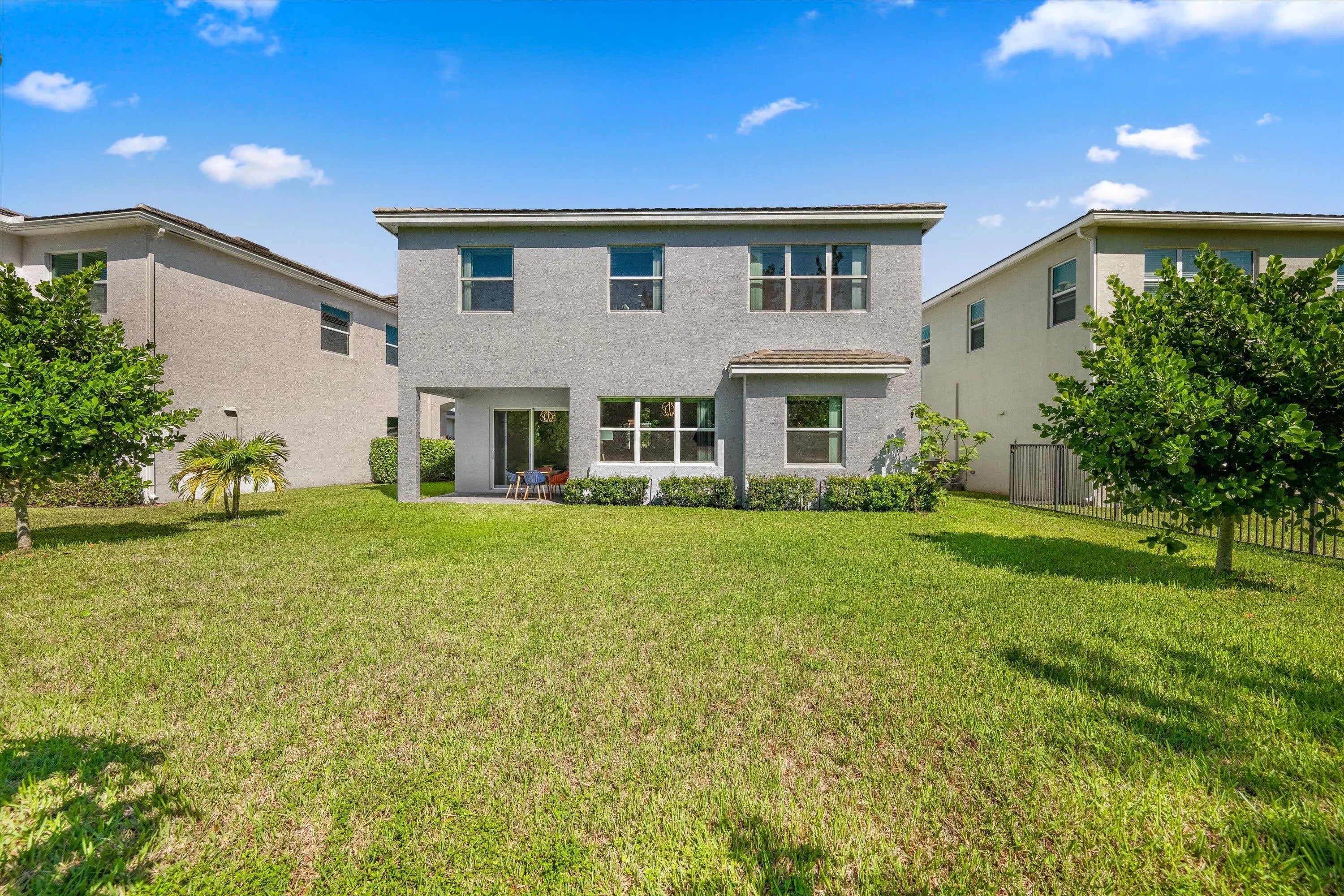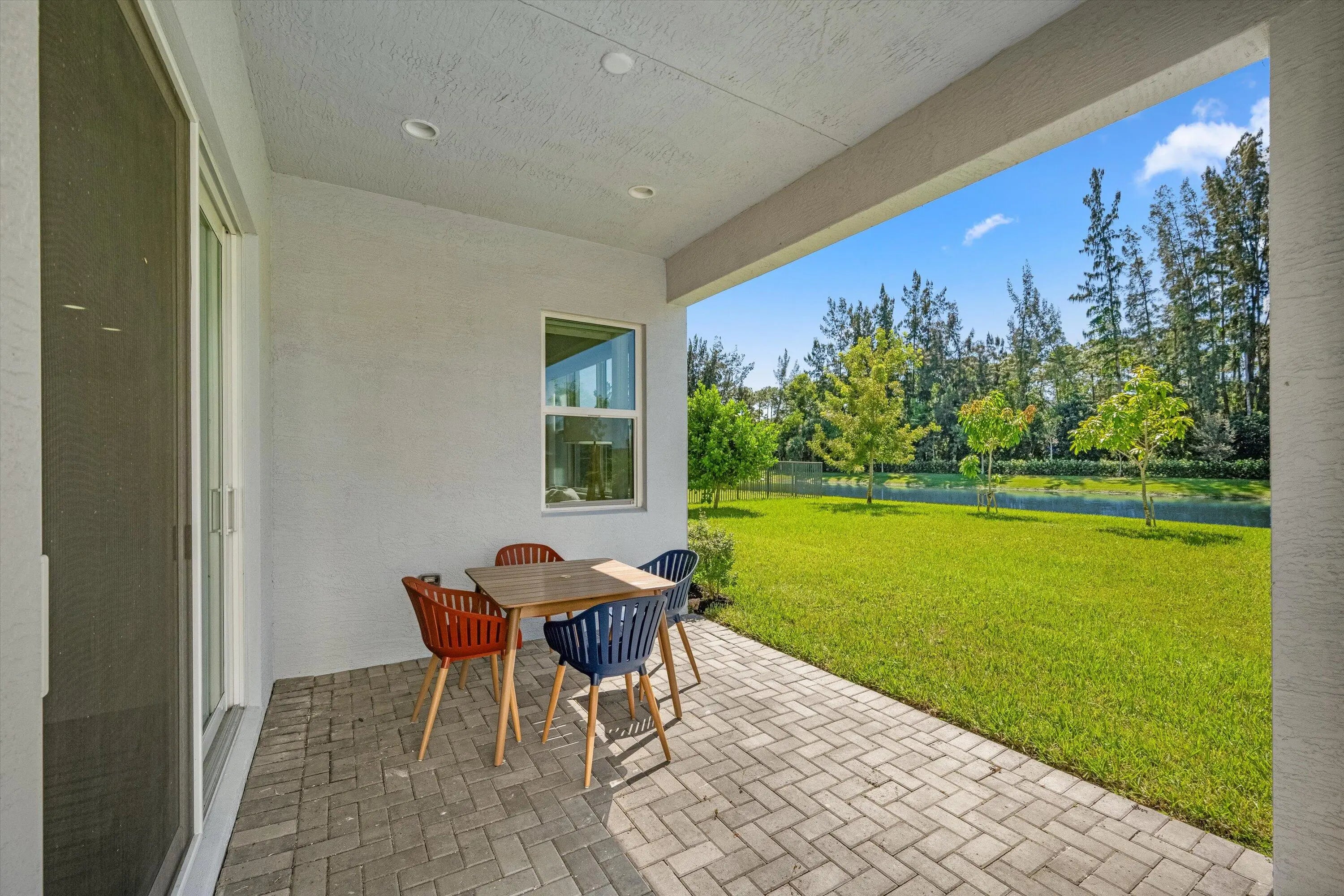 Welcome to this stunning Poinciana model located in the highly sought-after Groves community of Westlake, Florida. This impressive two-story home offers 4 bedrooms PLUS a loft, 3.5 bathrooms, and a 3-car garage across nearly 3,000 square feet of beautifully designed living space. From the moment you arrive, you're greeted by elegant double entry doors and full impact windows throughout, providing both beauty and peace of mind. Step inside to a grand foyer that opens to an expansive open-concept layout designed for modern living. The gourmet kitchen features white shaker cabinetry, a large black granite island, stainless steel Whirlpool appliances, and a stylish backsplash that ties it all together. Just off the kitchen is a charming breakfast nook with a contemporary light fixture, perfect for morning coffee. The home's design offers multiple living areas, including a spacious family room and a secondary sitting area ideal for entertaining or relaxing. Sliding glass doors invite abundant natural light and open to the outdoor living space. A formal dining room completes the first floor, offering flexibility for gatherings, an office, or a play area, plus a powder bath for guests. Upstairs, a versatile loft provides additional living space for a home office, playroom, or media lounge. The luxurious primary suite welcomes you with double doors, plush carpeting, and serene lake views. The ensuite bathroom features a glass-enclosed walk-in shower, dual sinks, white shaker cabinetry, granite countertops, and two walk-in closets. Three additional bedrooms offer generous space and natural light, including one with a private ensuite bath featuring a tub and granite vanity. The upstairs laundry room is exceptionally spacious, complete with cabinetry, granite counters, and washer/dryer. Step outside to a covered lanai overlooking a massive backyard with lake views and no rear neighbors, offering the perfect combination of privacy and tranquility. Enjoy resort-style living in the City of Westlake, with access to incredible amenities including an adventure park, resort-style pool, playgrounds, dog parks, and more all within minutes of top-rated schools, shopping, and dining.