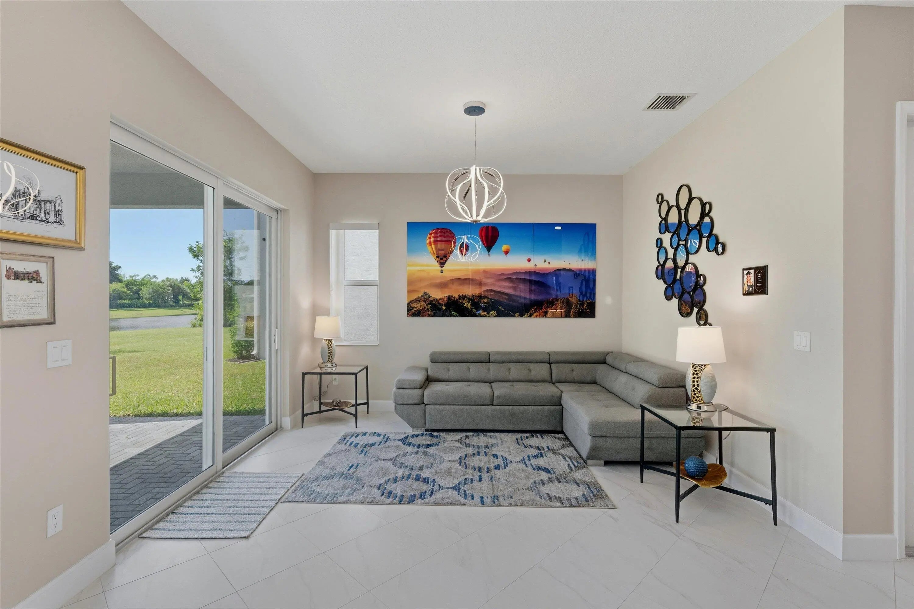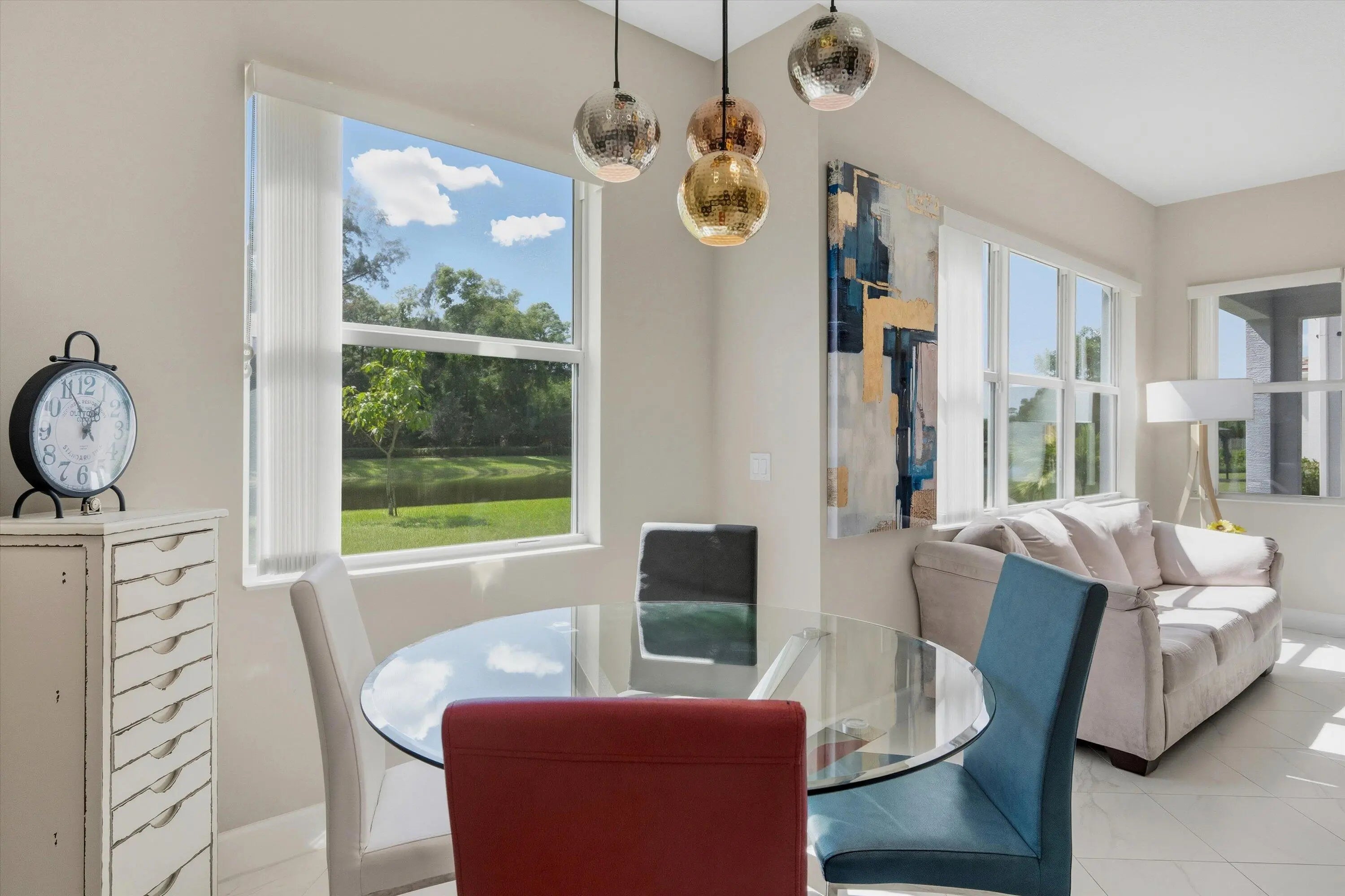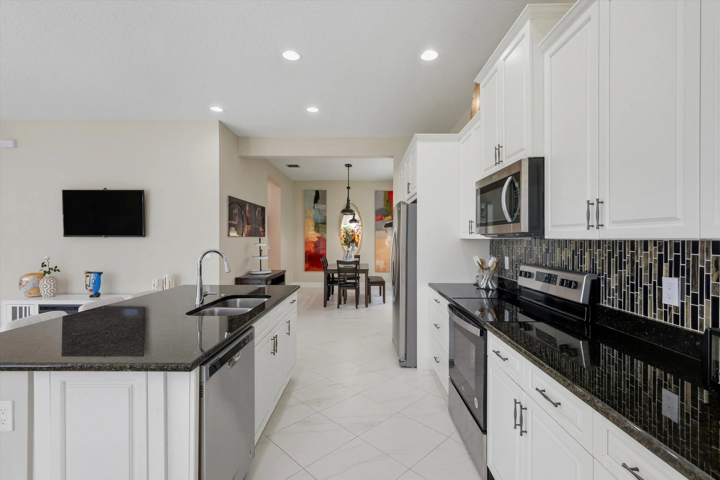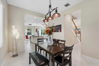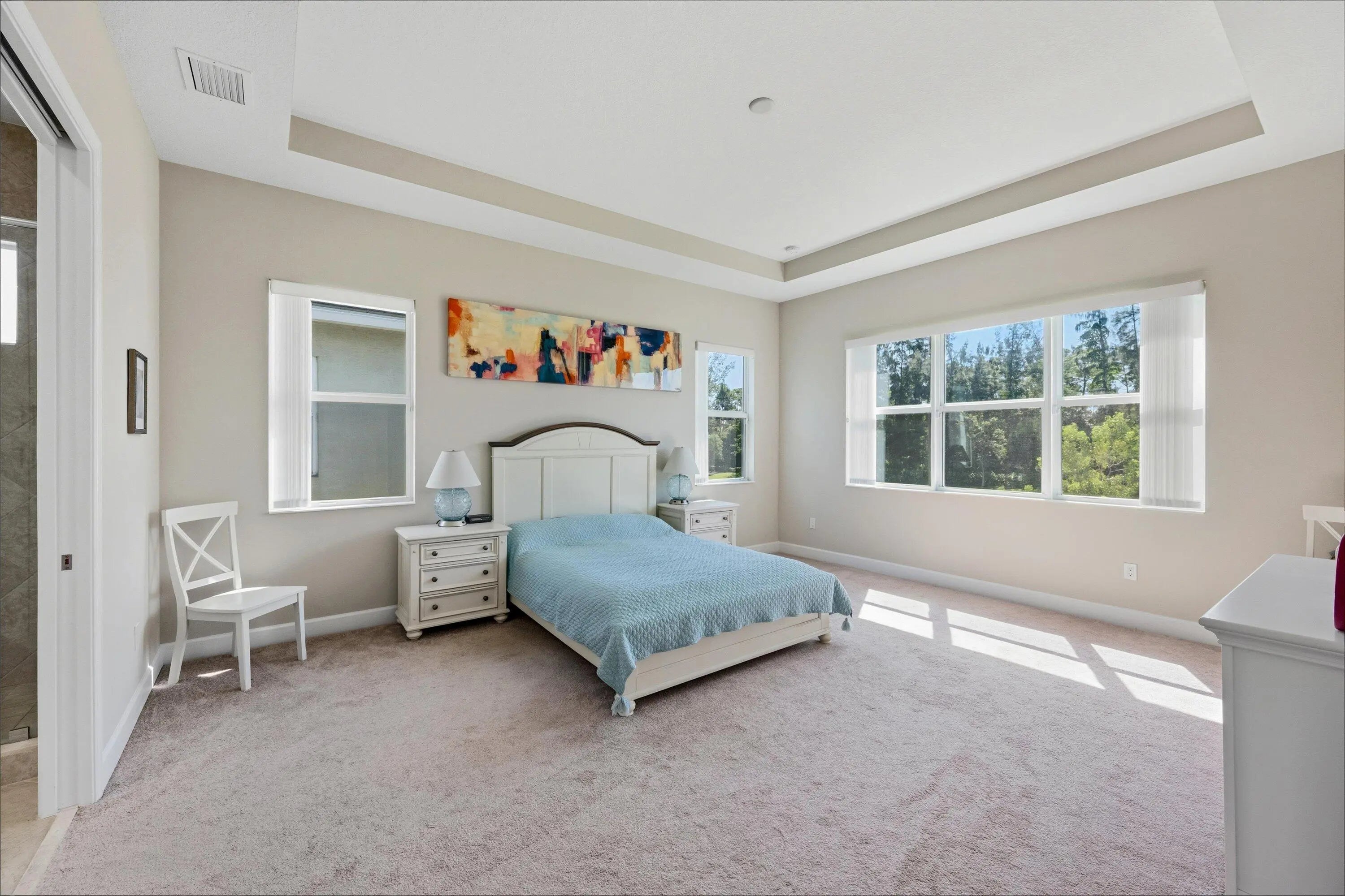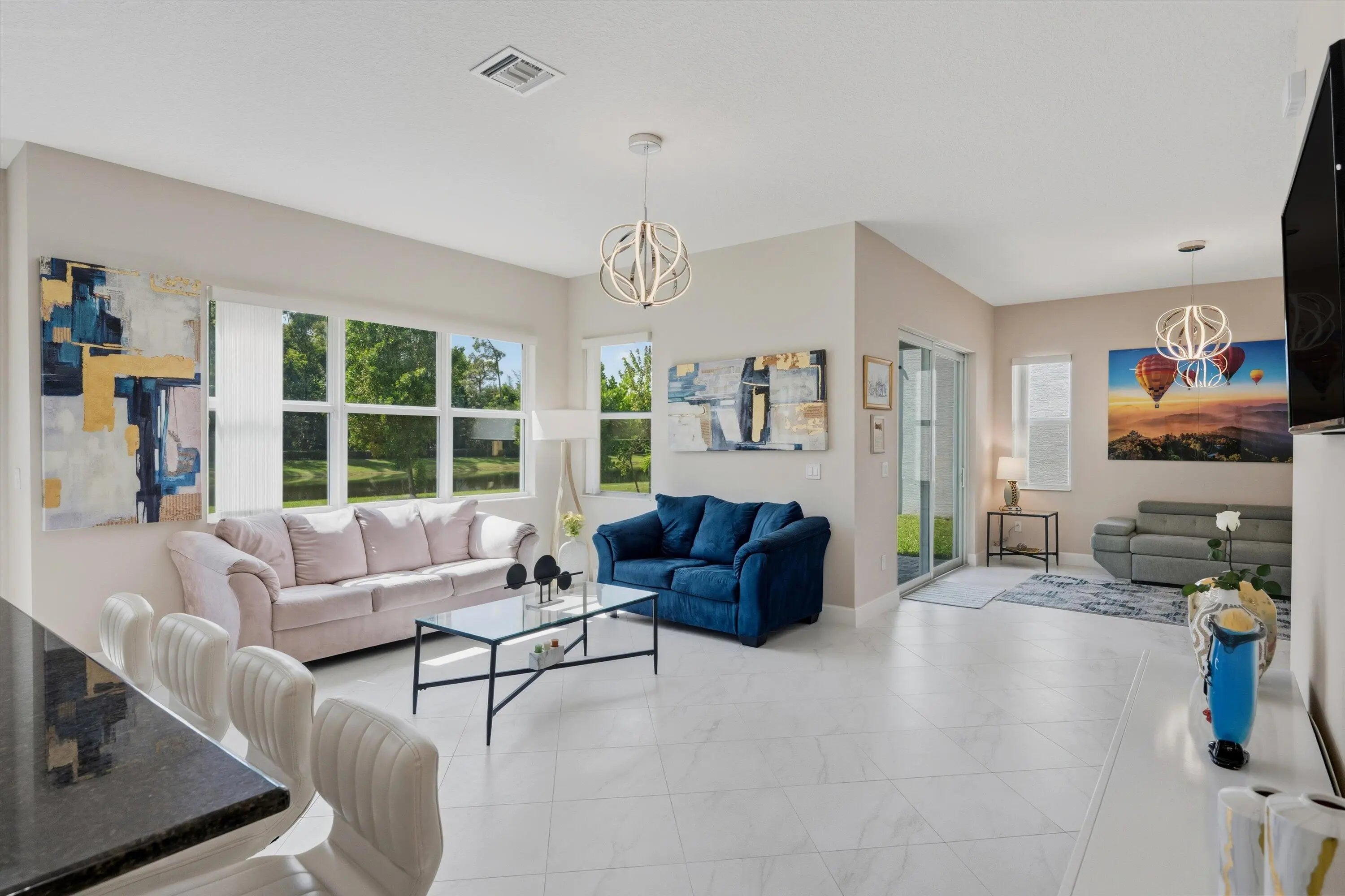Welcome to this stunning Poinciana model located in the highly sought-after Groves community of Westlake, Florida. This impressive two-story home offers 4 bedrooms PLUS a loft, 3.5 bathrooms, and a 3-car garage across nearly 3,000 square feet of beautifully designed living space. From the moment you arrive, you're greeted by elegant double entry doors and full impact windows throughout, providing both beauty and peace of mind. Step inside to a grand foyer that opens to an expansive open-concept layout designed for modern living. The gourmet kitchen features white shaker cabinetry, a large black granite island, stainless steel Whirlpool appliances, and a stylish backsplash that ties it all together. Just off the kitchen is a charming breakfast nook with a contemporary light fixture, perfect for morning coffee. The home's design offers multiple living areas, including a spacious family room and a secondary sitting area ideal for entertaining or relaxing. Sliding glass doors invite abundant natural light and open to the outdoor living space. A formal dining room completes the first floor, offering flexibility for gatherings, an office, or a play area, plus a powder bath for guests. Upstairs, a versatile loft provides additional living space for a home office, playroom, or media lounge. The luxurious primary suite welcomes you with double doors, plush carpeting, and serene lake views. The ensuite bathroom features a glass-enclosed walk-in shower, dual sinks, white shaker cabinetry, granite countertops, and two walk-in closets. Three additional bedrooms offer generous space and natural light, including one with a private ensuite bath featuring a tub and granite vanity. The upstairs laundry room is exceptionally spacious, complete with cabinetry, granite counters, and washer/dryer. Step outside to a covered lanai overlooking a massive backyard with lake views and no rear neighbors, offering the perfect combination of privacy and tranquility. Enjoy resort-style living in the City of Westlake, with access to incredible amenities including an adventure park, resort-style pool, playgrounds, dog parks, and more all within minutes of top-rated schools, shopping, and dining.