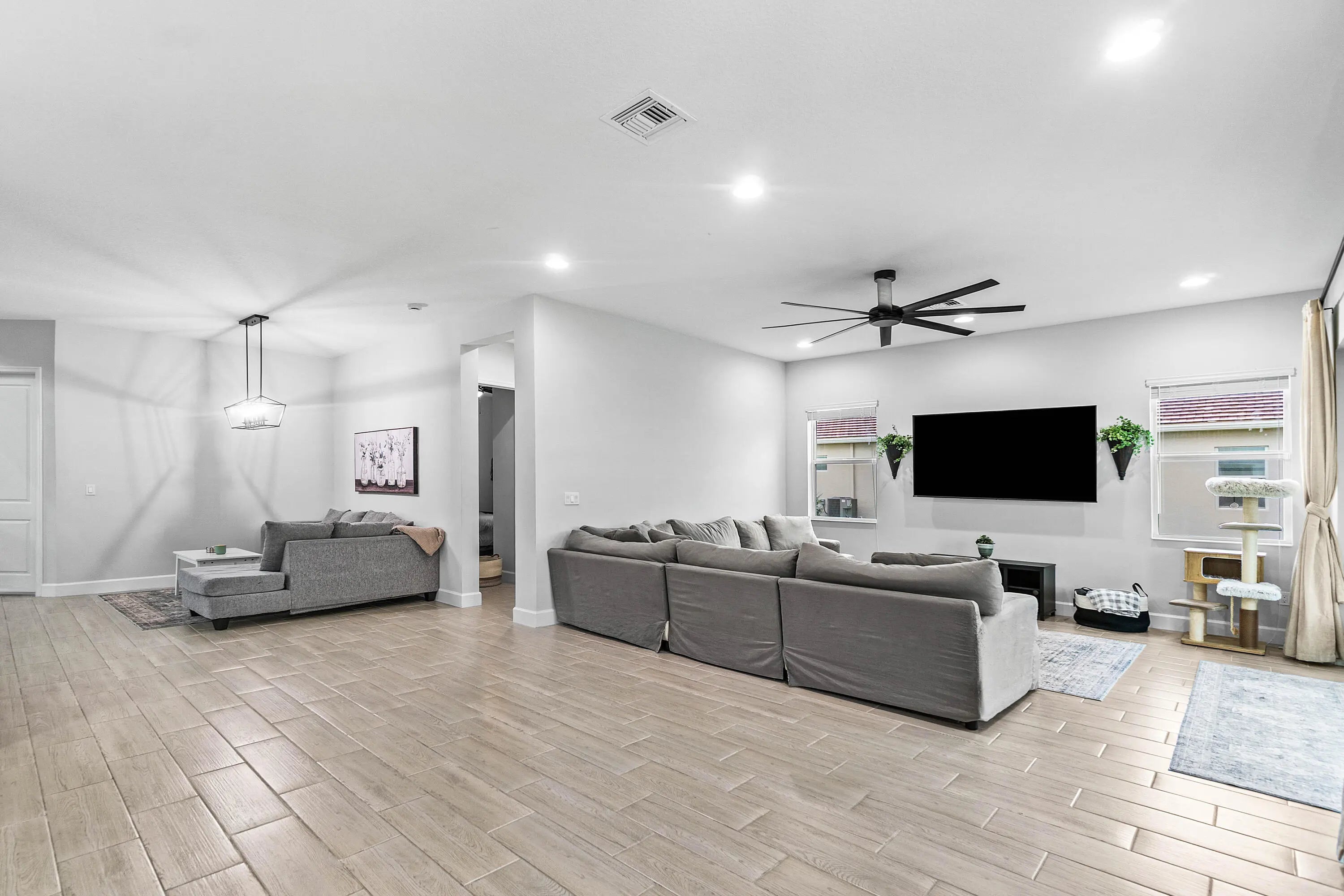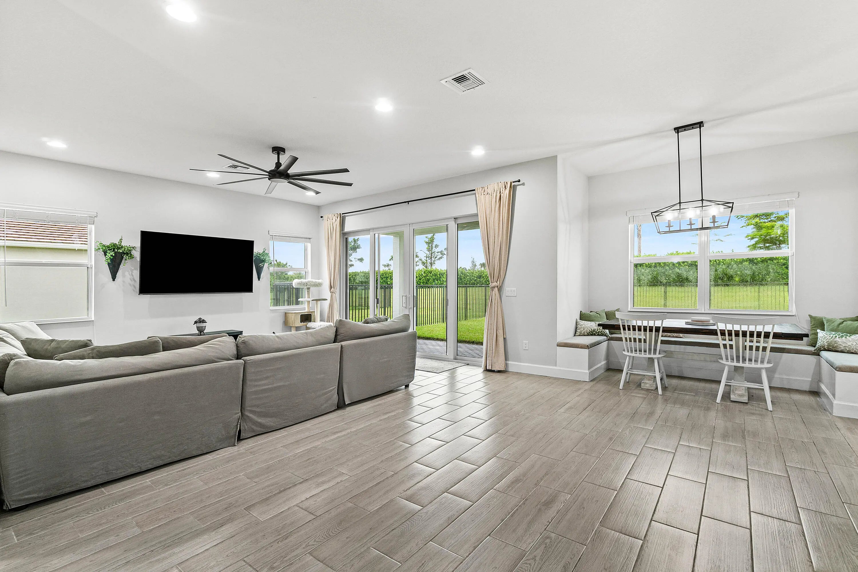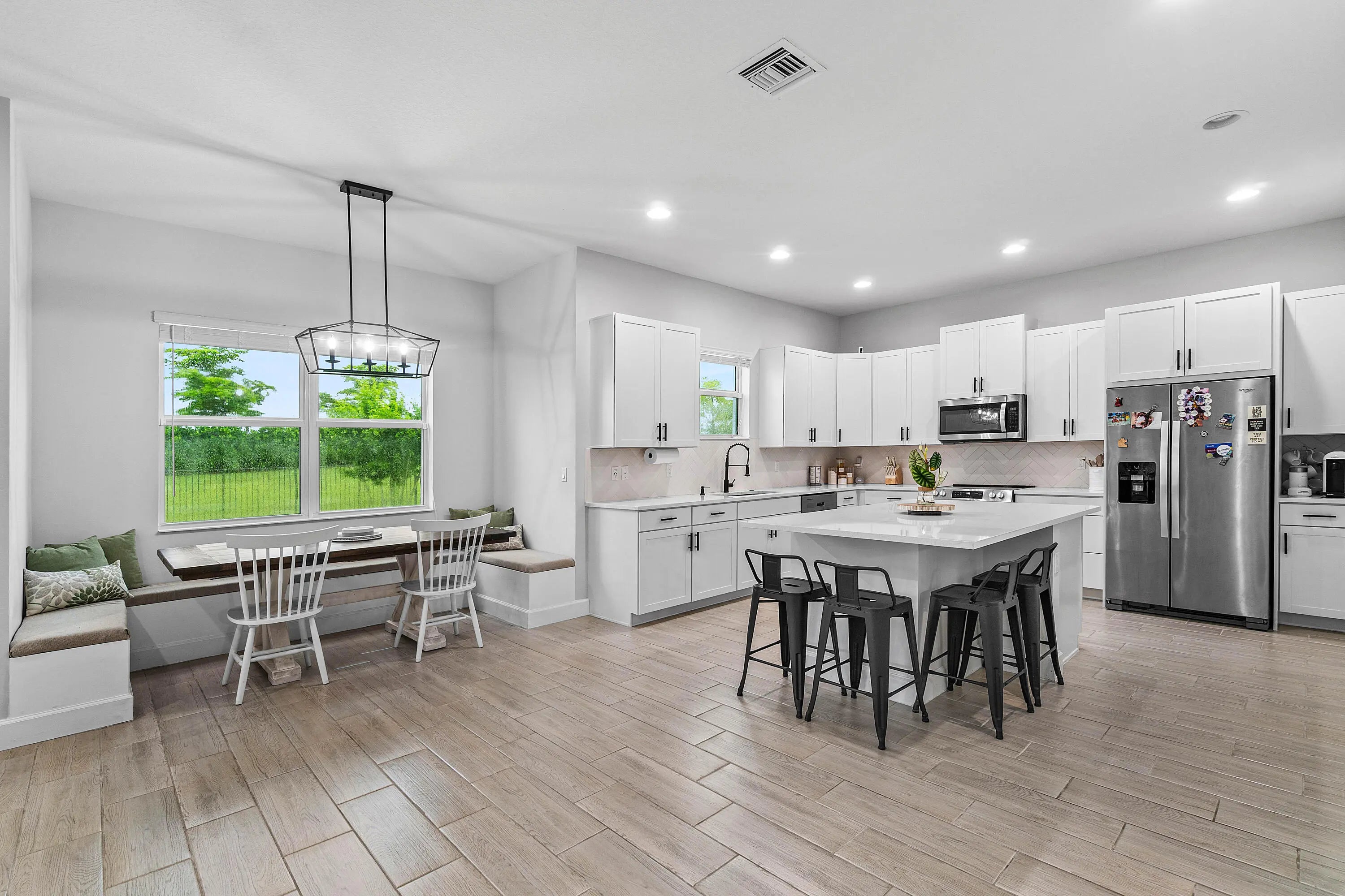 This gorgeous Westlake home is the ultimate dream come true! Brand new construction (2024) this home boasts 5 spacious bedrooms, 4 full baths, a loft area that can be converted to a 6th bedroom, 3-car garage, and over $70k in builder upgrades!!! The open-concept floor plan designed for easy entertaining, features a neutral color palette that complements any decor. The main floor boasts stunning wood-look tile flooring throughout, creating a seamless flow between all living spaces. The kitchen is a chef's paradise, bright and airy with white cabinets, white quartz countertops, stainless steel appliances, and a large center island perfect for meal prep or a casual breakfast bar. Just off the kitchen, the spacious family room is ideal for gatherings, featuring large sliding doors that open to the covered patio and expansive fenced backyard. Also, on the main floor is a guest bedroom and a full bath, providing privacy and comfort for guests. Upstairs, the elegant staircase with a wood railing and iron spindles leads to a large loft area, perfect for a second living space, an office or a 6th bedroom. Double doors open to the luxurious primary suite, which is flooded with natural light and features a private covered balcony. The ensuite bathroom offers a spa-like experience with a large walk-in shower, double vanities, and a generously sized walk-in closet. Practical features like the laundry room with ample storage and a folding counter ensure every detail is covered. The fenced backyard offers plenty of room for a pool and other outdoor activities. As if the home itself wasn't enough, the community amenities at Westlake Adventure Park take luxury living to a whole new level. Enjoy access to multiple pools, including a resort-style zero-entry pool and a lap pool. Other amenities include a community building, basketball courts, an expansive recreational lawn with a covered concert pavilion, picnic areas, a BMX pump park, bocce ball courts, a playground, and a dog park, ensuring there's something for everyone. $70k in BUILDER UPGRADES BELOW - *BALCONY OFF PRIMARY BEDROOM *GUTTERS *HURRICANE IMPACT WINDOWS AND DOORS *SEAMLESS SHOWER IN PRIMARY BATHROOM *DUAL SHOWER HEADS IN PRIMARY BATHROOOM *WHITE QUARTZ COUNTERTOPS *POTS AND PANS DRAWER* *WOODLOOK CERAMIC TILE THROUGHOUT FIRST FLOOR *EXTRA WALL INSULATION ON FIRST FLOOR *GYPCRETE - SPECIAL PLASTERING ON SECOND FLOOR FOR SOUNDPROOFING FOOTSTEPS *RING ALARM SYSTEM *EPOXY FLOORING IN GARAGE *ADDITIONAL HIGH-HAT LIGHTING *COMPLETE FENCED IN BACKYARD