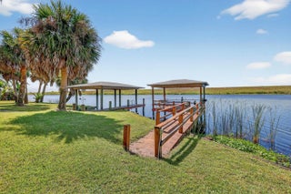 What we have here is a unicorn location! Situated on 1.214 acres of private land with over 450' of waterfrontage that stretches across the back and along one side of the lot. These listings don't come up for sale very often, so don't delay in checking out this solidly built 2221 SF CBS home. Whether you're into boating, fishing, kayaking, or just enjoying nature at your fingertips, this is a prime spot for it all! Backed up to the Rim Ditch/C-24 canal and right next to the Locks to bring you into Lake Okeechobee, we've got the best spot in town. Enter the fenced and gated yard and you can immediately appreciate the yard space. You'll have parking for everyone on the long driveway with circular extension. There is a covered carport for protecting your toys, as well as a 2-car garage, Launch your own kayak or boat on your own ramp with boathouse cover or chill on the covered dock and watch the wildlife. On the land, you'll have room to let your imagination run wild. Grow your own food, raise your own animals, build a pool, do whatever makes you happy! You'll inherit fruit trees such as avocado, mango, banana, and loquat too! The mature trees give an amazing canopy of shade for the ultimate in relaxation. I can just picture you in that hammock! The metal roof was replaced in 2018, so no worries about the roof. On the inside, you'll find a welcoming foyer entry that opens up to the large living room. The kitchen has lots of counterspace for prep and limitless storage with 2 big pantries. Island cooktop with separate wall oven/wall microwave combination. You'll get to enjoy the view while washing dishes at the kitchen window. Eat-in kitchen with a full dining area, so you can take a pick where to eat. As if the living room weren't big enough, there's also a den, so no arguing over who's watching what on the TV! You'll find a bonus room extended off of the primary bedroom, a great place for a dressing room, office, nursery, reading room...you decide the best use of that space. Interior laundry room with more storage space. The home is on well and septic, which helps with utility costs. The well has a full softener and treatment system with a whole-house reverse osmosis system. There's so much more to know, but you'll just have to call and make an appointment!