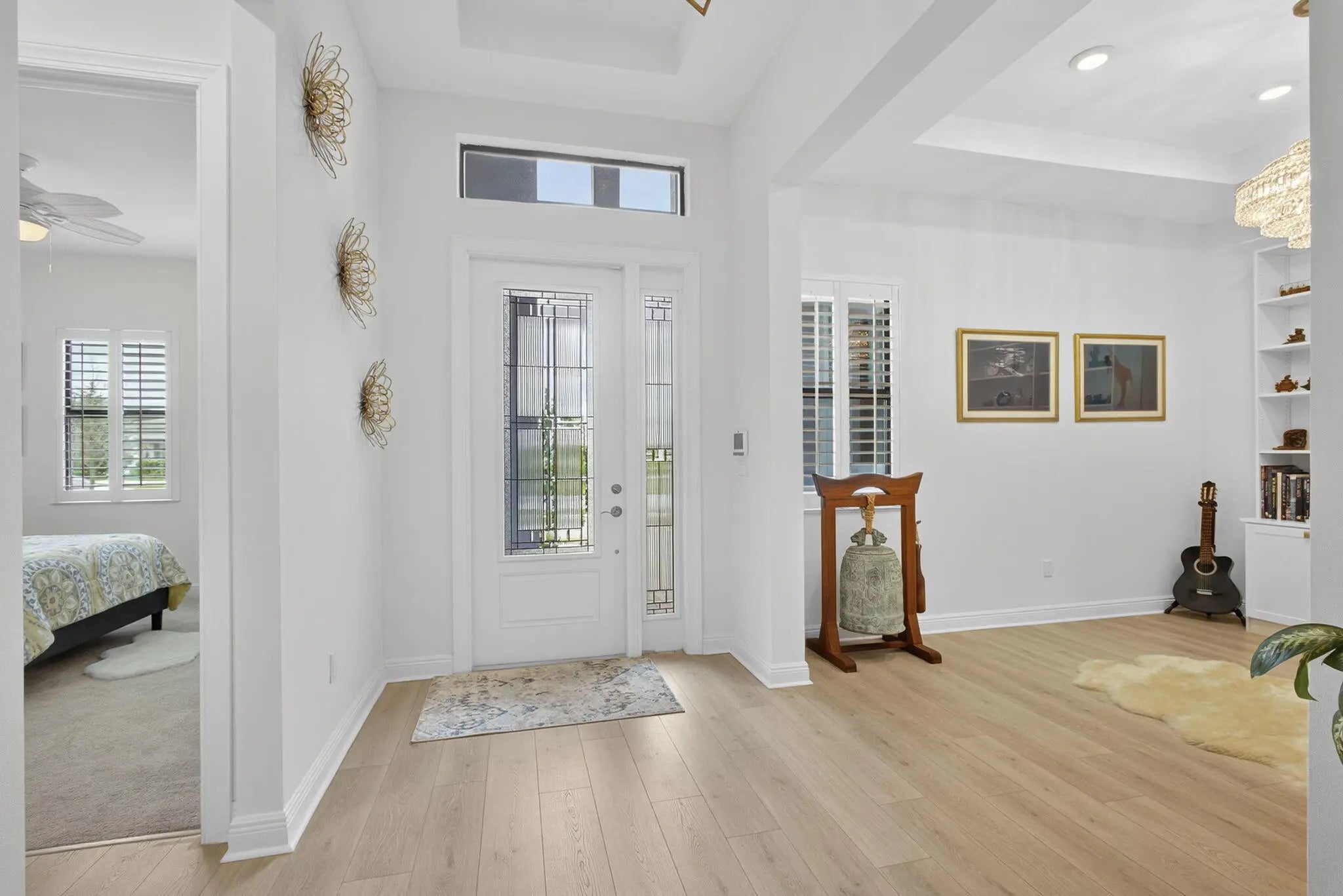 FINISHED IN 2023 - PALM BEACH floor plan with lake view includes 3 bedrooms, 3 full ensuite bathrooms and 1 half powder room. The gourmet kitchen features gas cooktop with hood, quartz counter tops, Plantation shutters throughout, screened-in extended patio, finished closets, upgraded lighting fixture and more throughout the home. Cresswind's amenities & packed activity calendar with pickleball teams, concerts & events.