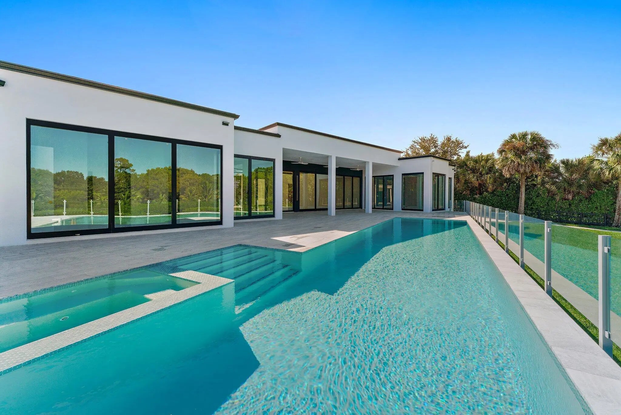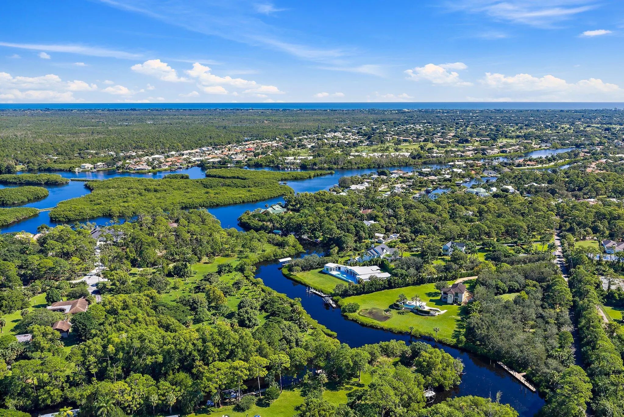 Newly completed in 2025, this exceptional waterfront estate sits on over two private acres along the North Fork of the Loxahatchee River. Thoughtfully designed with clean architectural lines, curated finishes, and seamless indoor-outdoor living, the residence offers a rare combination of modern construction and expansive grounds--recently repositioned to $6,995,000. Spanning 4,753 square feet, the home features four bedrooms and four-and-a-half baths with soaring ceilings and walls of glass that frame tranquil river views. The chef's kitchen is appointed with a Wolf gas range, Miele built-in coffee system, custom cabinetry, and an oversized island designed for entertaining. Open living and dining spaces flow effortlessly to covered outdoor areas, creating a year-round waterfront lifestyle The primary suite is privately situated and offers serene views, a spa-inspired bath, and generous custom closets. Each guest suite is well-proportioned and en-suite, providing comfort and privacy for family and visitors alike. Outdoors, the scale of the property allows for privacy rarely found on the river. The expansive grounds offer room for future enhancements--guest house, sport court, or additional recreational amenities--while maintaining a secluded estate setting. A private dock with 16,000-pound lift provides convenient boating access with one fixed bridge to the Intracoastal. Whether enjoying quiet mornings on the river or entertaining at sunset, this property captures the essence of Jupiter waterfront living. An uncommon opportunity to secure new construction, acreage, and boating access in one of Jupiter's most desirable waterfront corridors.
